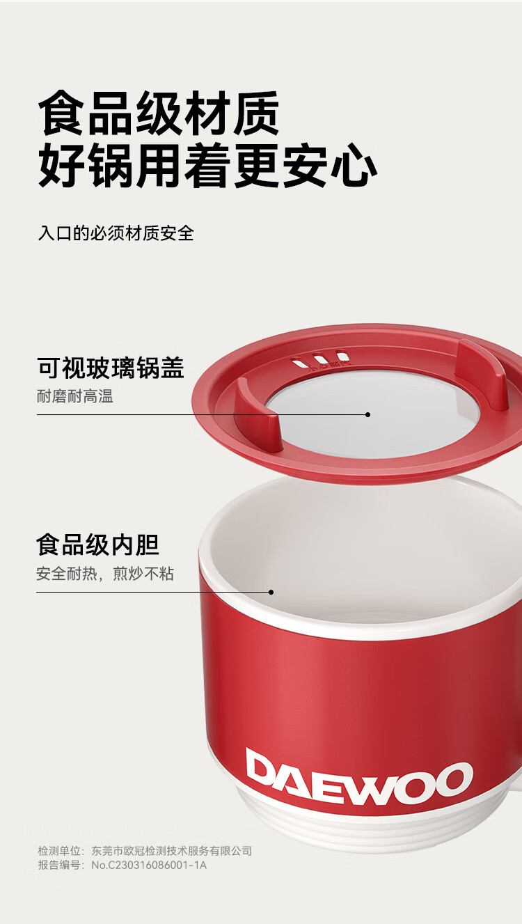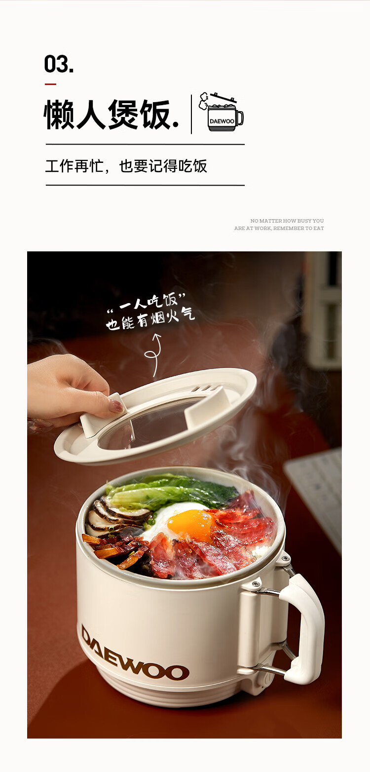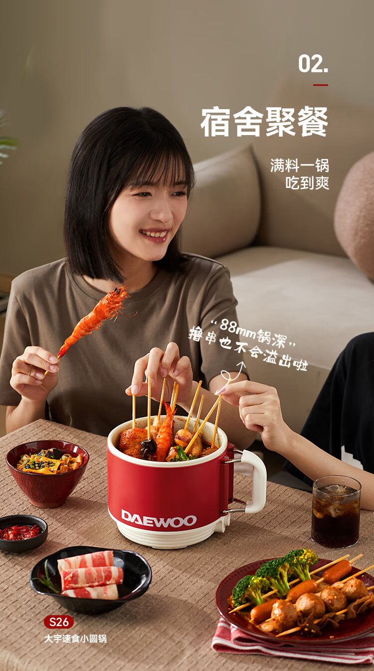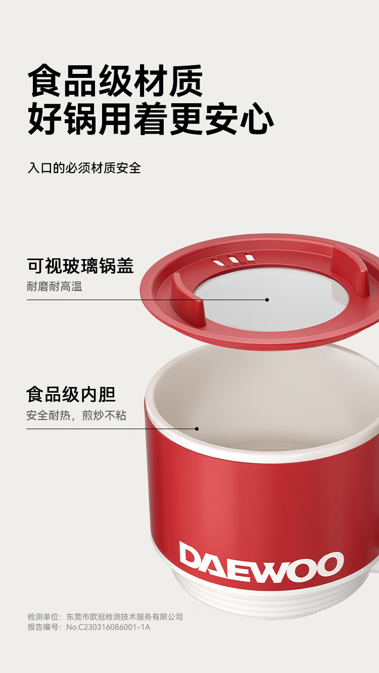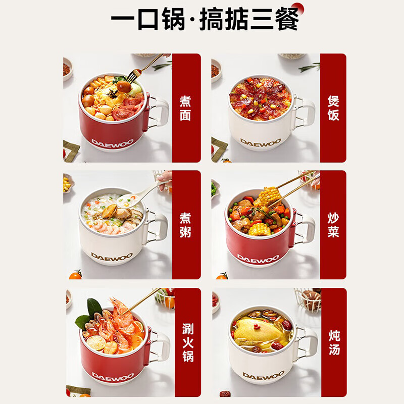 宇(DAEWOO)电煮锅小电锅单人电蒸锅小型宿舍小锅不沾内胆小功率多功能锅小电锅学生泡面火锅S26【伊藤优选302401】