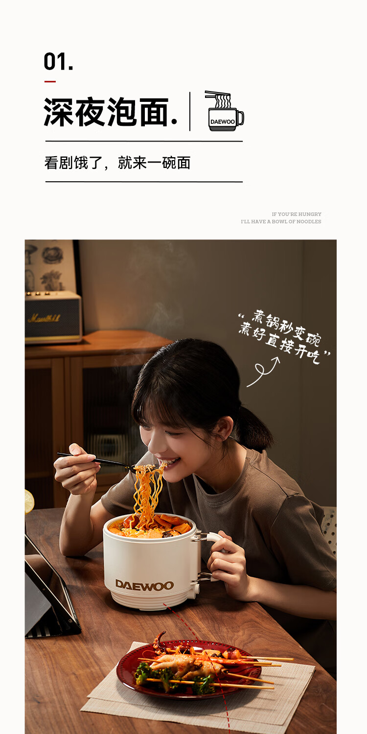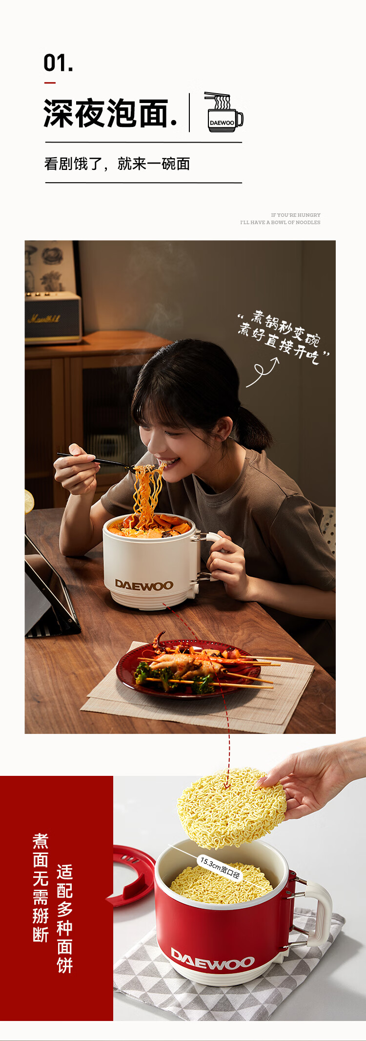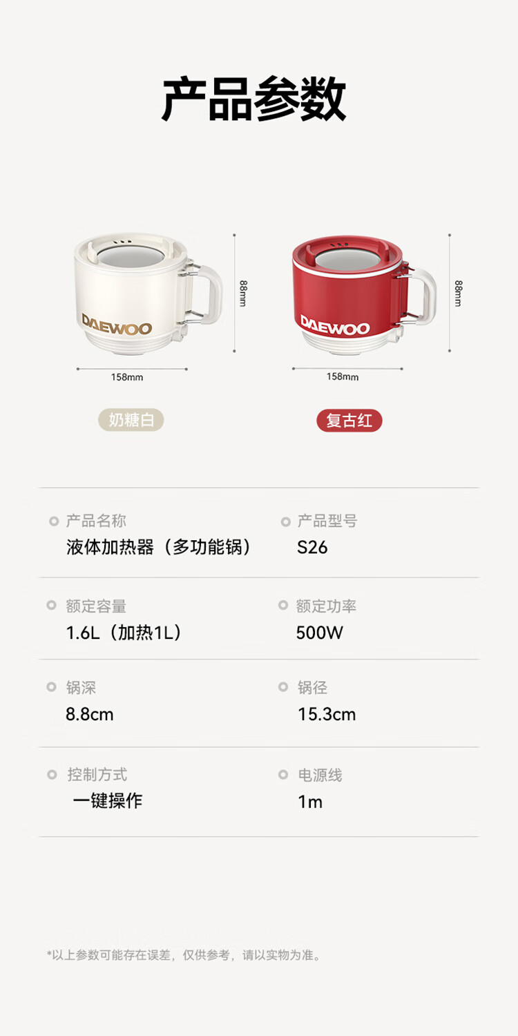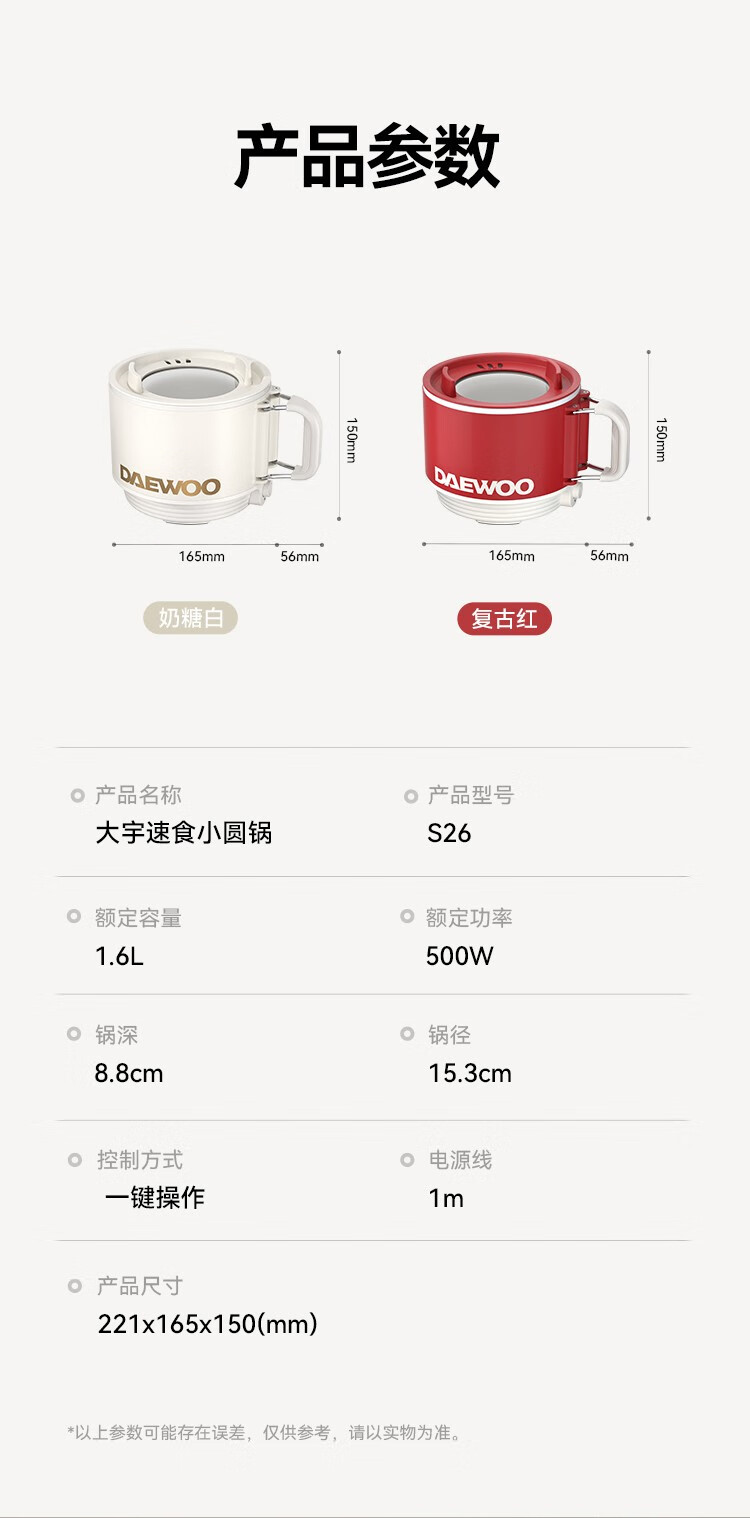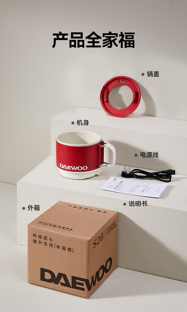 宇(DAEWOO)电煮锅小电锅单人电蒸锅小型宿舍小锅不沾内胆小功率多功能锅小电锅学生泡面火锅S26【伊藤优选302401】