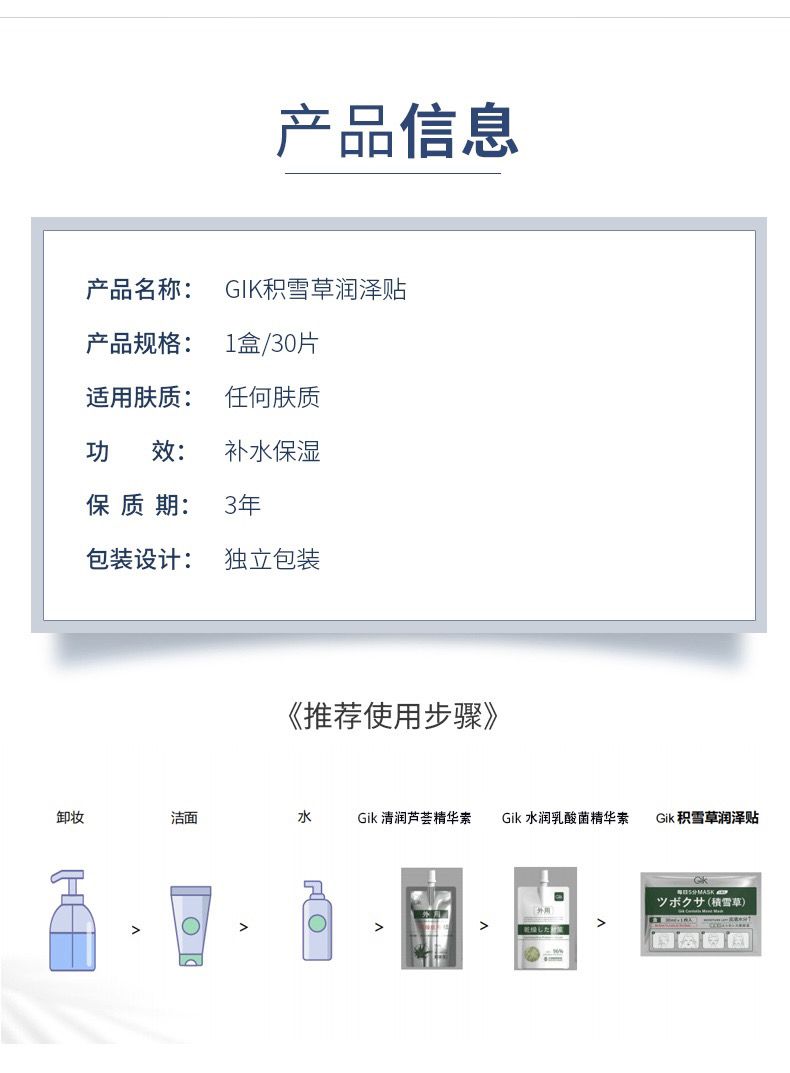 【爆款超低价预售 急单慎拍】GIK积雪草面膜补水舒缓保湿修复清洁玻尿酸女睡眠面膜