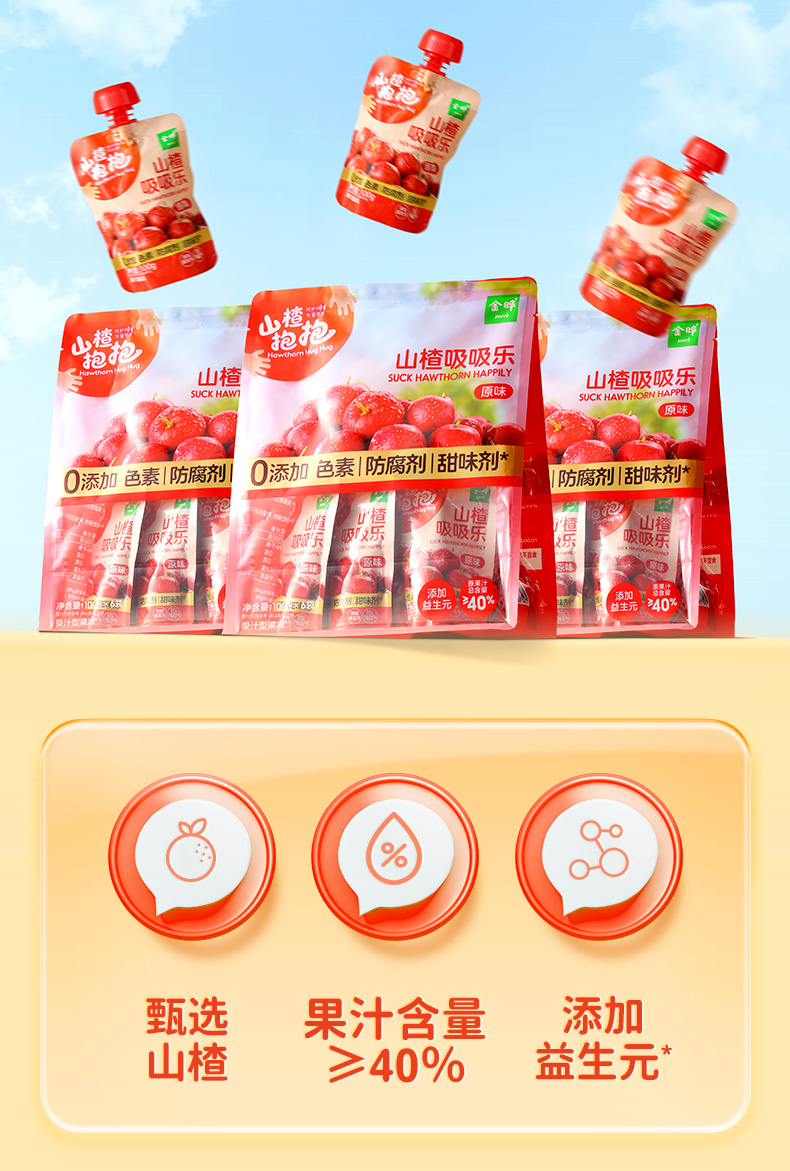 金晔山楂抱抱山楂吸吸乐果冻无添加防腐剂水蜜桃葡萄口味100g