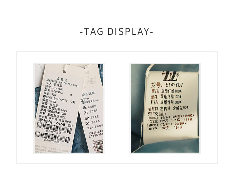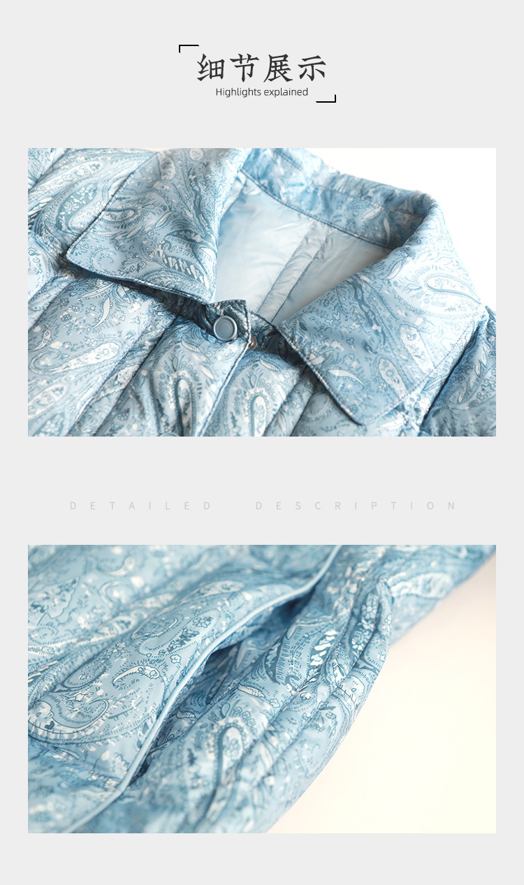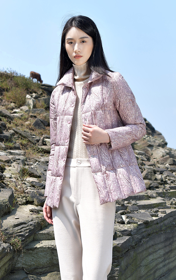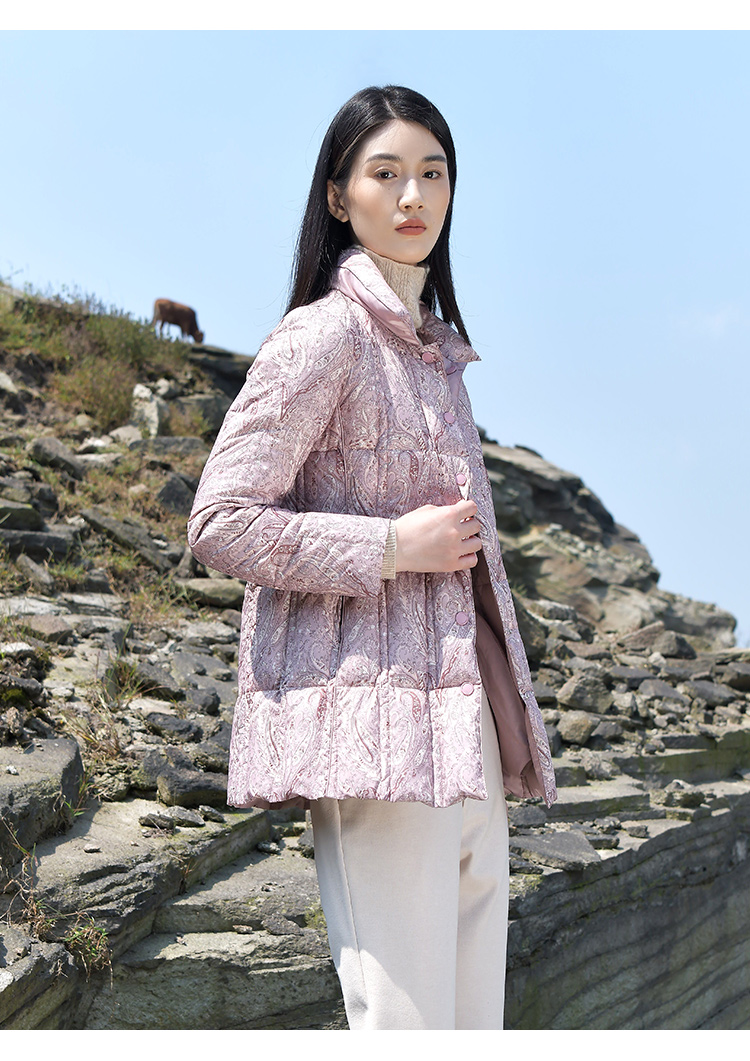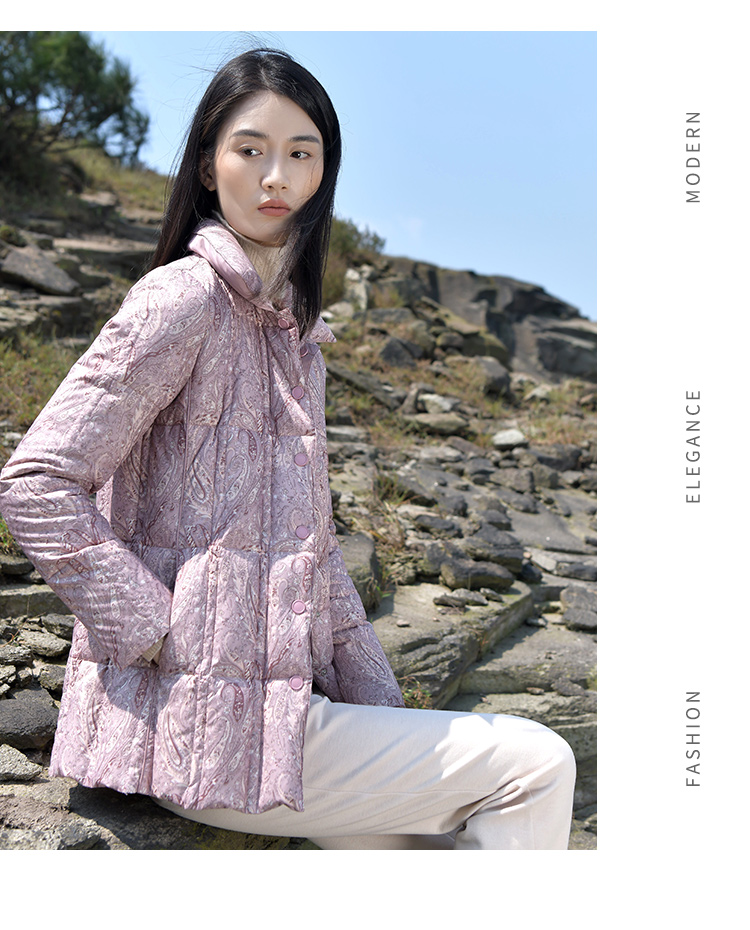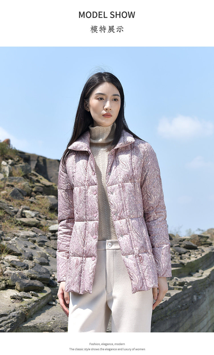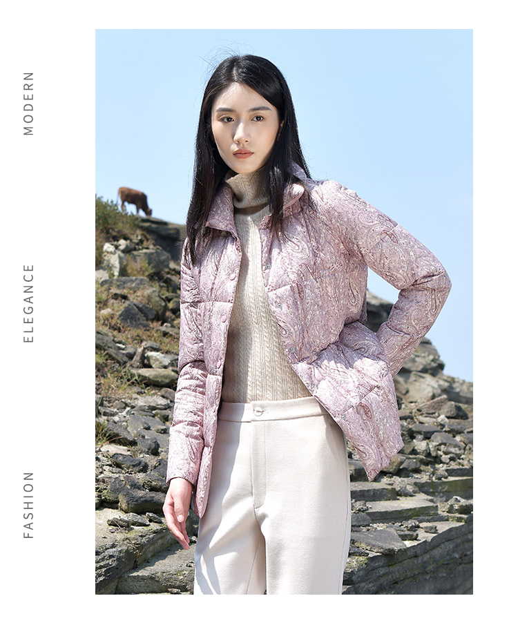 佐尔美2021秋冬新款 翻领印花短款面包服羽绒服女E14YY07