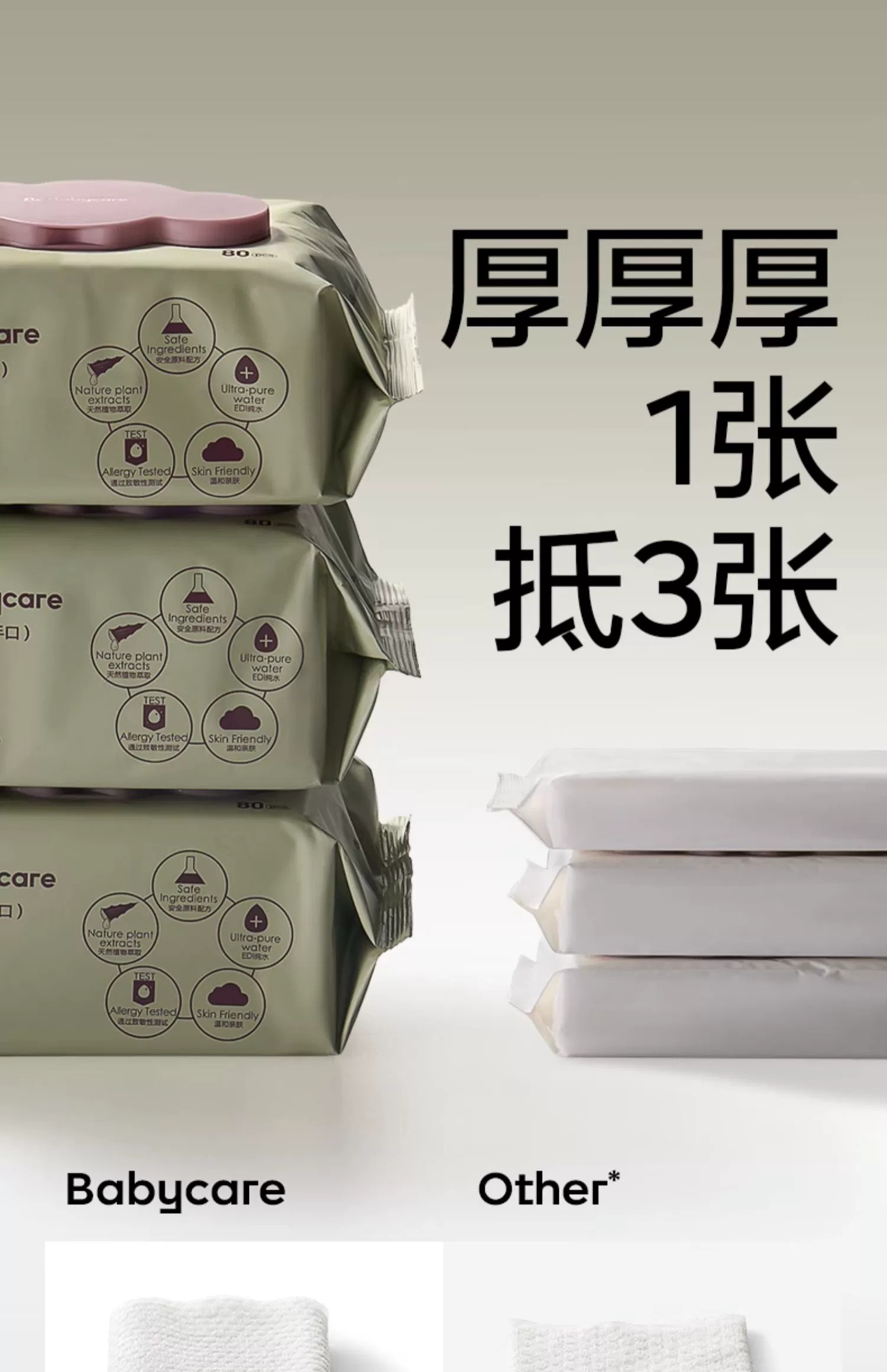 【20抽10包/80抽4包】babycare婴儿紫盖湿巾纸新生手口专用宝宝