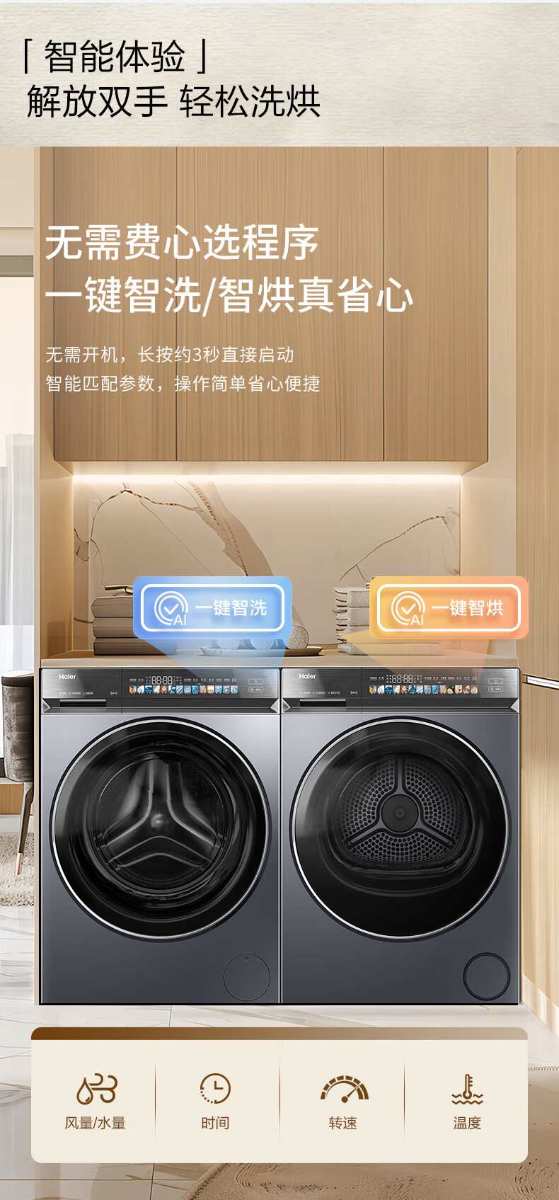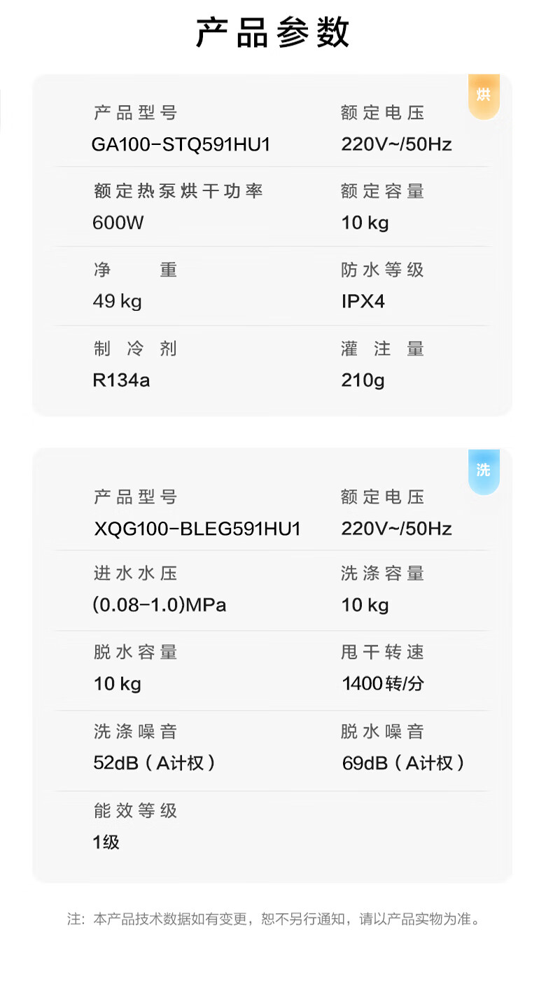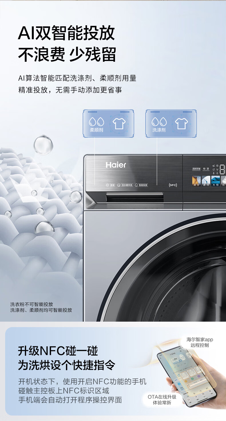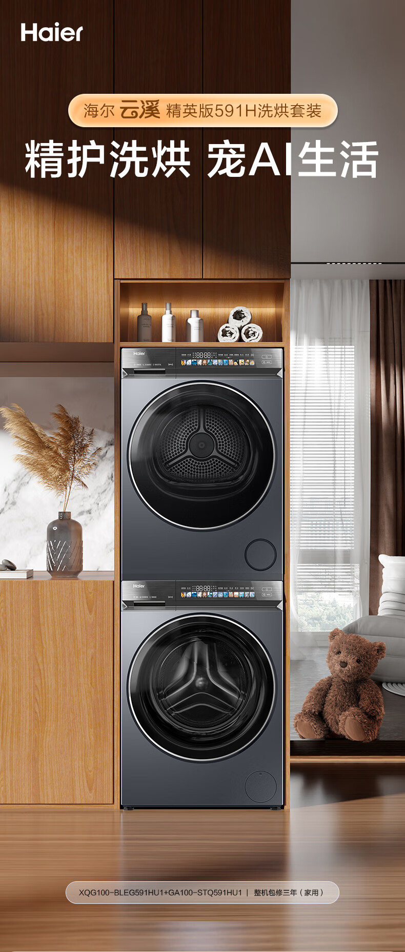 海尔(Haier)云溪4.0洗烘套装 双擎 3D透视 光等 雾化空气洗 XQG100-BLEG591HU1+GA100-STQ591HU1