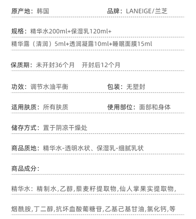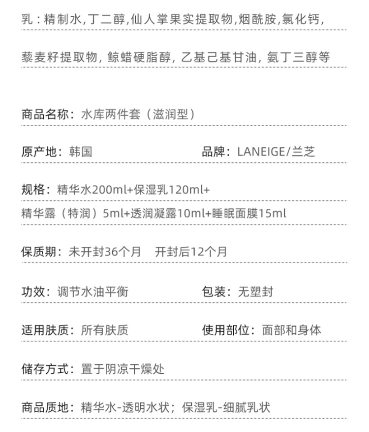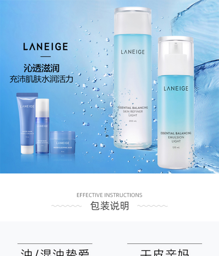 【中欧班列精选】Laneige/兰芝水凝水乳两件套装 清爽/滋润BF