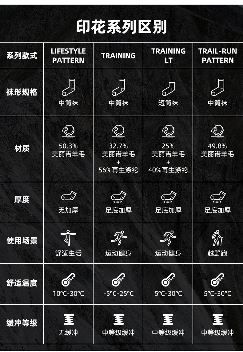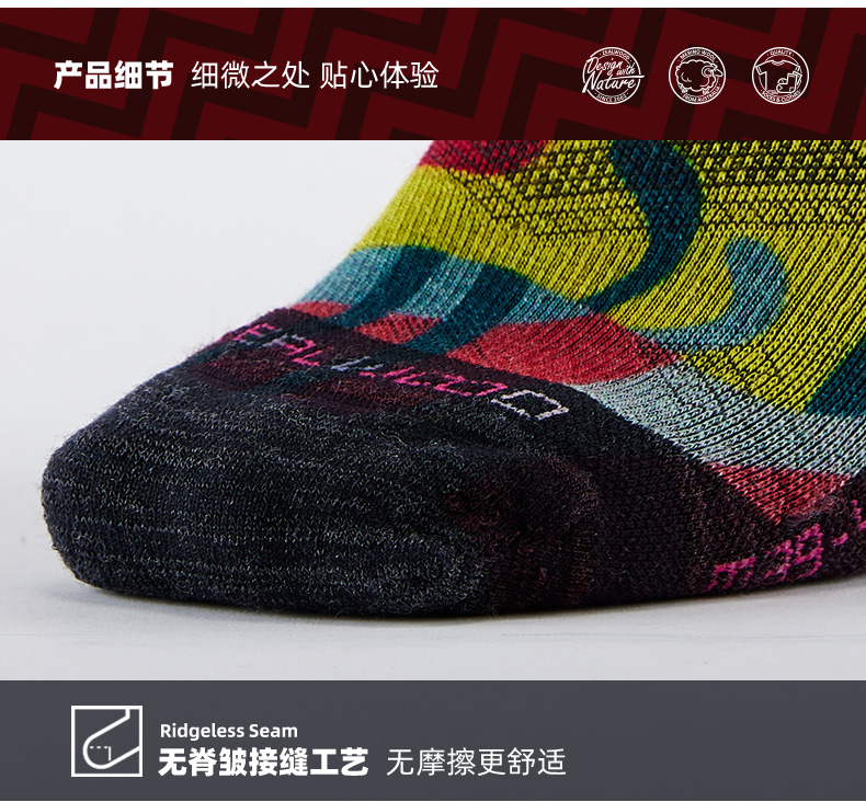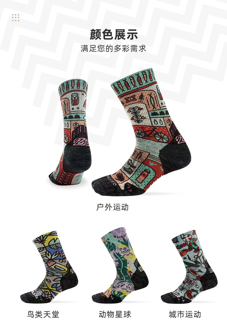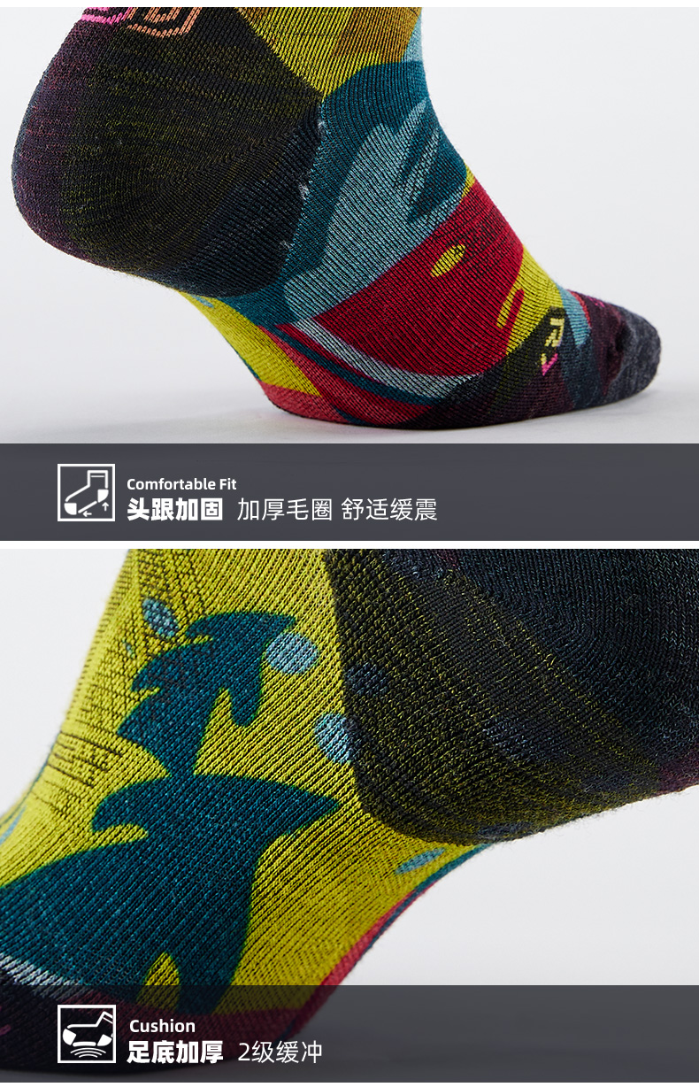 219元2双赛乐ZEALWOOD美丽诺羊毛马拉松毛巾底跑步户外越野印花袜