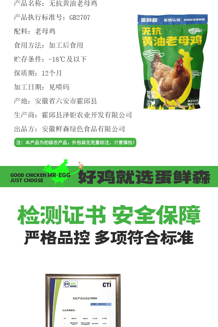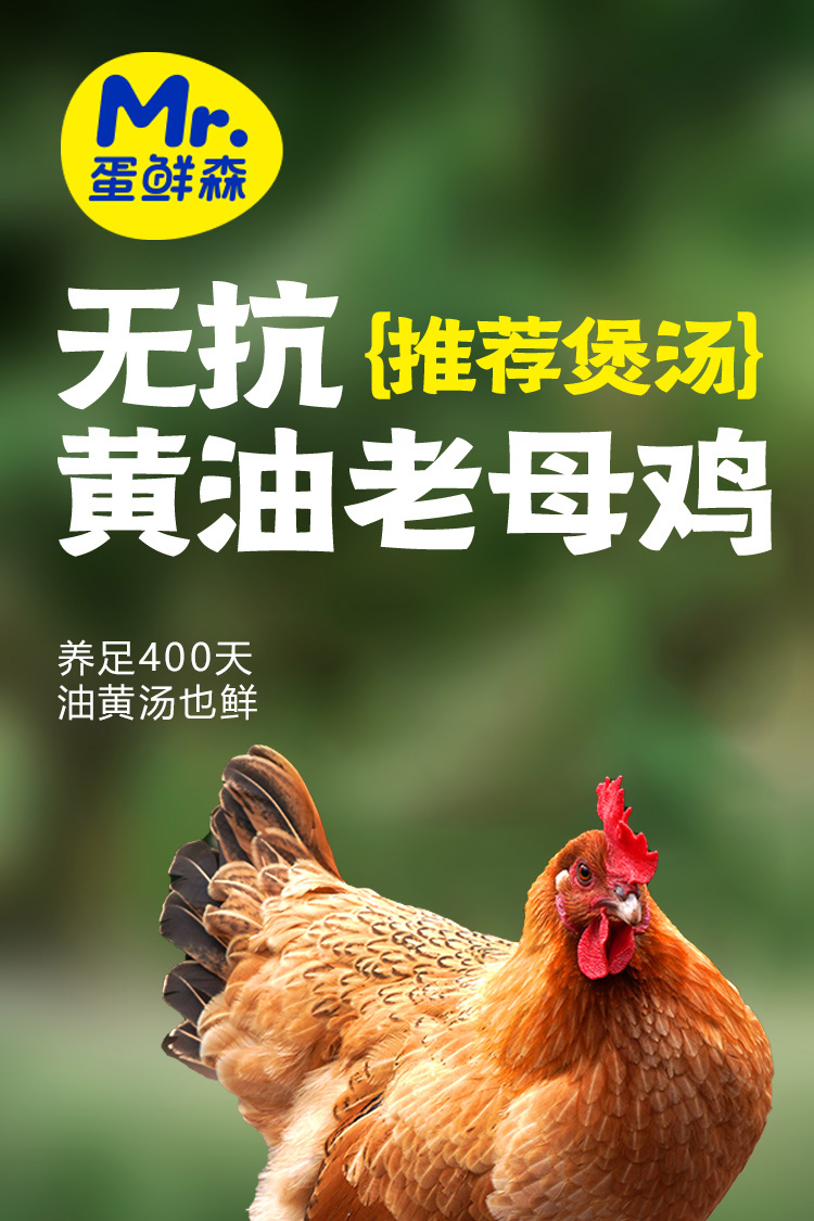 【蛋鲜森❗️黄油老母鸡】养足400天「无抗黄油老母鸡」油黄汤也鲜,不使用激素/0抗生素,谷饲喂养品质更安心,老母鸡2只装(套无抗彩)+650g童子鸡1只装(不套彩)L-d