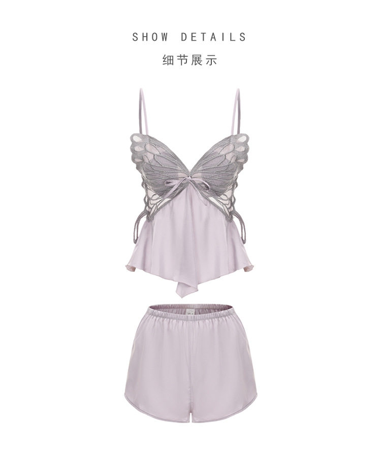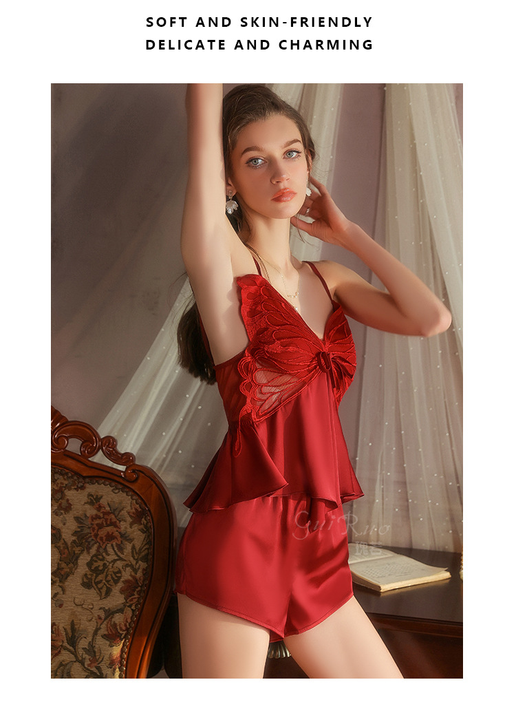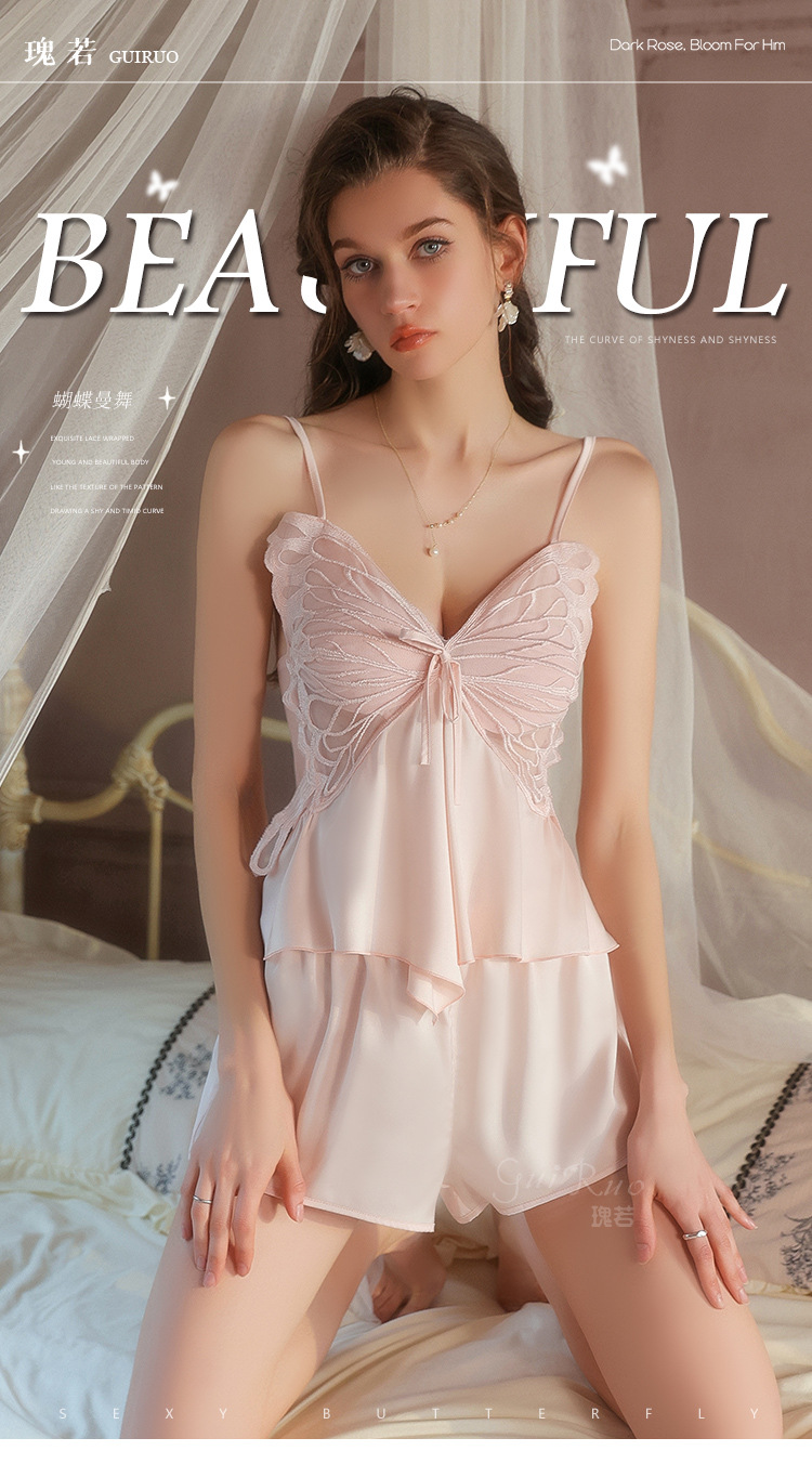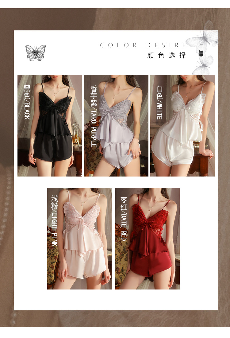 【YW】无忧购【七夕礼物】纯欲顺滑冰丝性感诱惑蝴蝶上衣短裤睡衣家居服套装5631(截单后3-5天发货)
