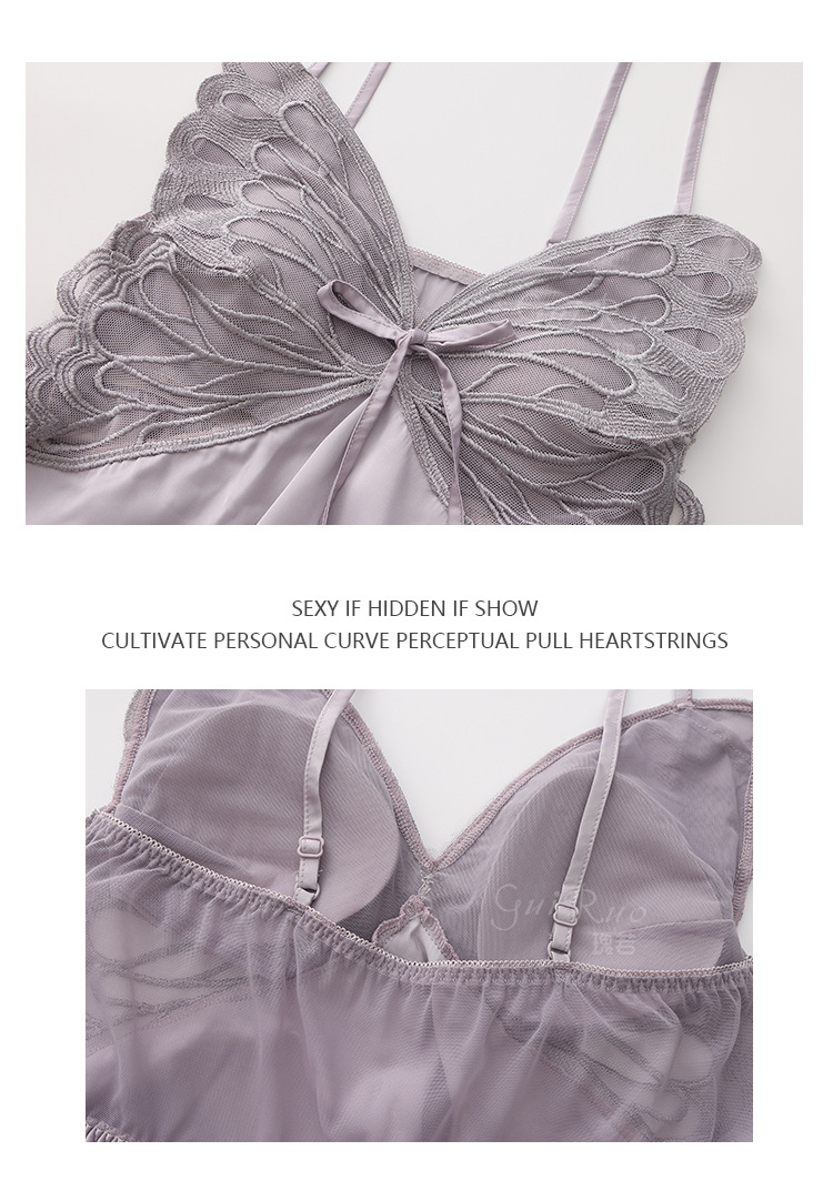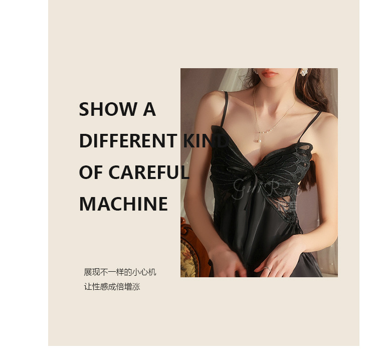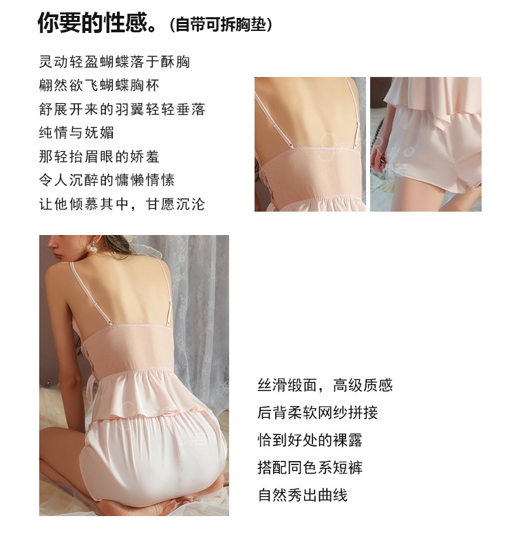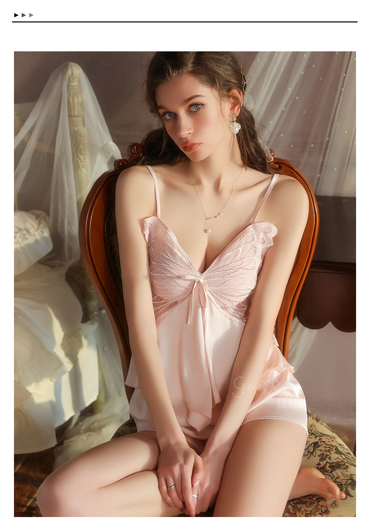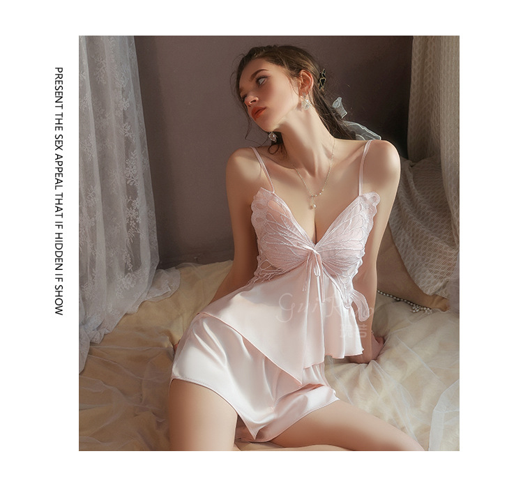 【YW】无忧购【七夕礼物】纯欲顺滑冰丝性感诱惑蝴蝶上衣短裤睡衣家居服套装5631(截单后3-5天发货)