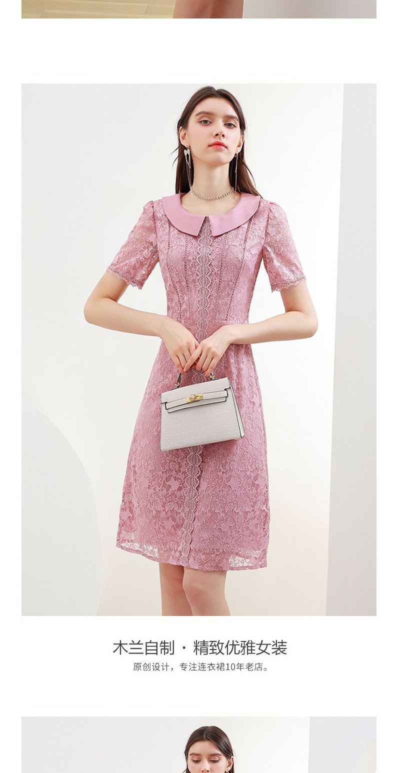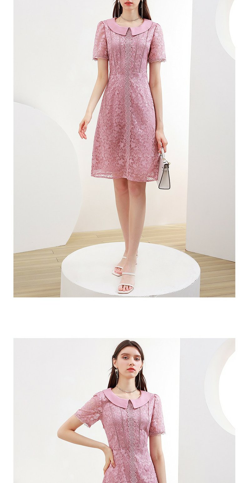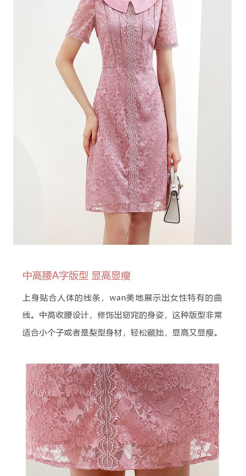 未风粉色蕾丝连衣裙女夏2025夏季新款镂空名媛气质娃娃领减龄裙子