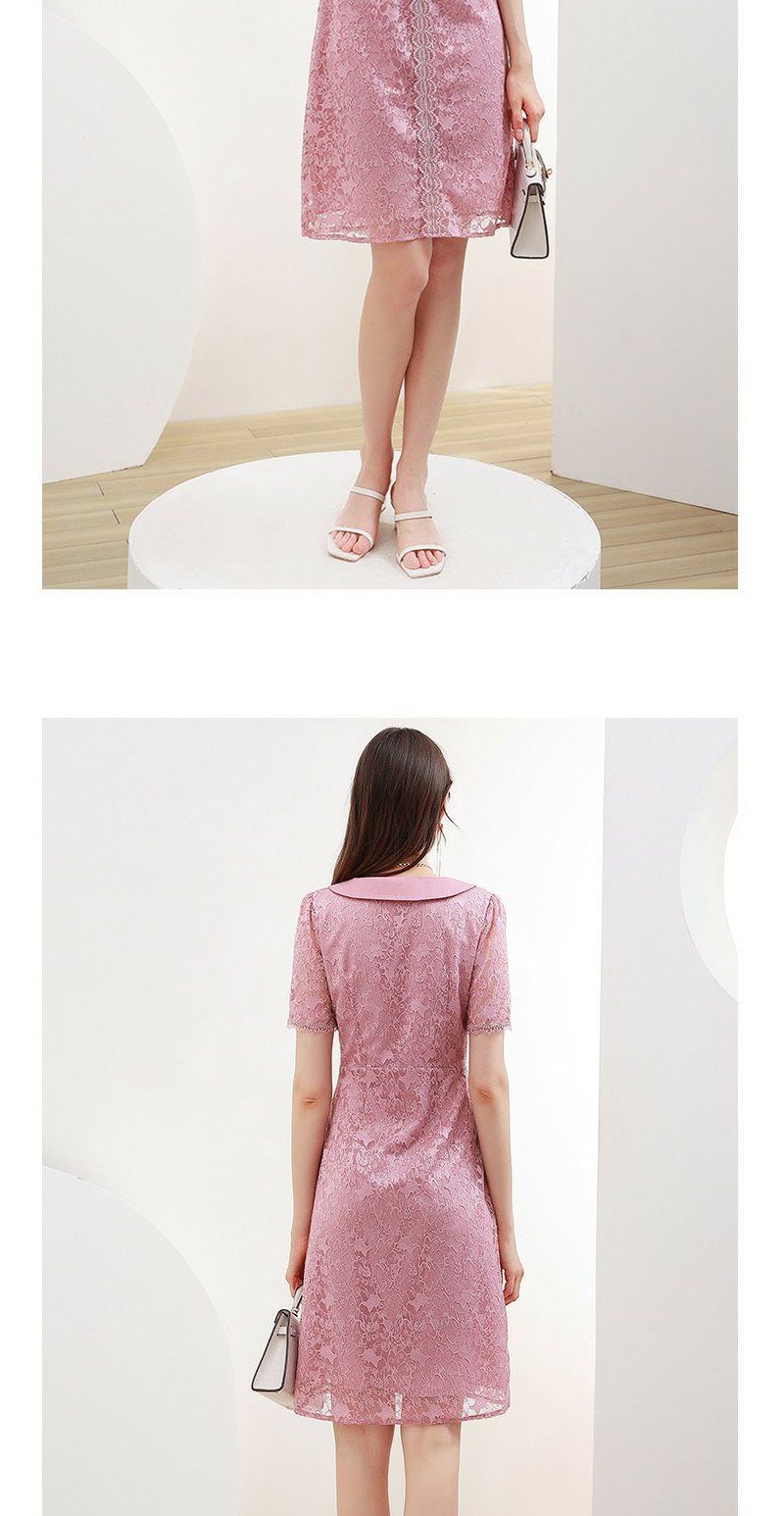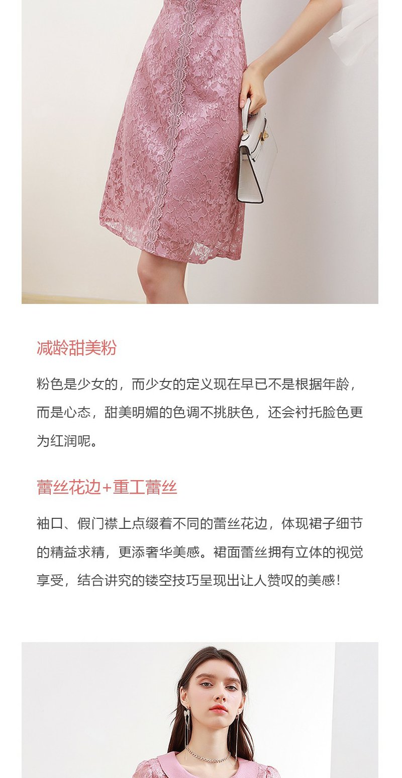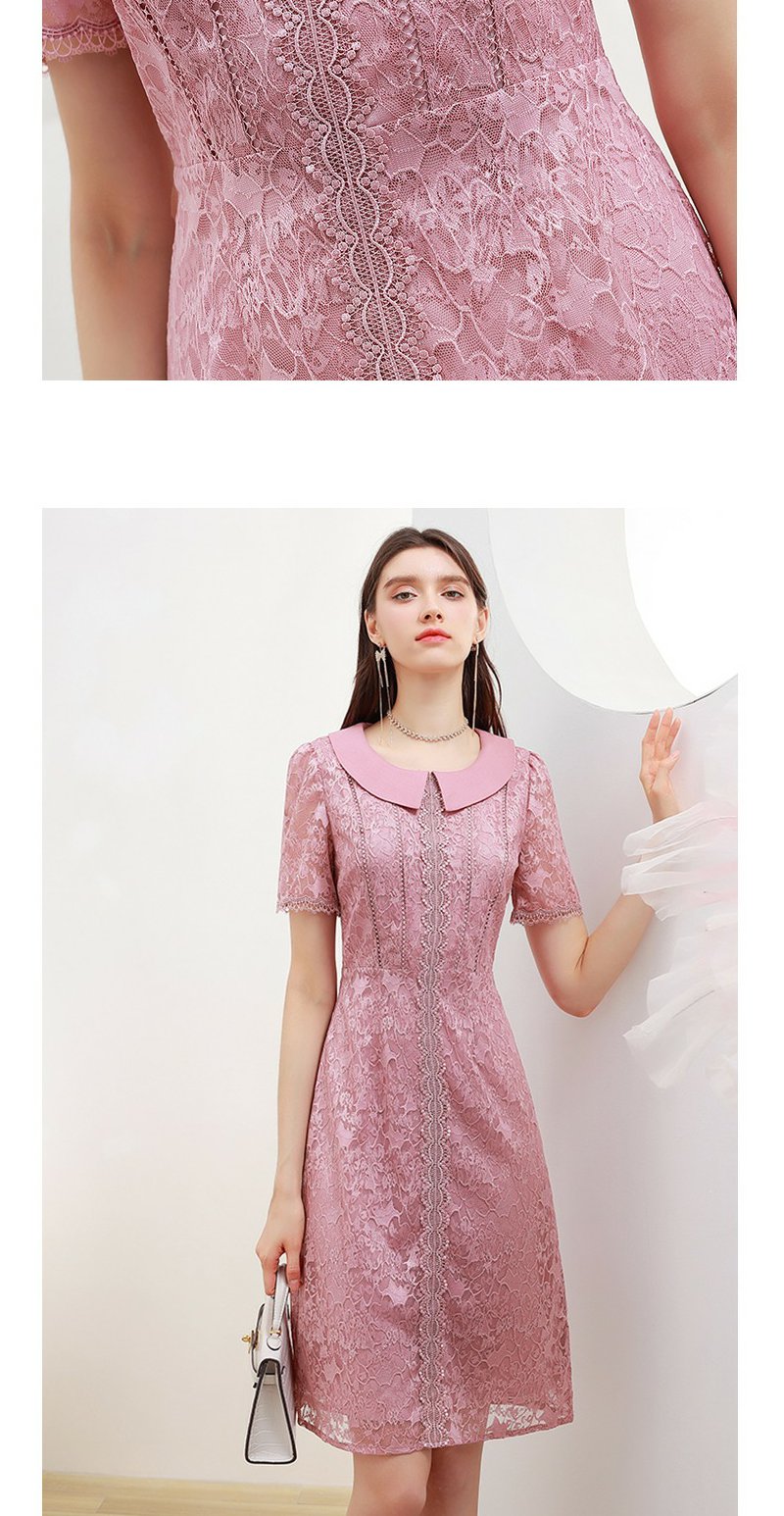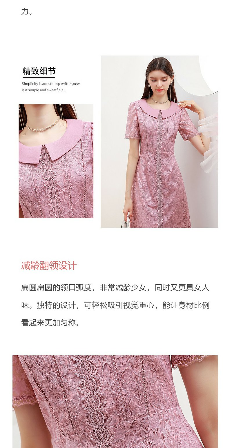 未风粉色蕾丝连衣裙女夏2025夏季新款镂空名媛气质娃娃领减龄裙子