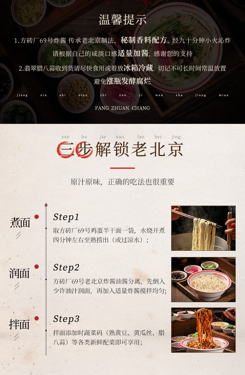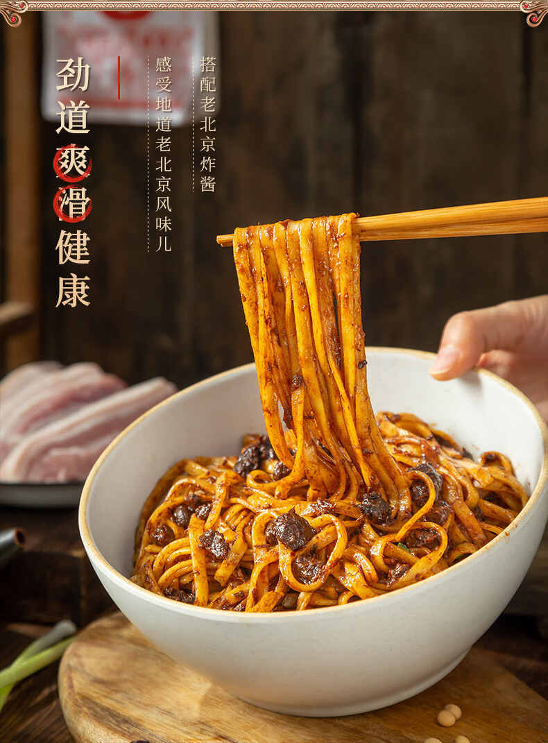 【爽滑劲道久煮不烂】方砖厂69号老北京炸酱面鸡蛋面半干面条非油炸宽面速食方便180g*10袋