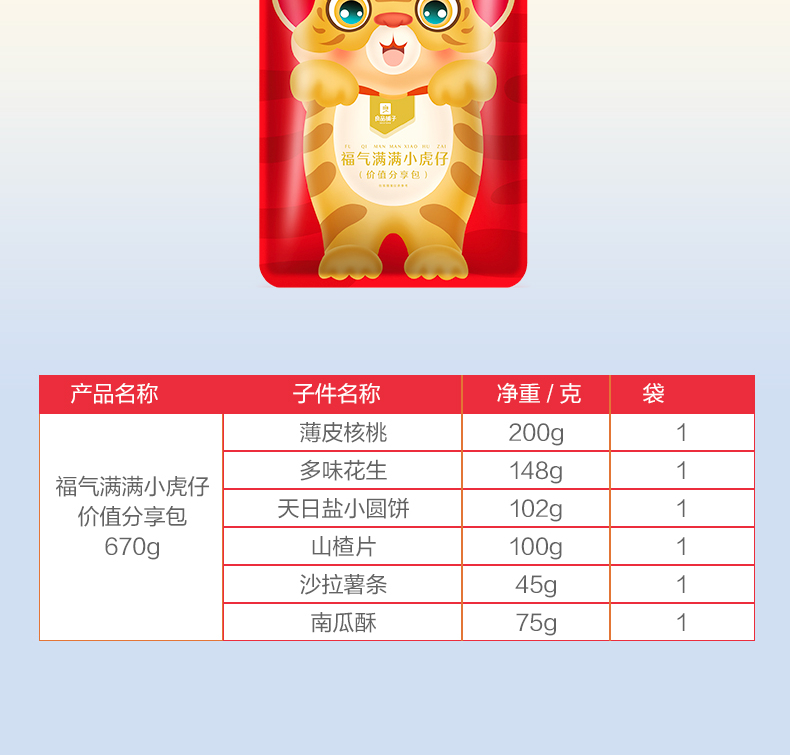 良品铺子 福气满满小虎仔-价值分享包670g【LY】【包邮直发】