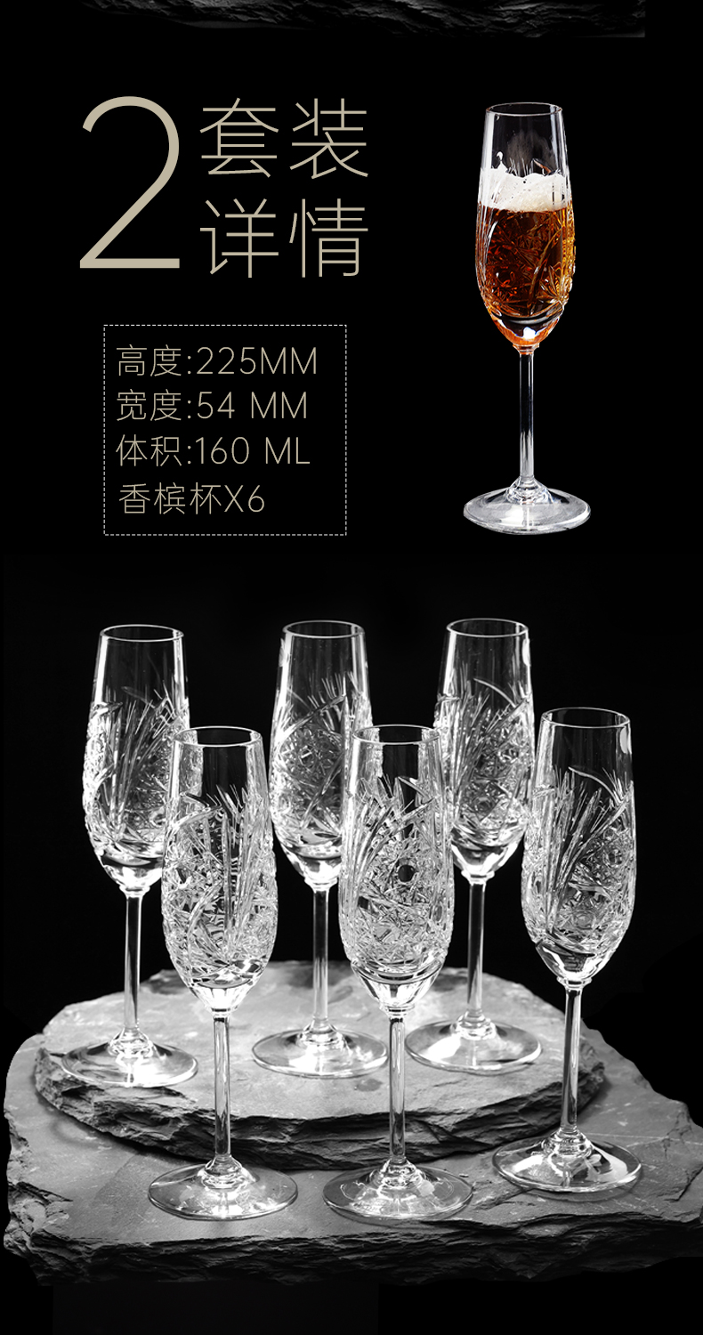 白俄罗斯水晶杯 香槟酒杯套装 一套6个