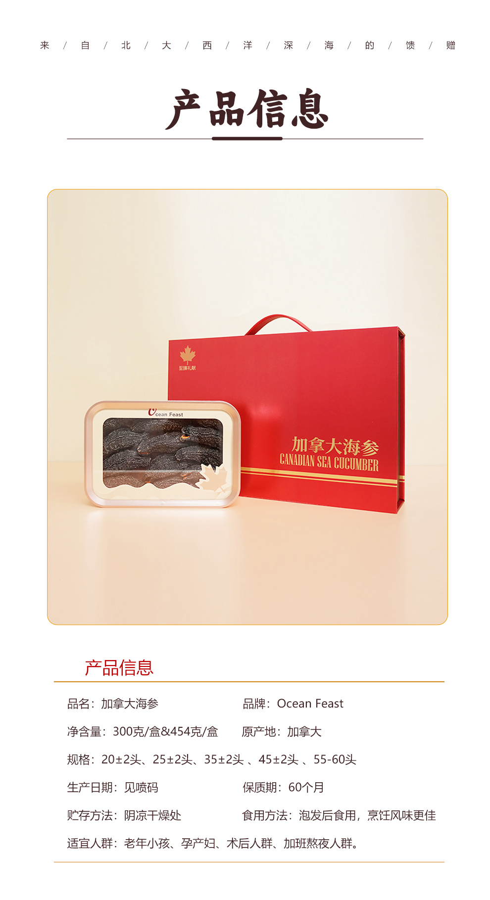 OceanFeast加拿大即食海参大礼箱【1磅/袋、5袋/箱】