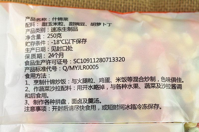 绿润速冻什锦菜 250g 披萨炒饭沙拉用 玉米粒豌豆粒胡萝卜三色菜