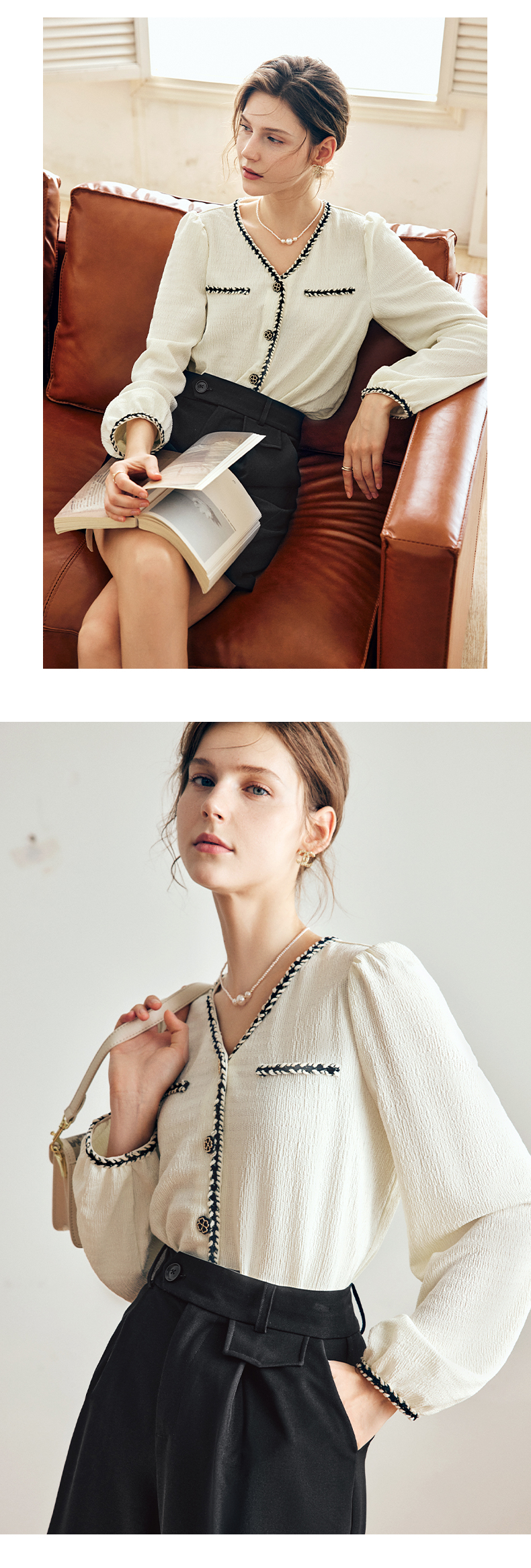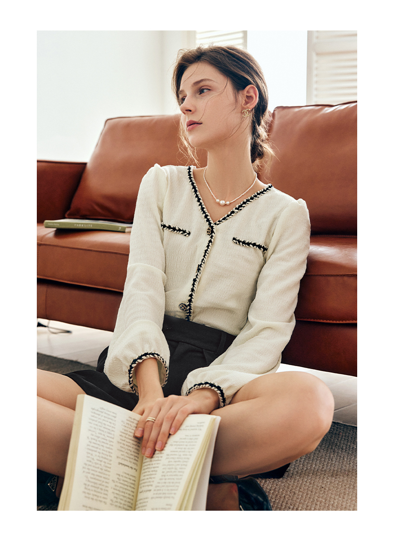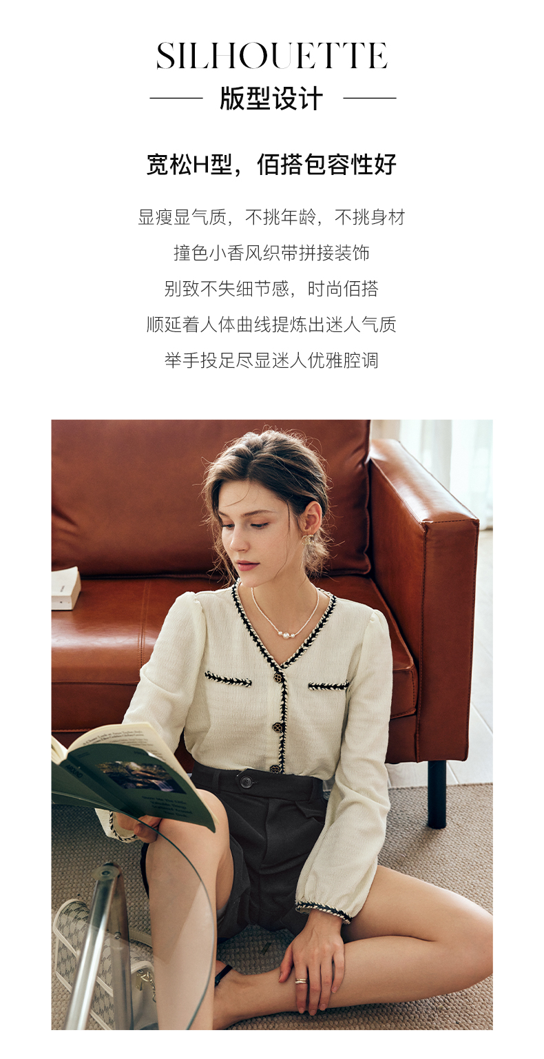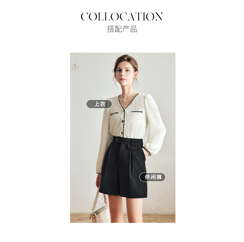OLrain法式杏色小香风雪纺衫女早秋2022新款宽松气质优雅v领小衫