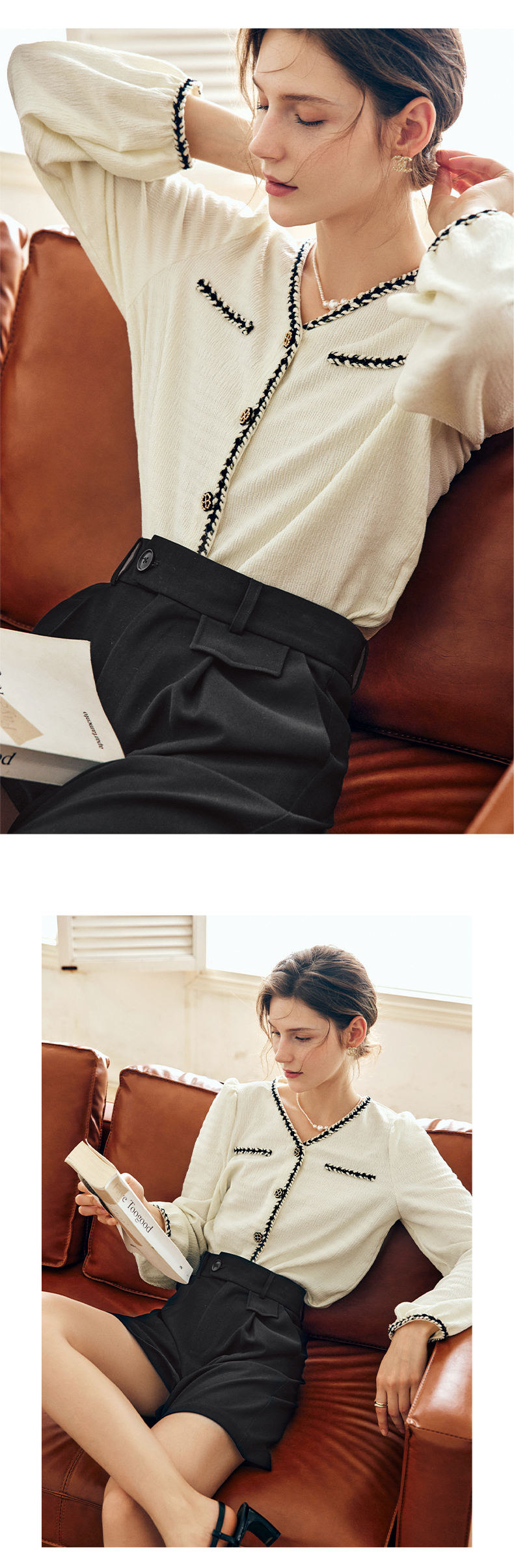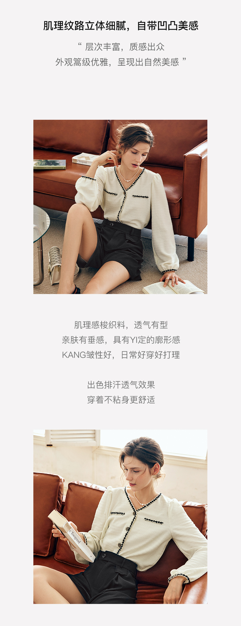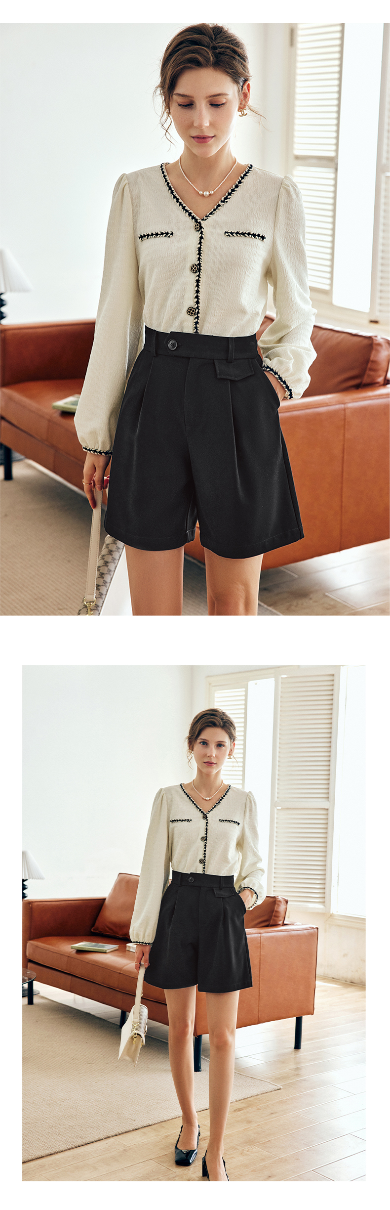 OLrain法式杏色小香风雪纺衫女早秋2022新款宽松气质优雅v领小衫
