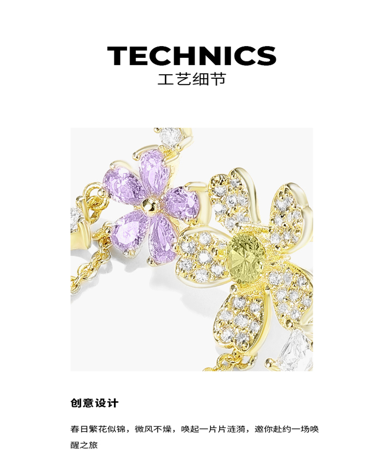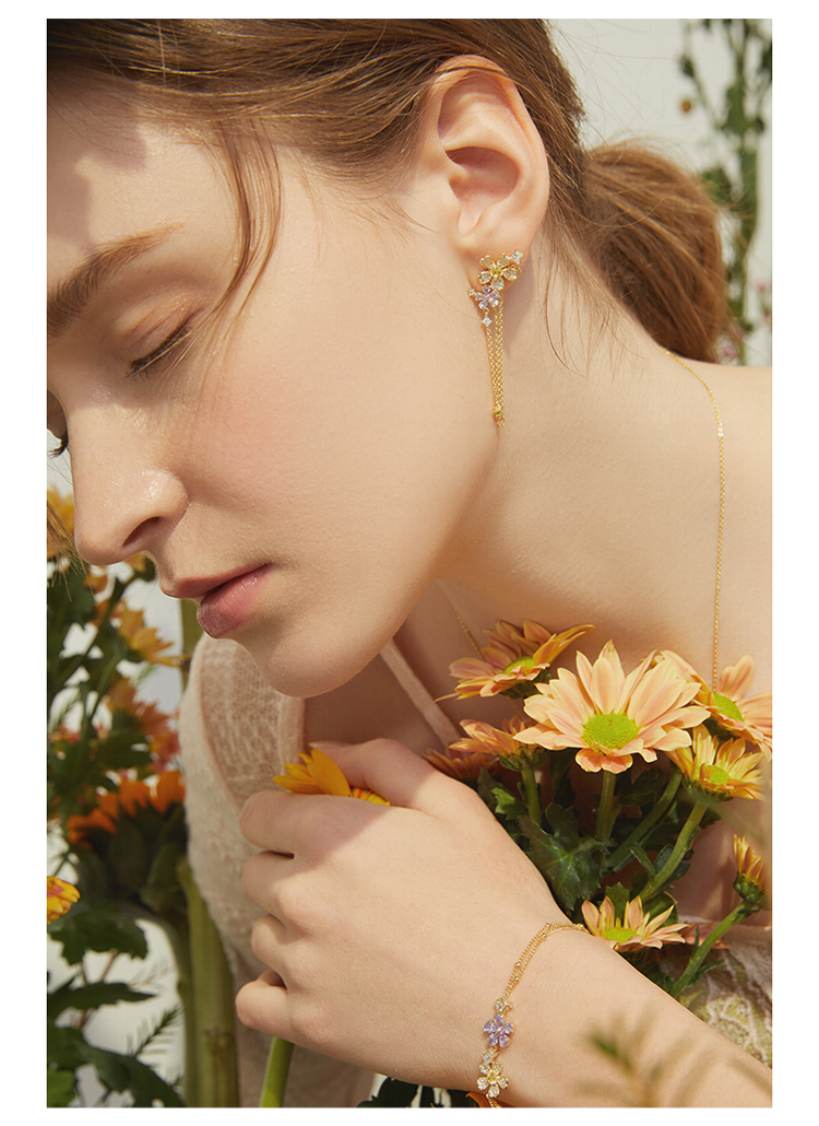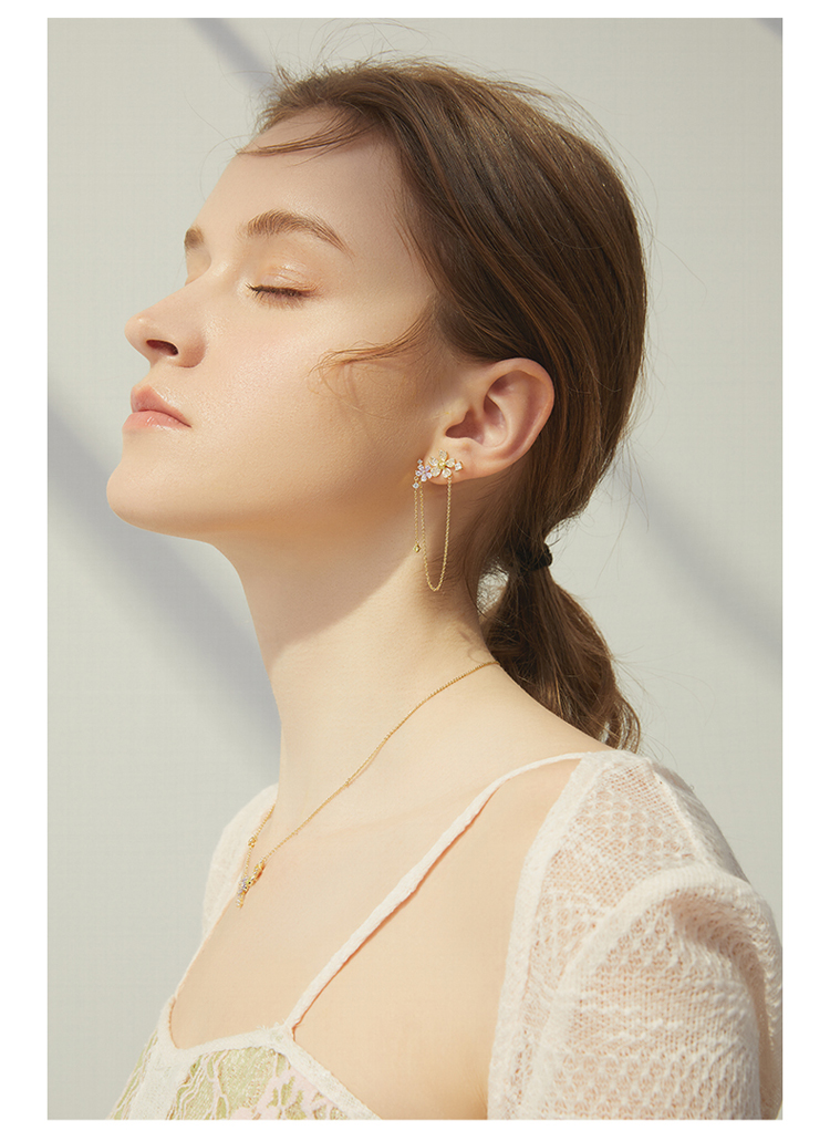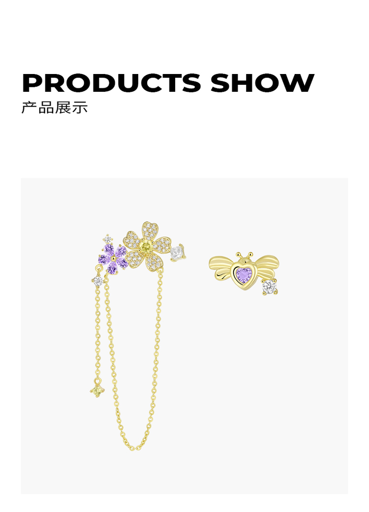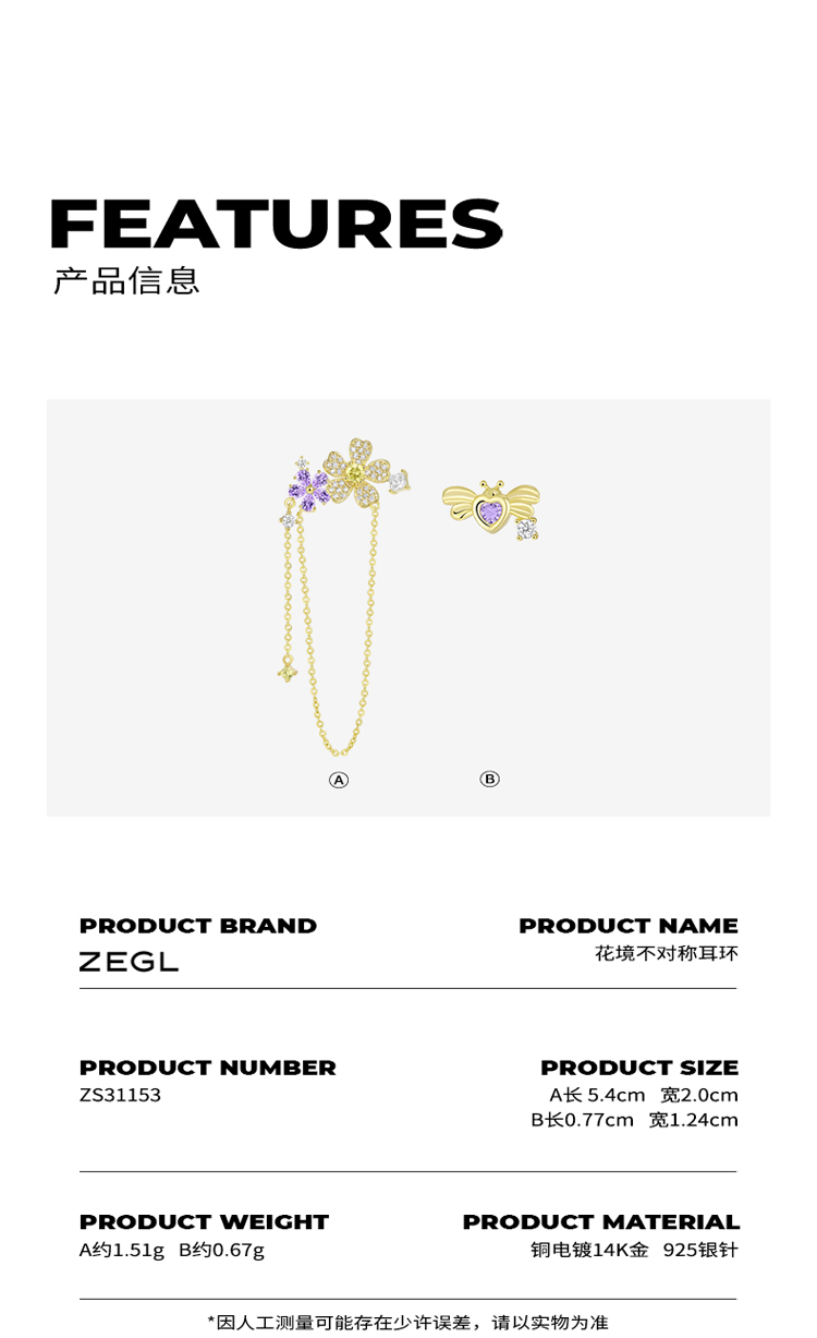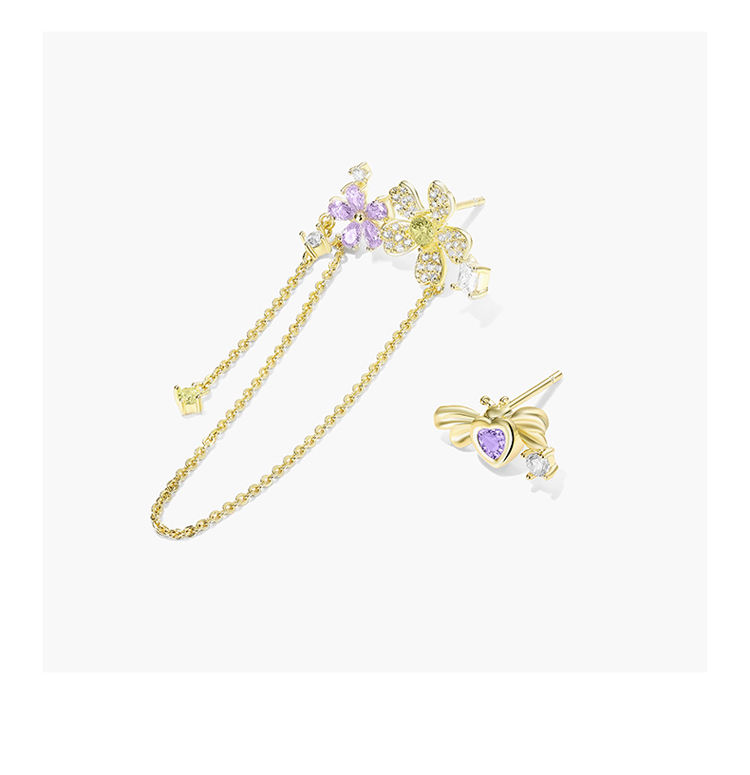 ZEGL设计师春日野趣系列蜜蜂花朵流苏耳环女耳钉银针不对称耳饰品