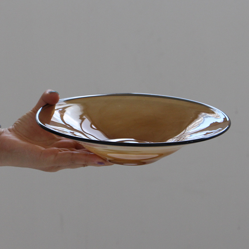 北欧风瓷粉黑边敞口花瓶鲜花餐桌电视柜简约创意手工家用玻璃果盘