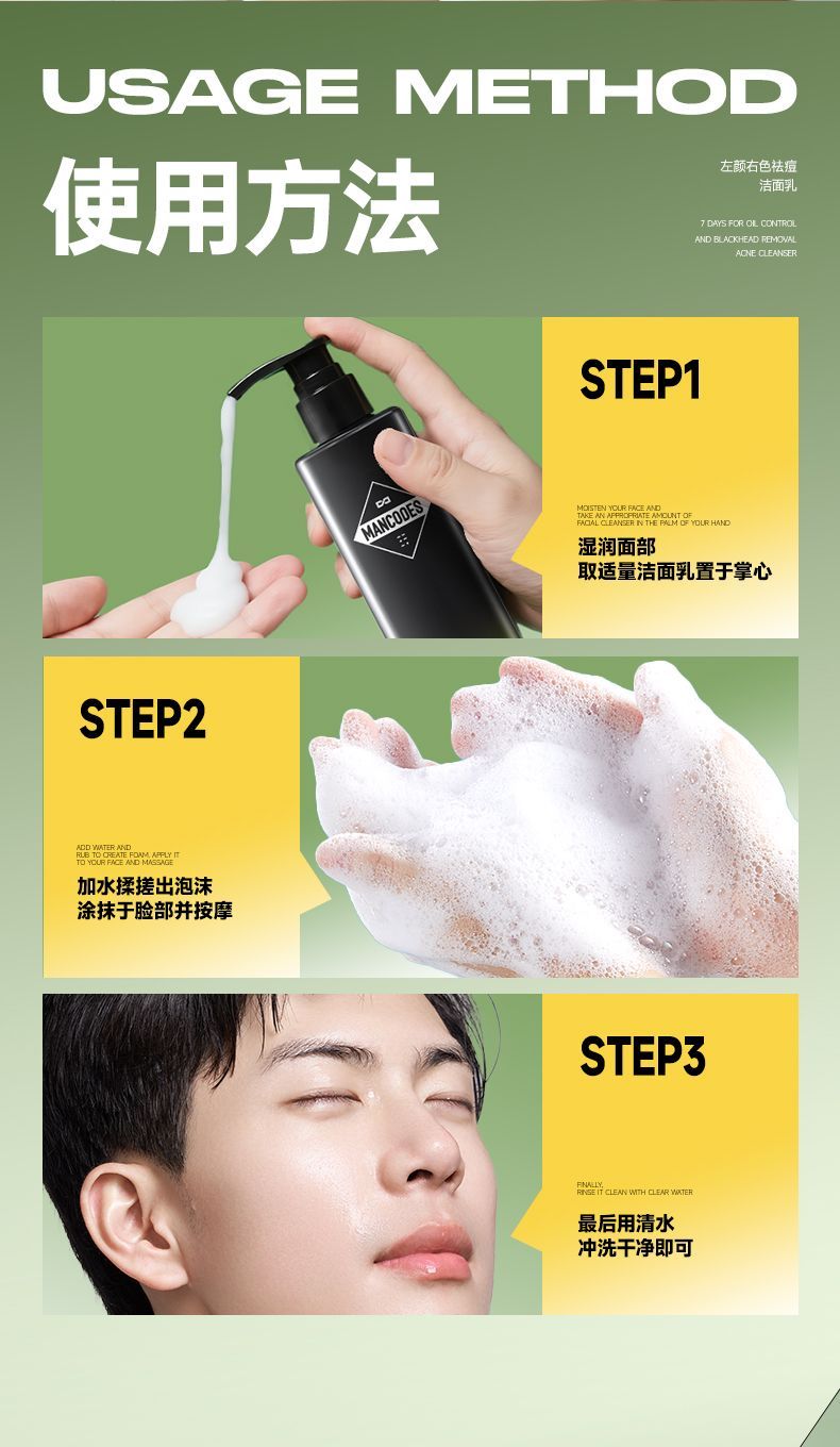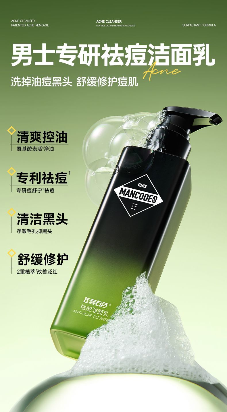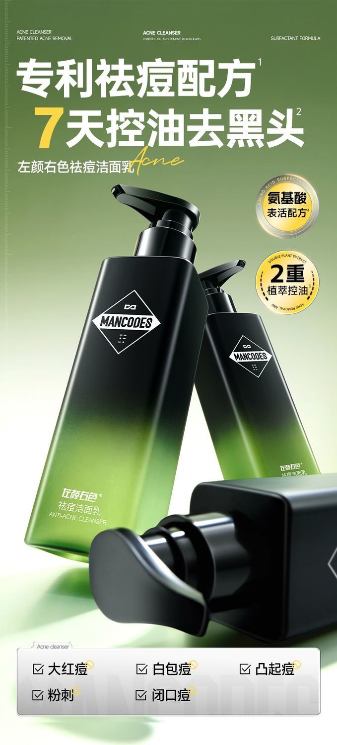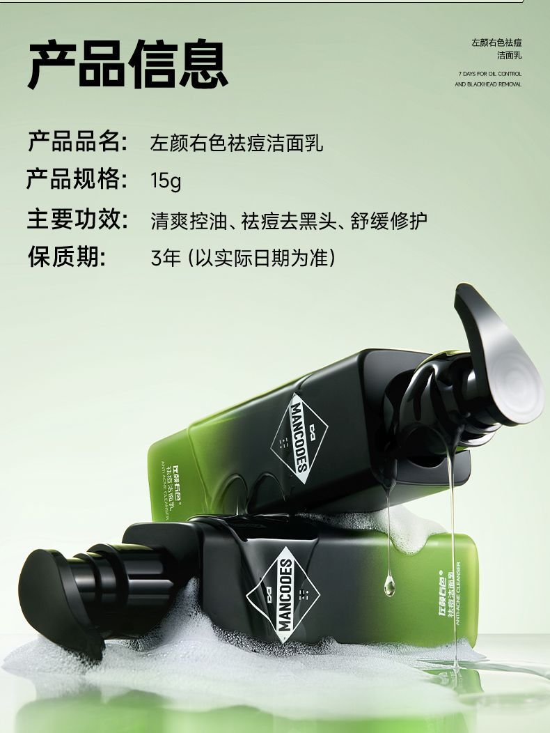 【59元任选2件】左颜右色祛痘洁面乳150g 男士专研祛痘去黑头温和修护油痘肌
