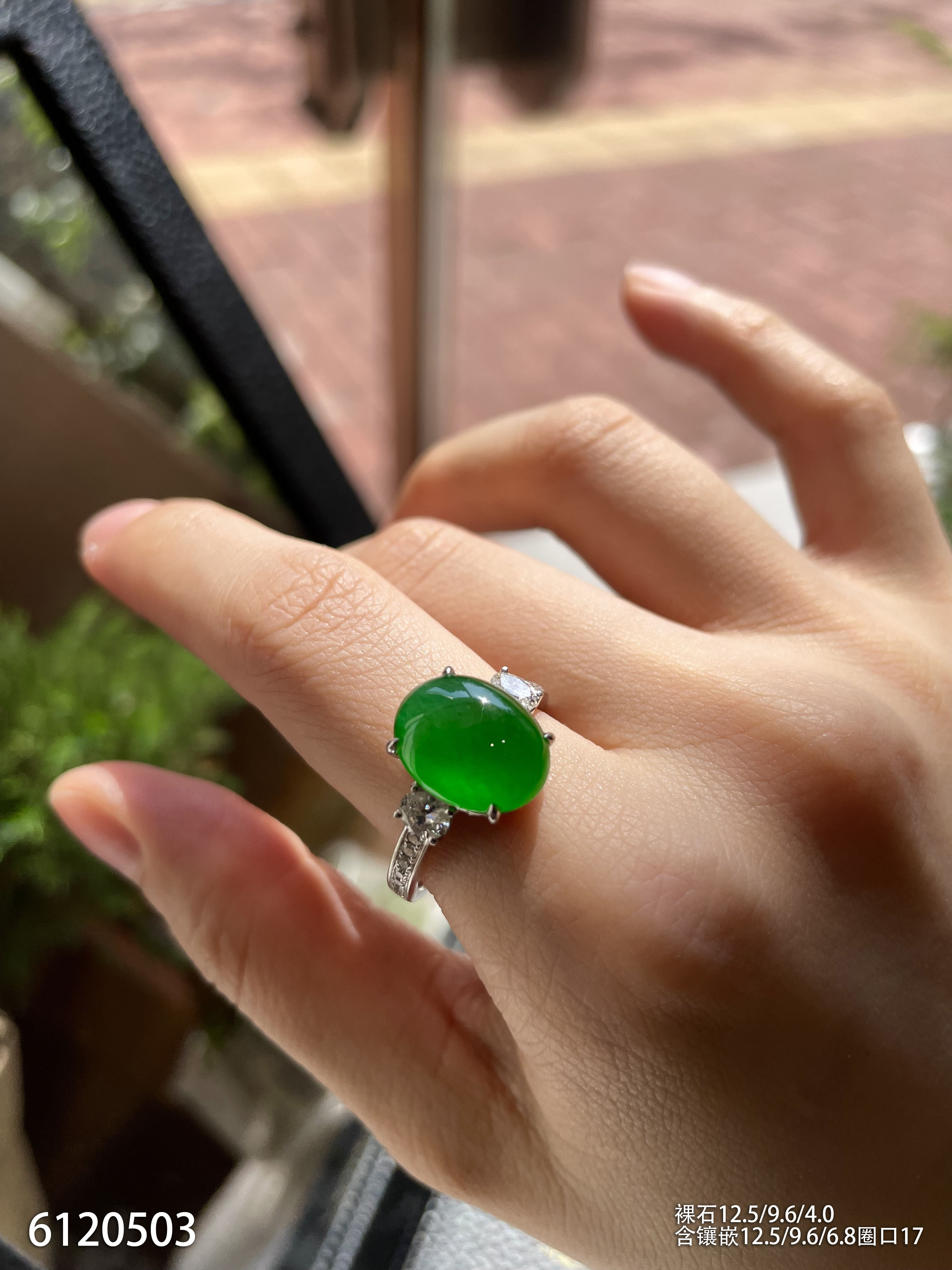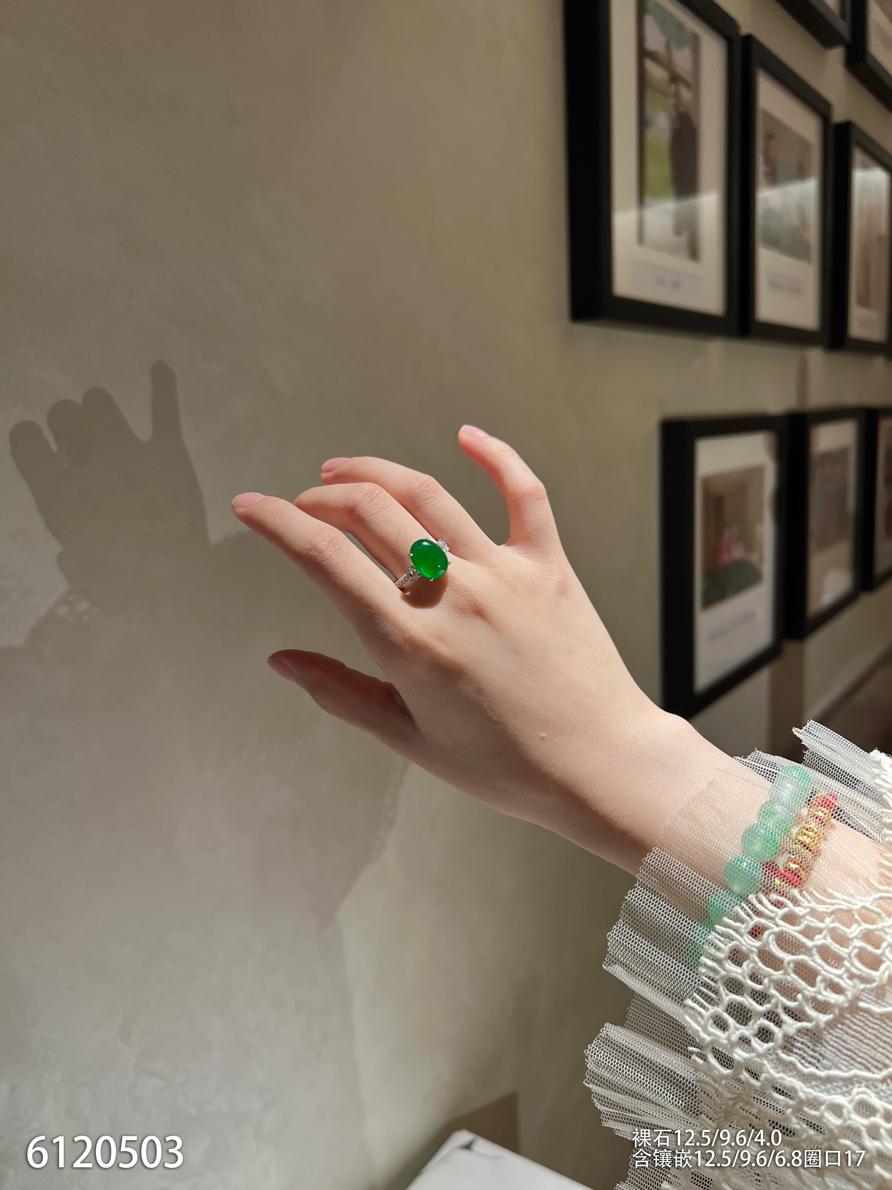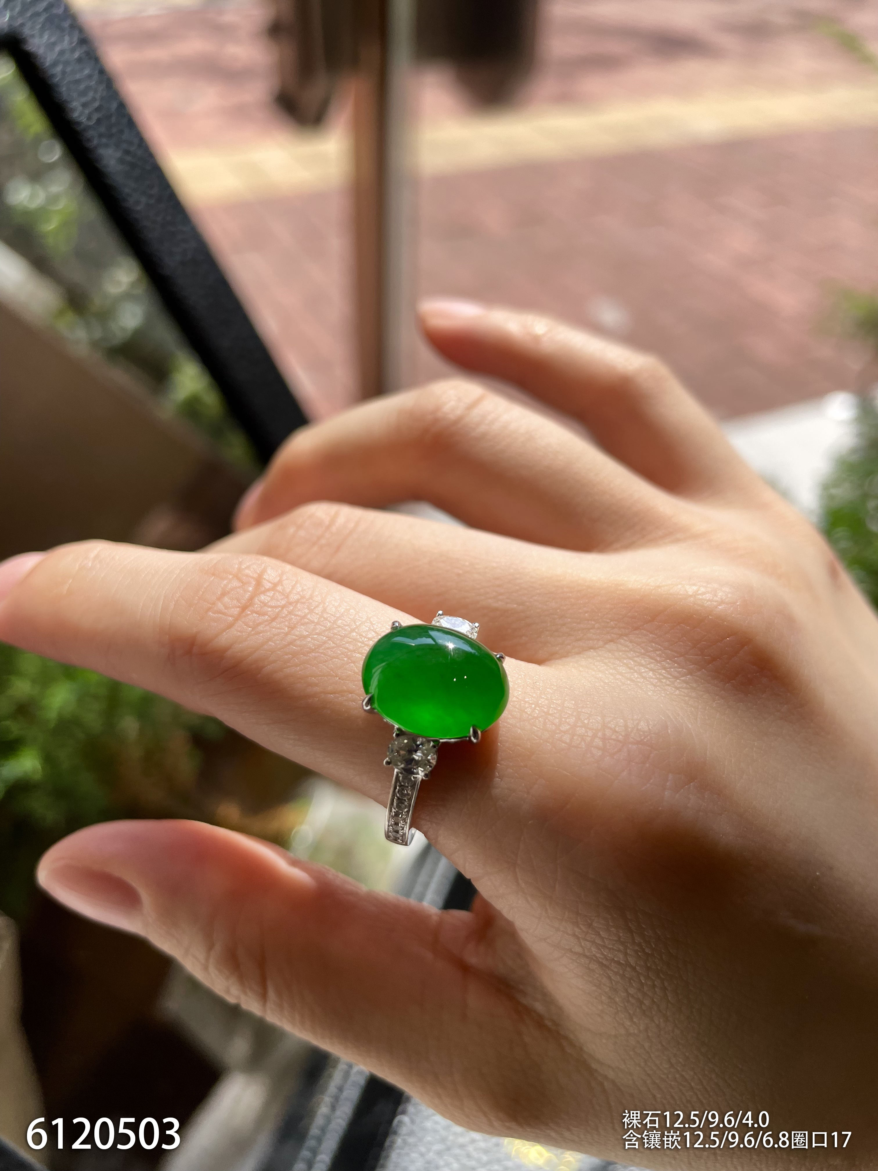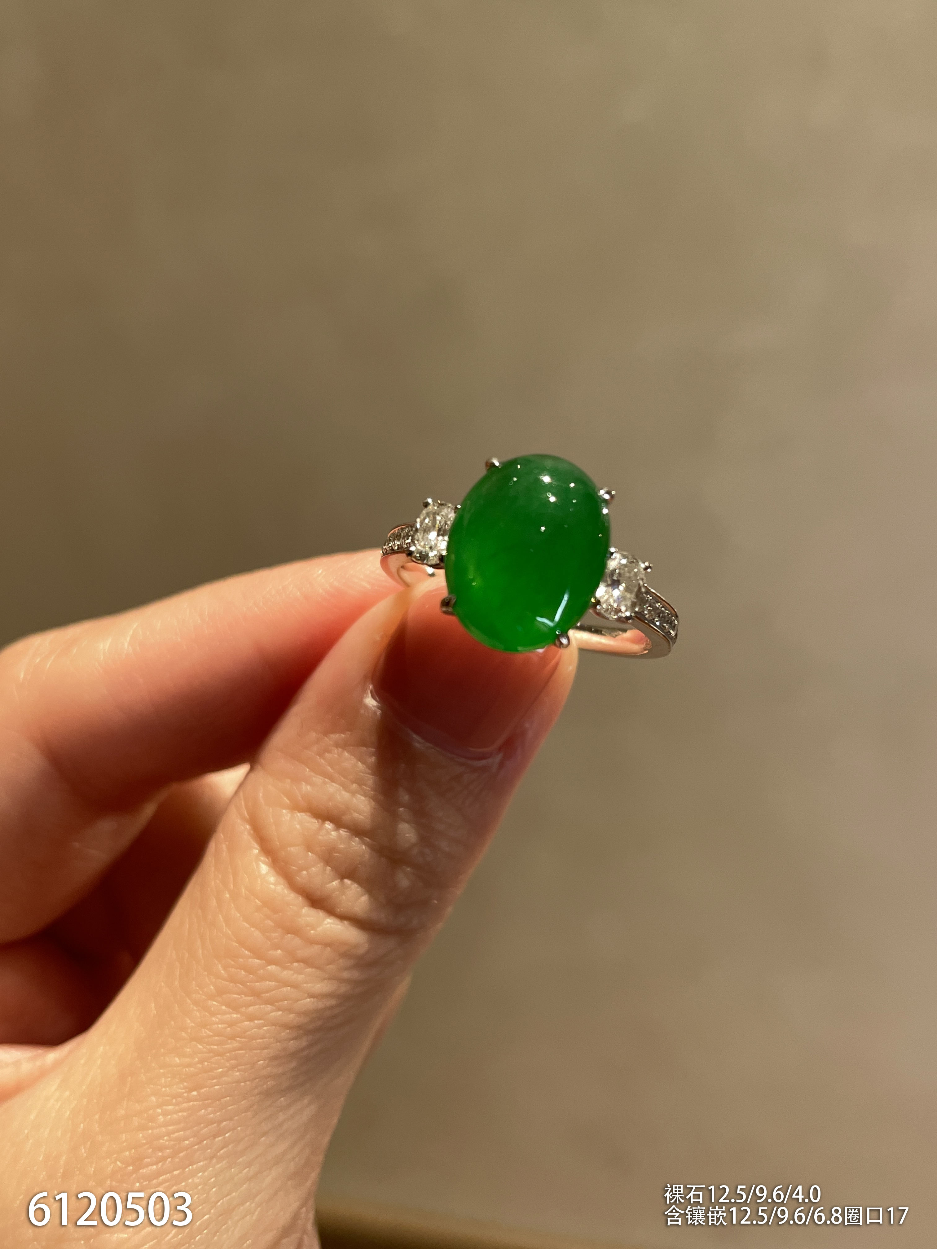 高冰种艳绿蛋面耳钉【6310503】具体价格微信咨询