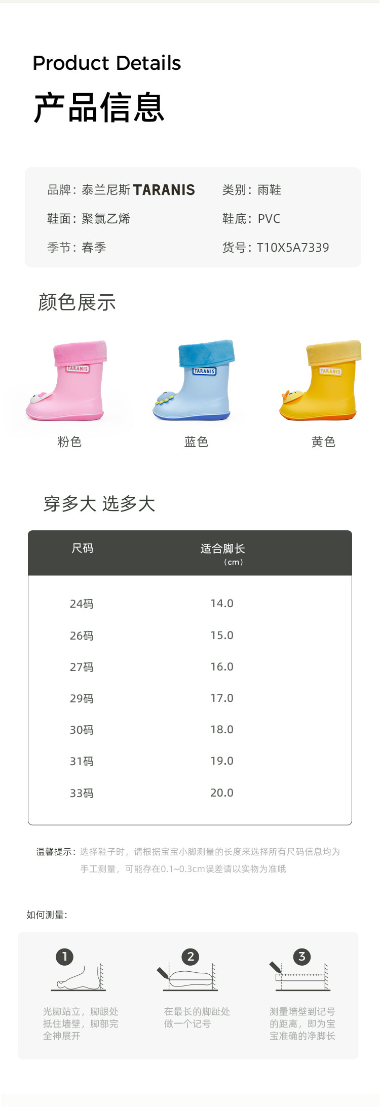 泰兰尼斯小童段舒适防滑儿童雨鞋T10X5A7339