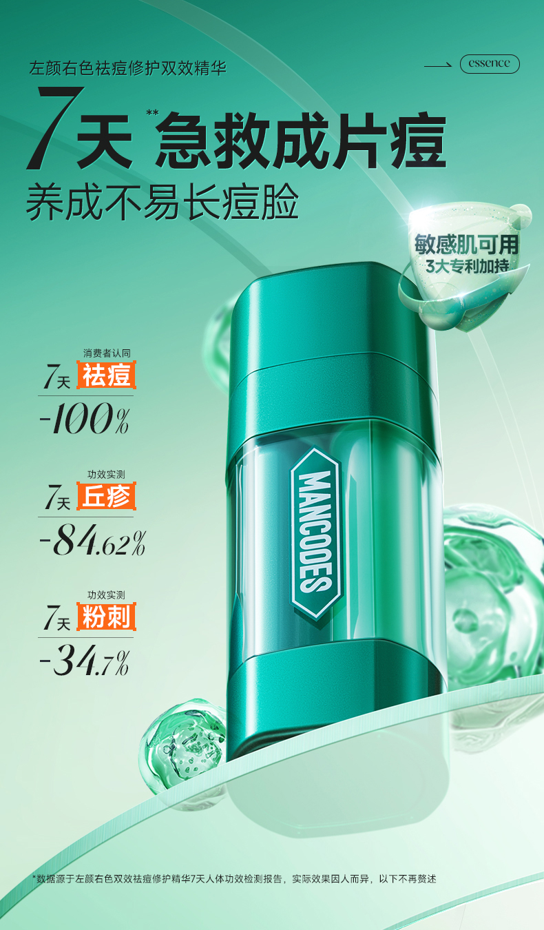 🎊双旦礼遇 | 拍5免3☃低至¥31.9/件>左颜右色 水杨酸男士精华水100ml