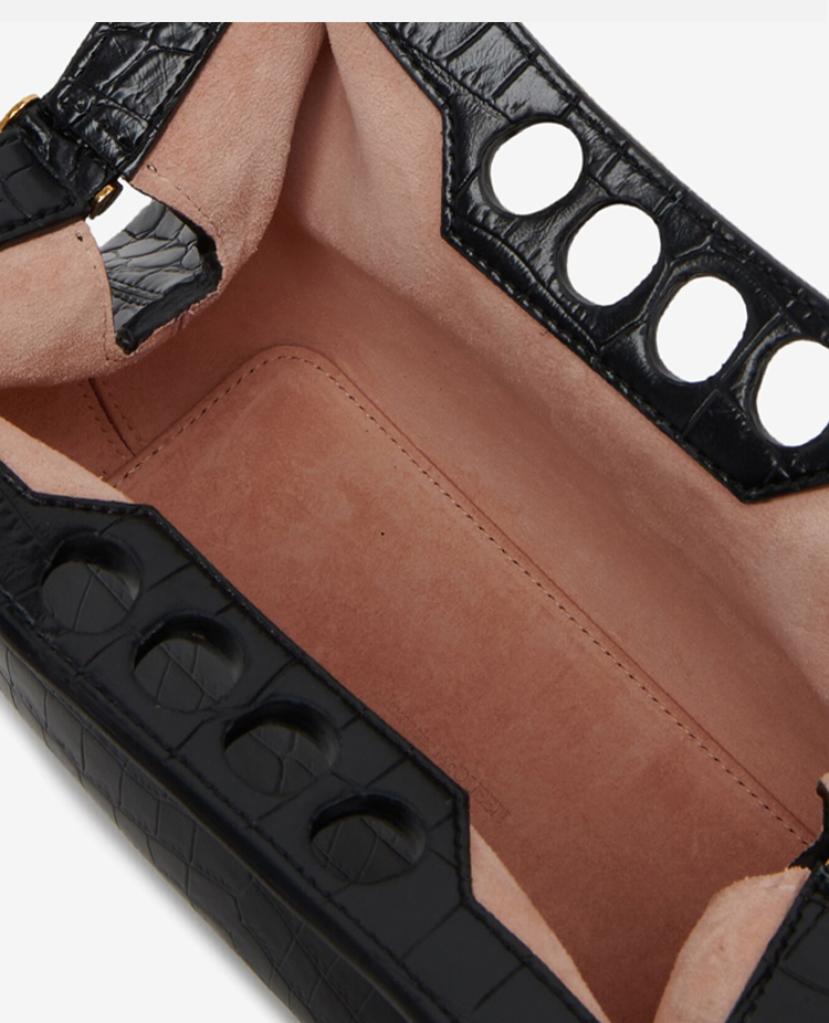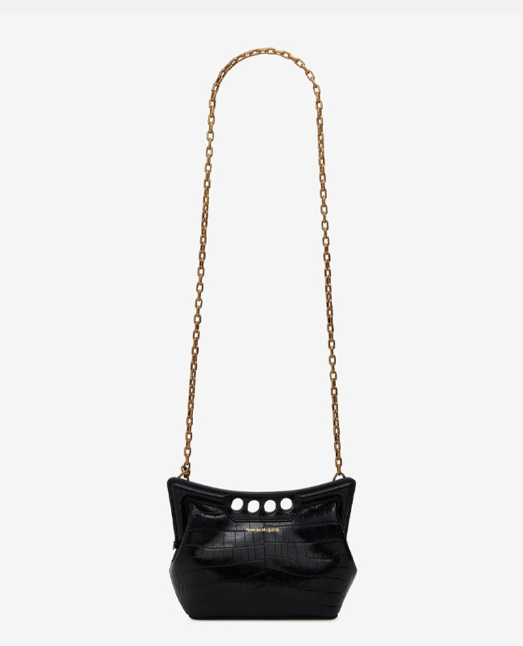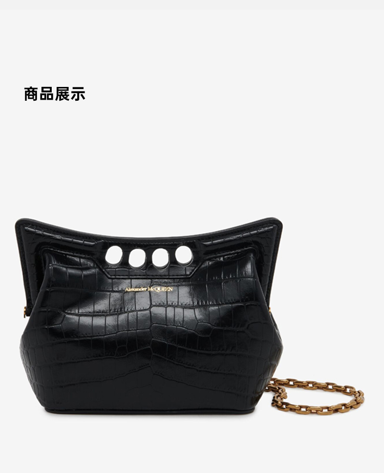 ALEXANDER MCQUEEN 亚历山大.麦昆 女士仿鳄鱼纹迷你 The Peak 链条单肩包 黑色 789948 1MCAA 1000