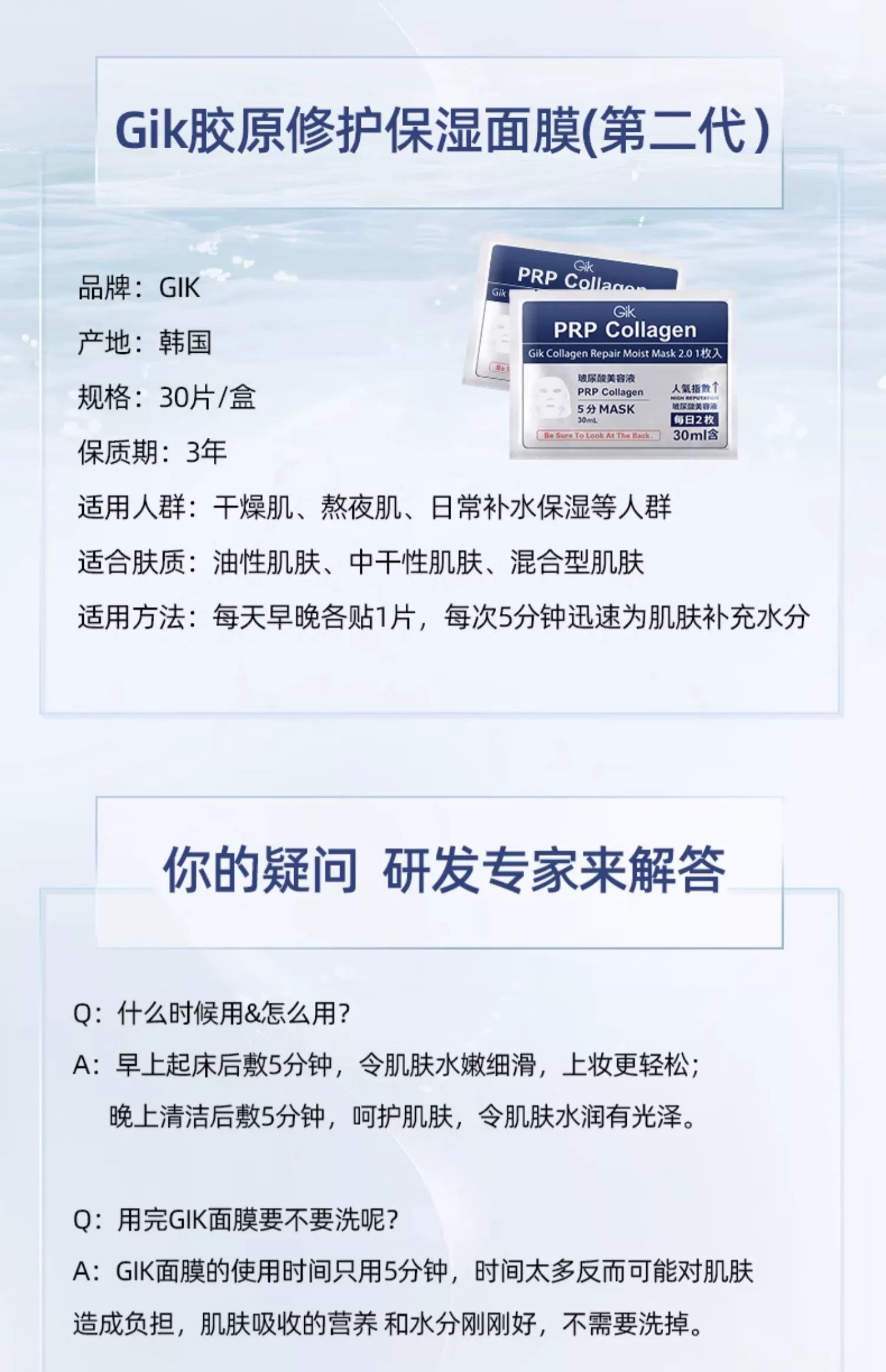 GIK胶原修护保湿面膜 30ml*30片 补水修护保湿