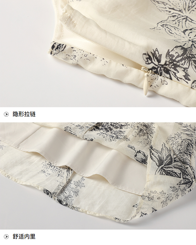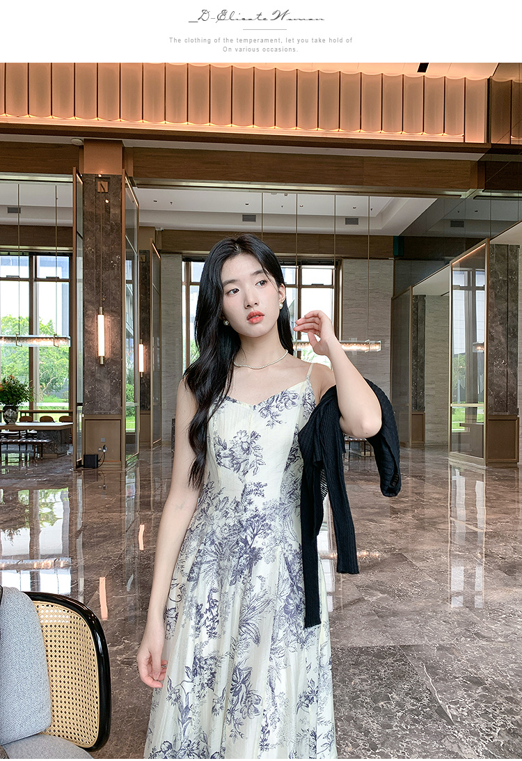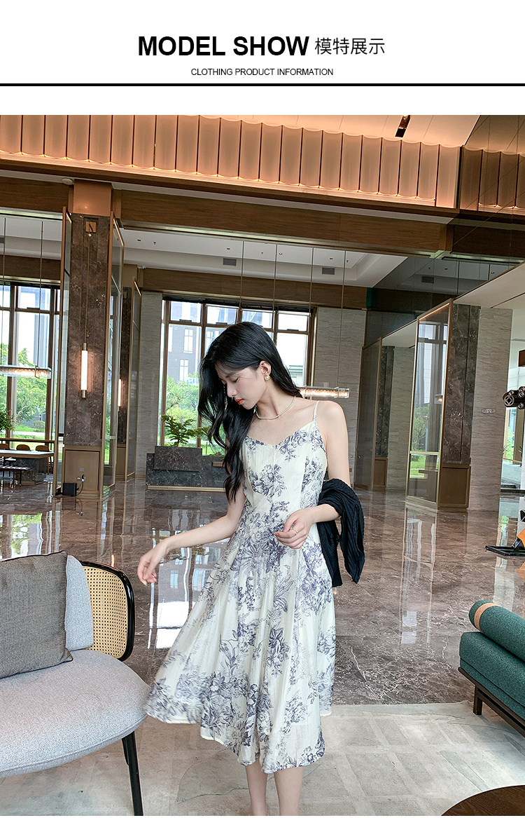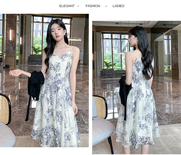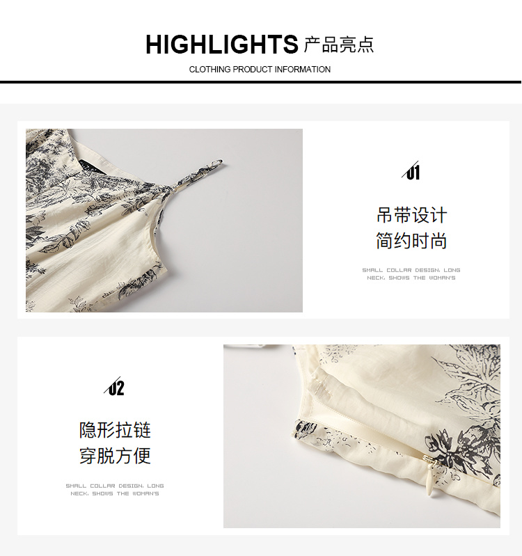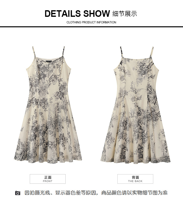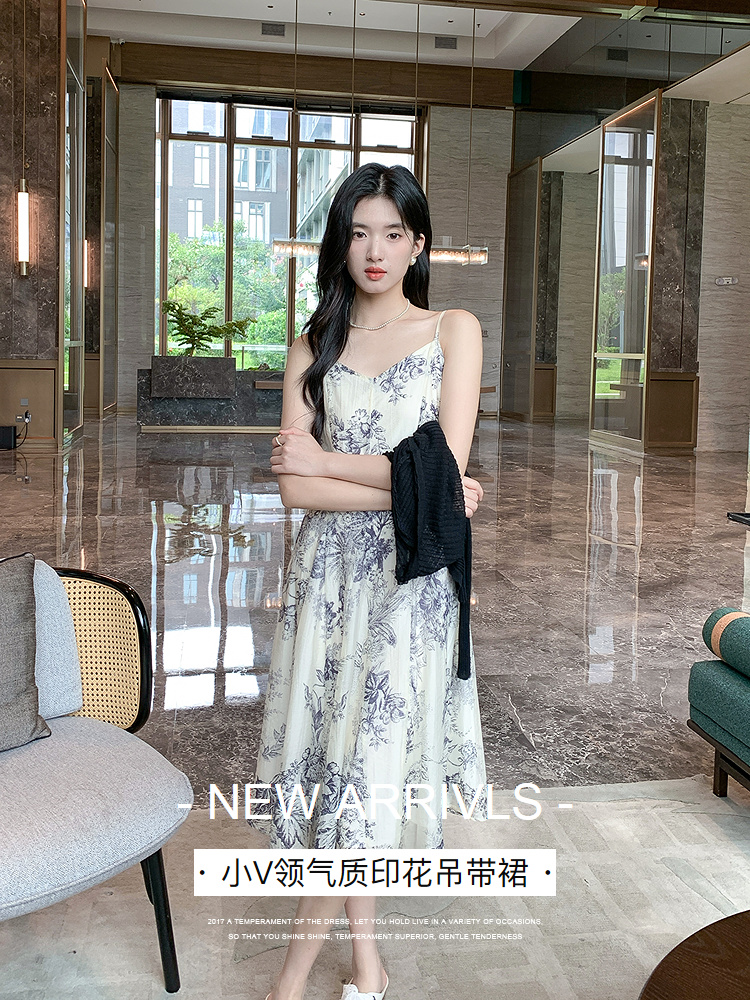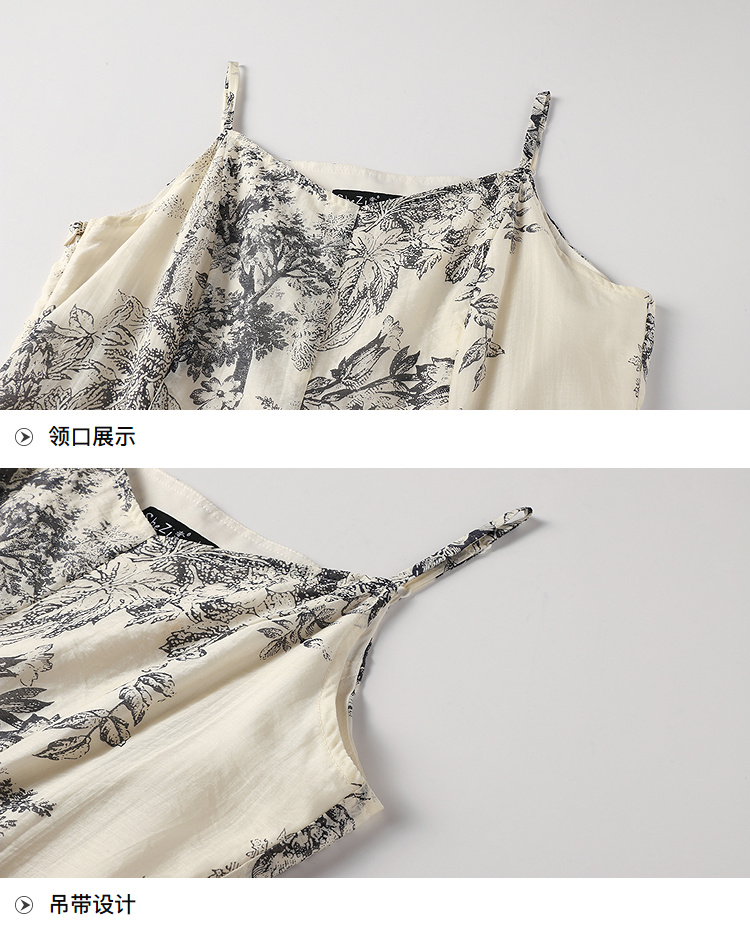 奢姿大码女装2025秋装新款胖妹妹宽松吊带裙小V领印花长款连衣裙