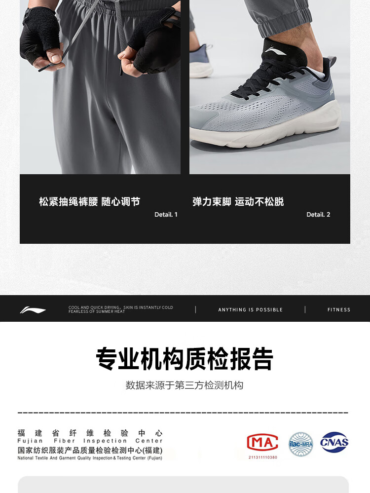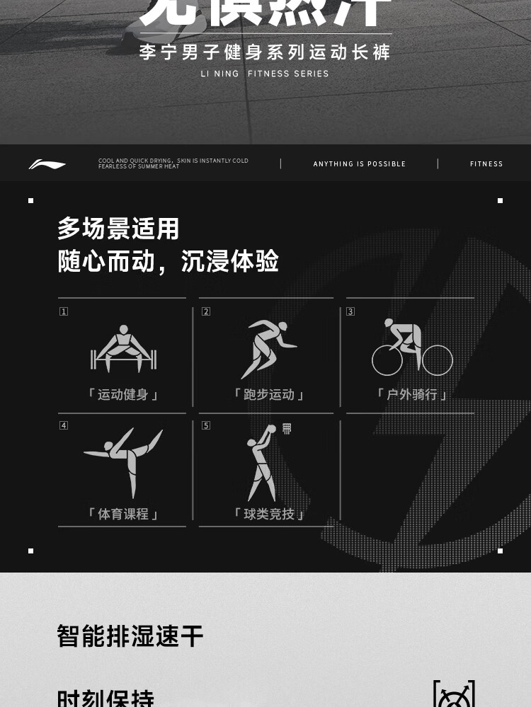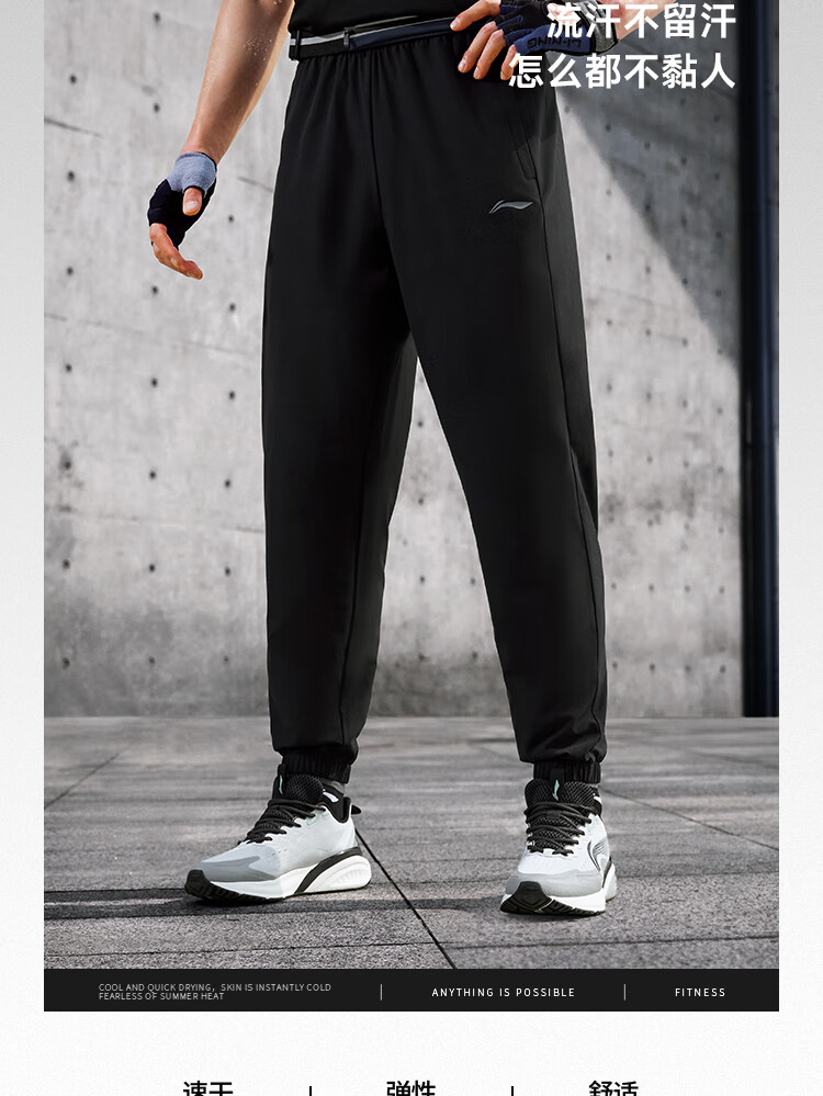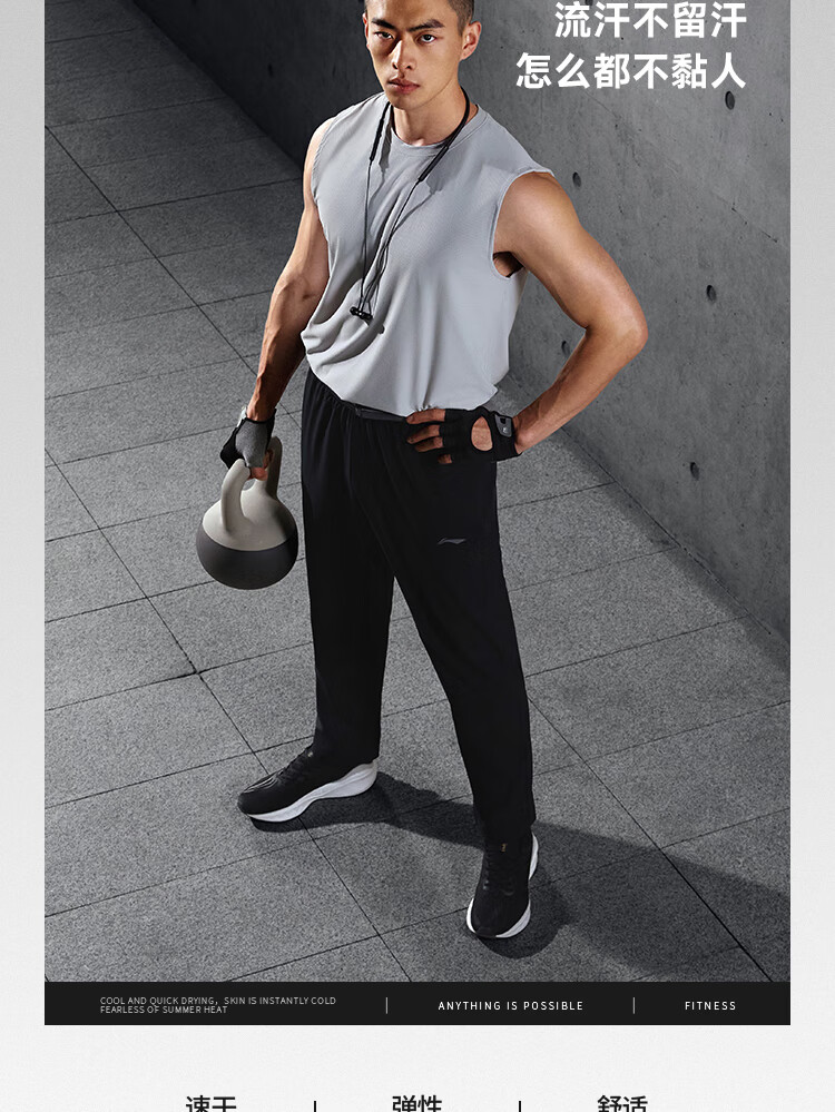 李宁排湿速干运动裤男子健身系列2024夏季舒适直筒裤子AYKU459