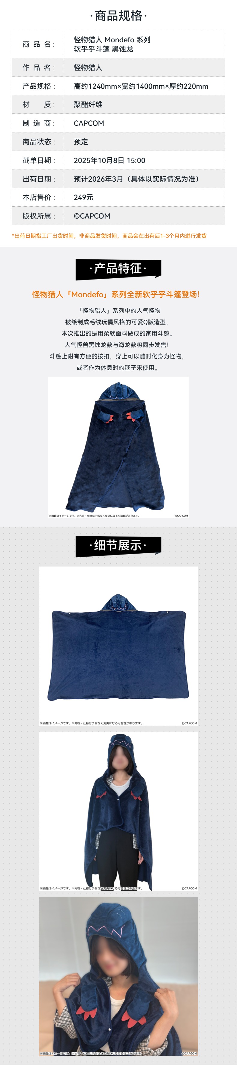 【GSC预售定金】怪物猎人 Mondefo 系列 软乎乎斗篷 黑蚀龙