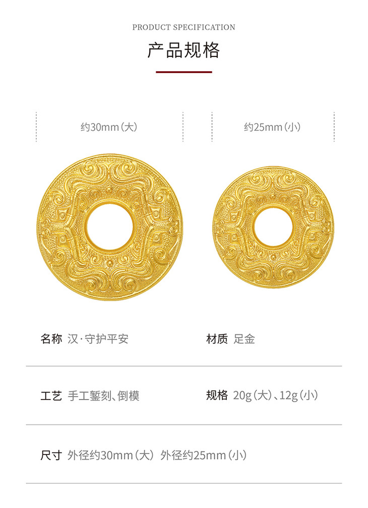 宫匠造办 十朝十美平安扣 汉·守护平安黄金吊坠