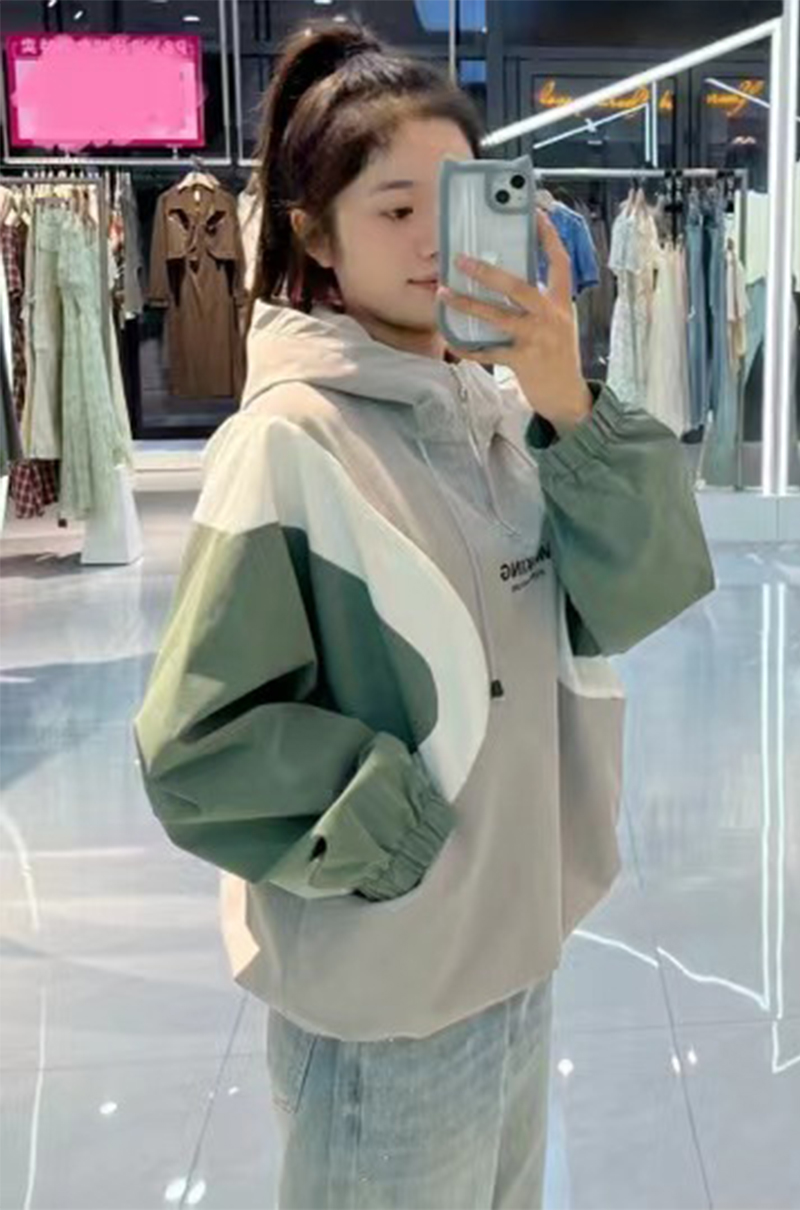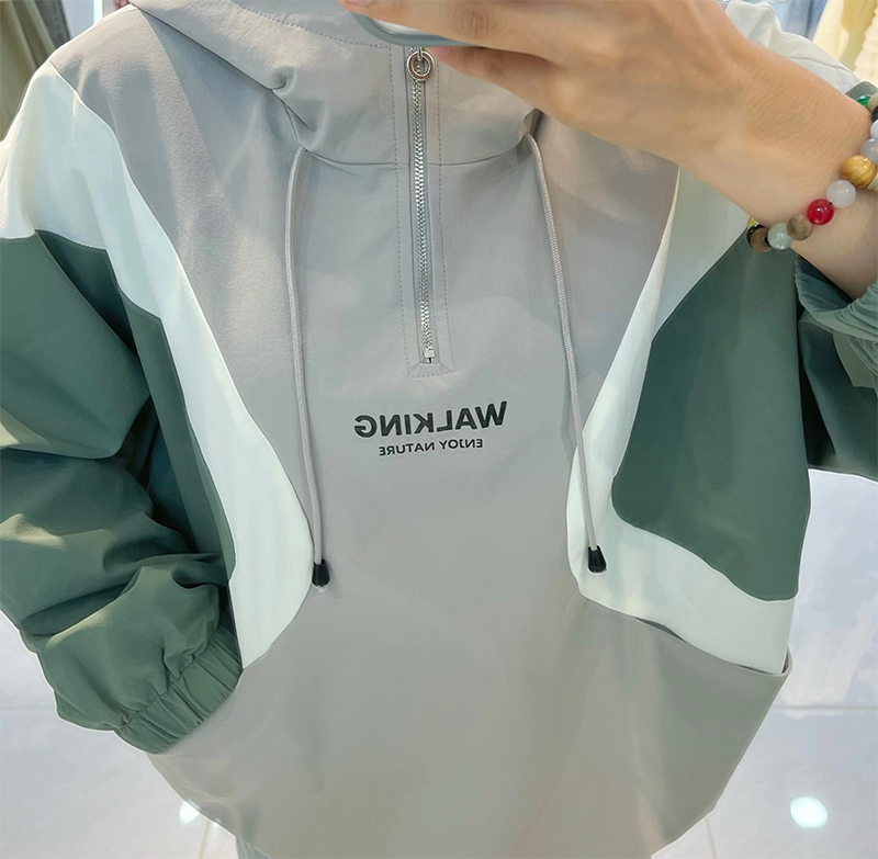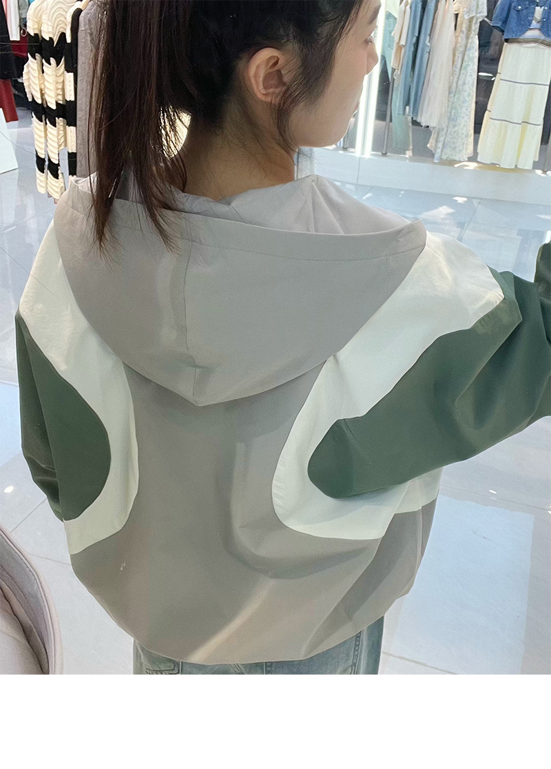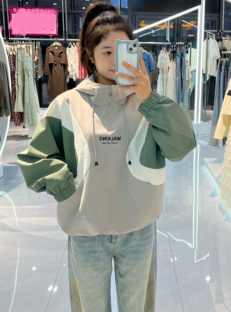 P&X设计师女装长袖连帽运动宽松套头短款卫衣 824117818 灰/绿