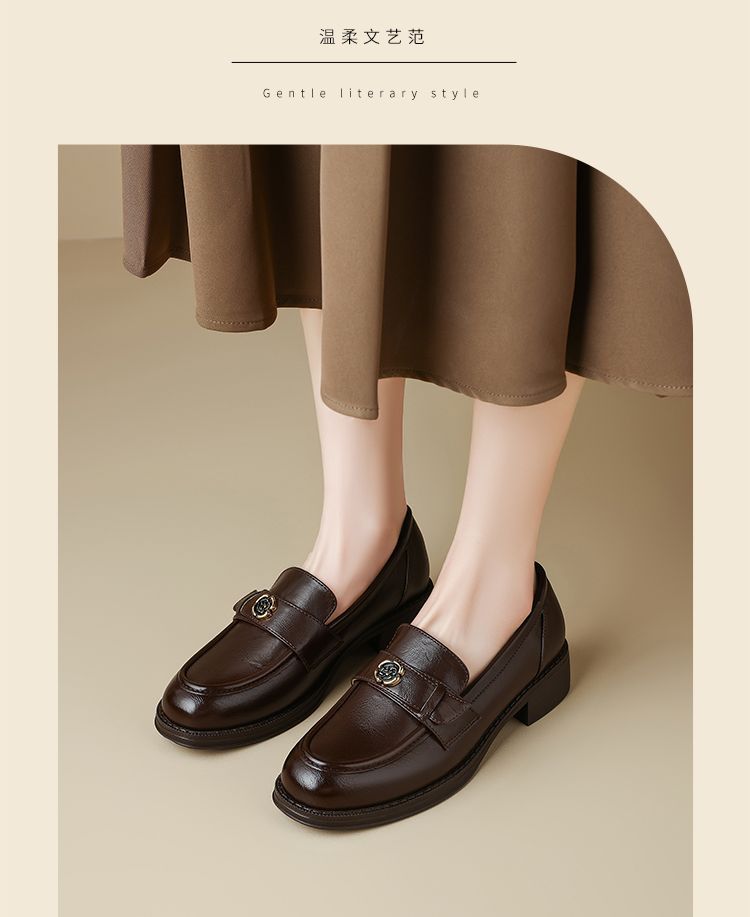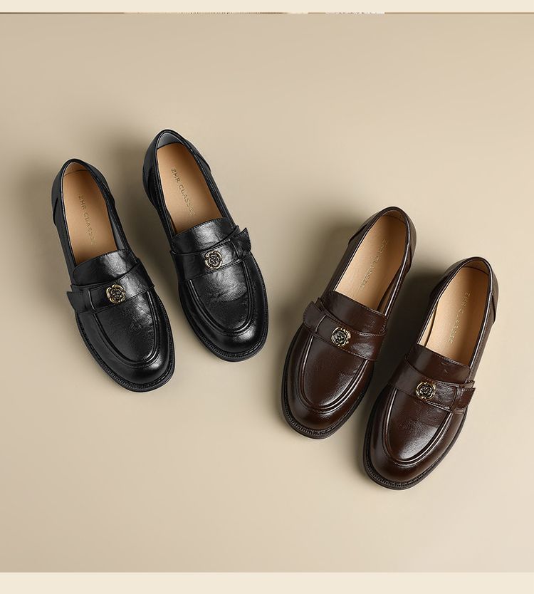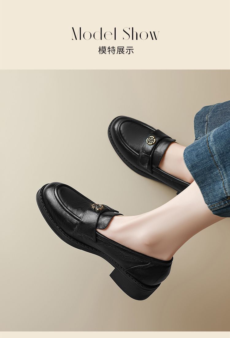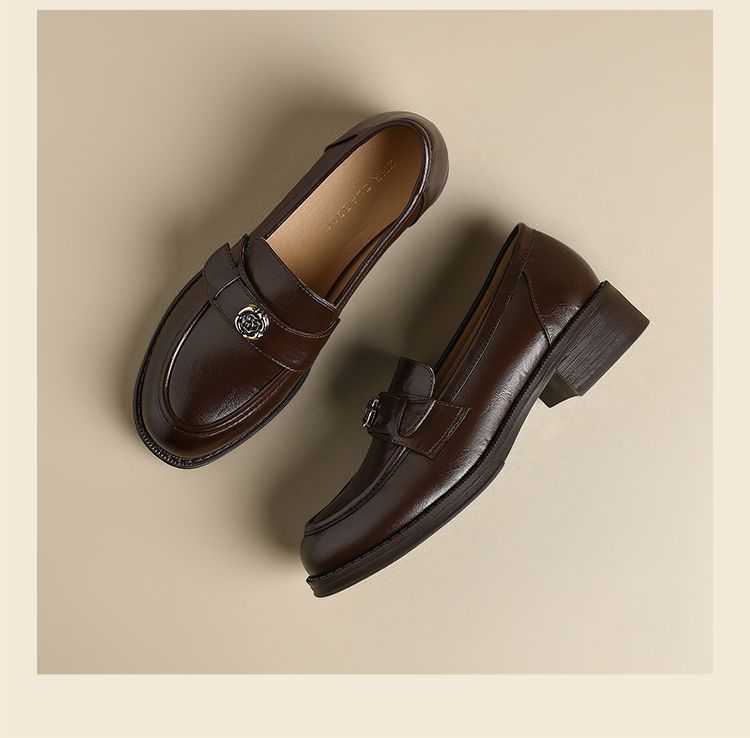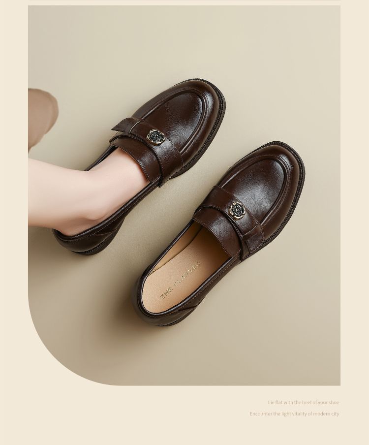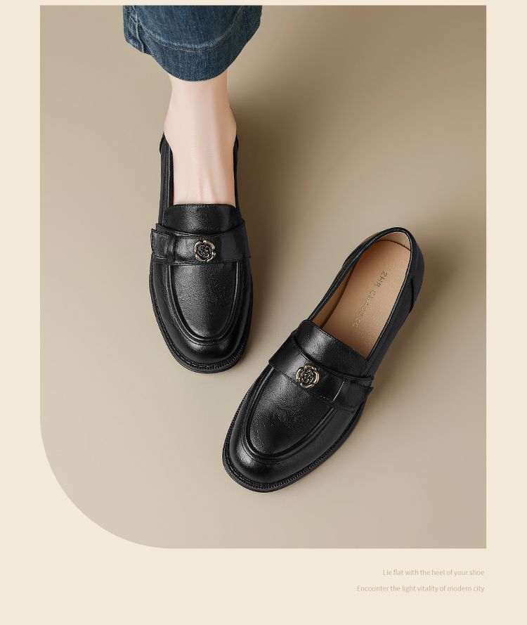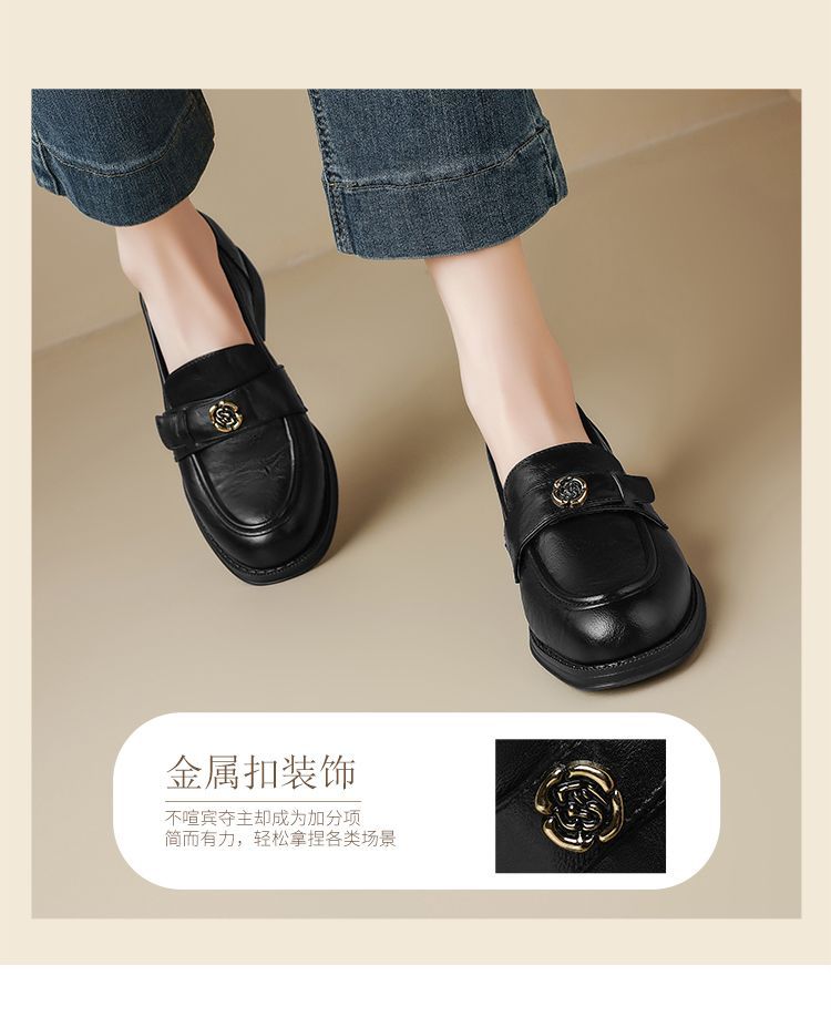 ZHR玫瑰扣饰乐福鞋女2025春季新款复古英伦风单鞋一脚蹬小皮鞋子