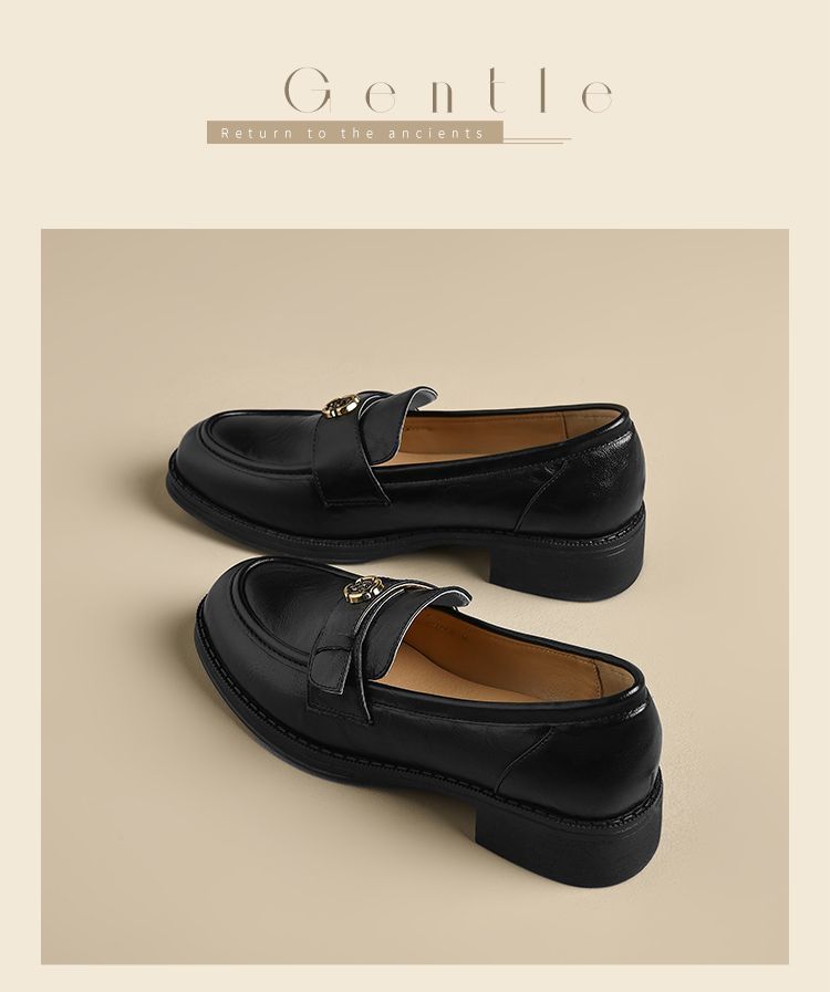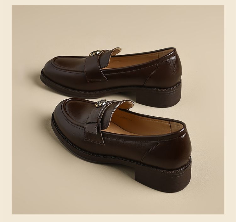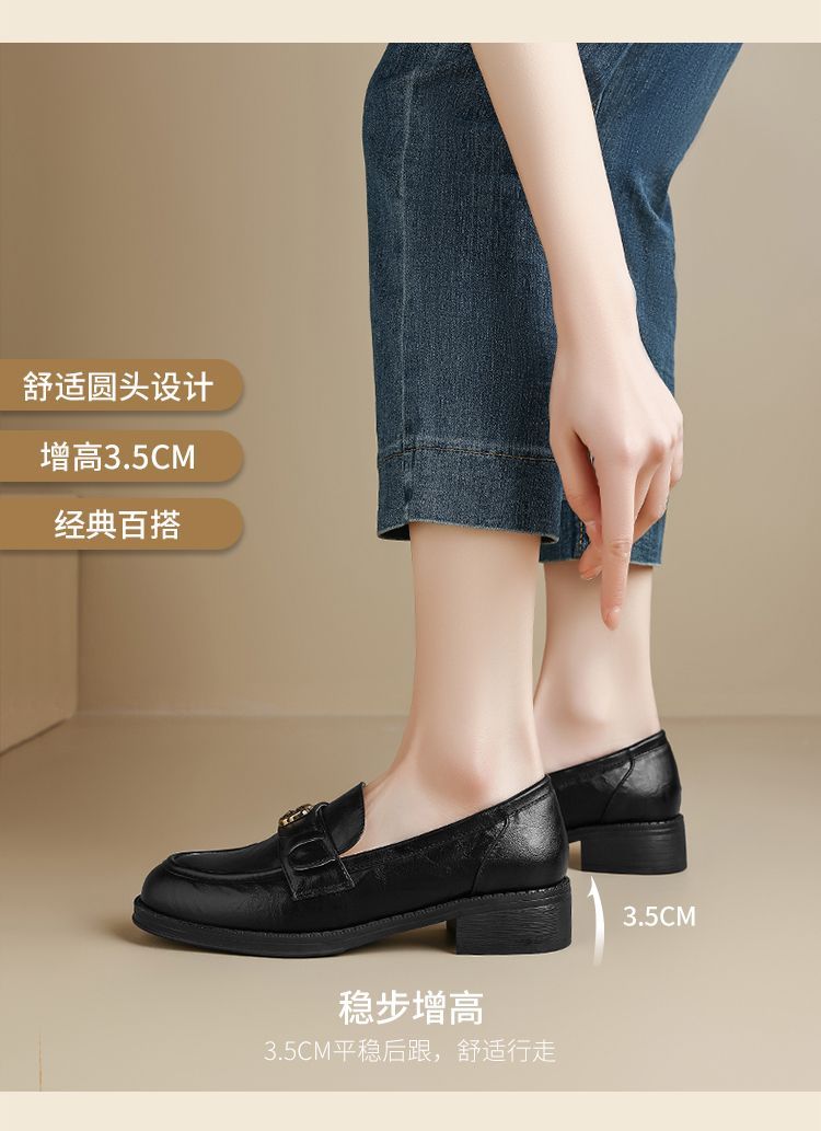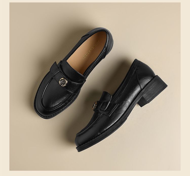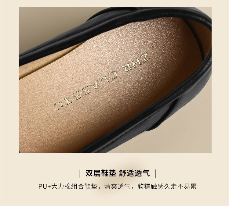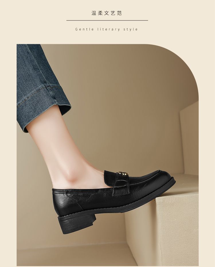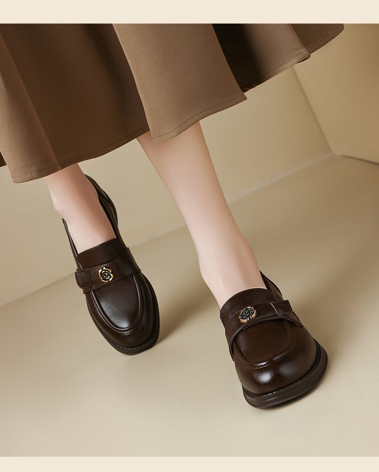 ZHR玫瑰扣饰乐福鞋女2025春季新款复古英伦风单鞋一脚蹬小皮鞋子