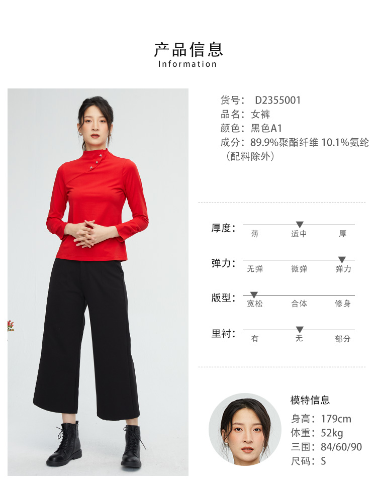 VIVIAN LIU薇薇安刘D2355001秋女装新款斜插兜阔腿休闲九分裤