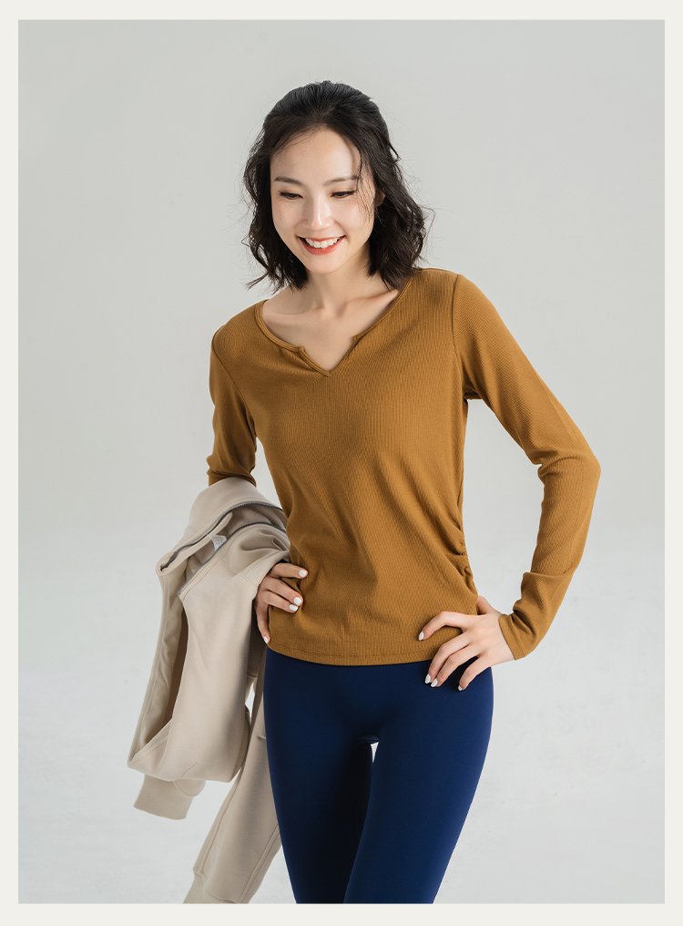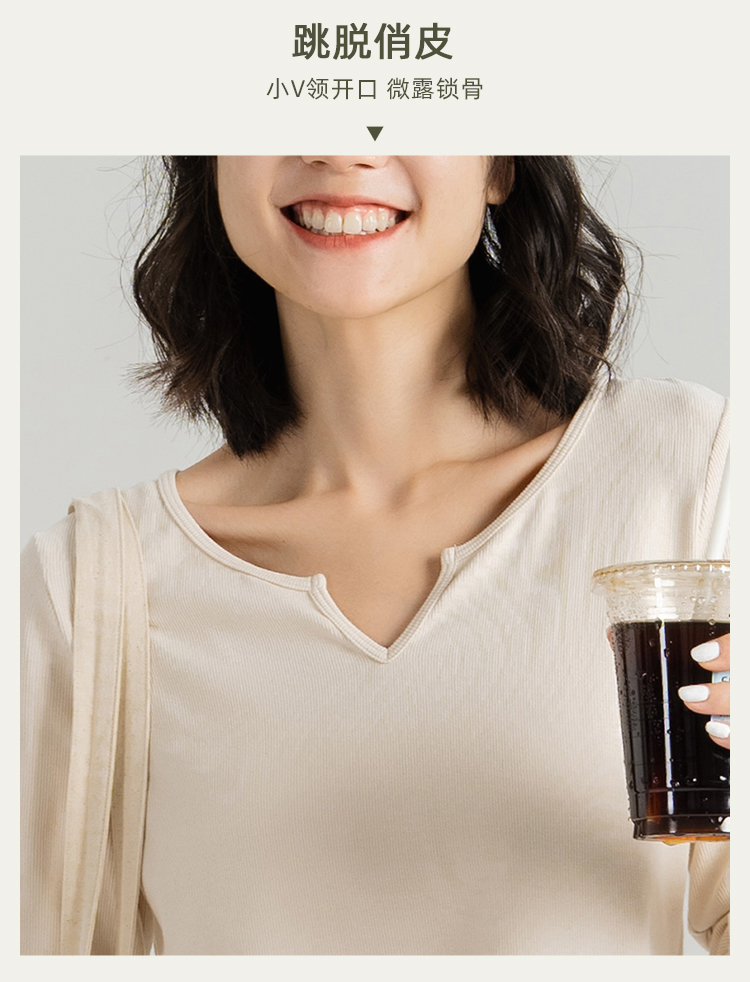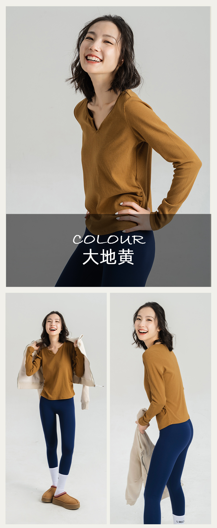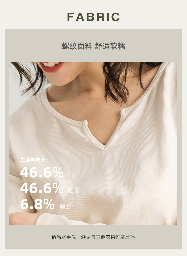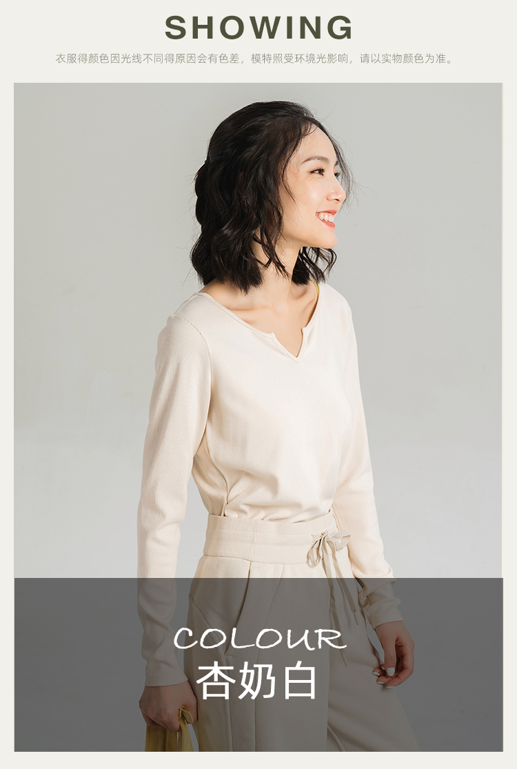 L RECNAVA [软糯螺纹棉] 小V领显瘦打底针织上衣 运动休闲长袖