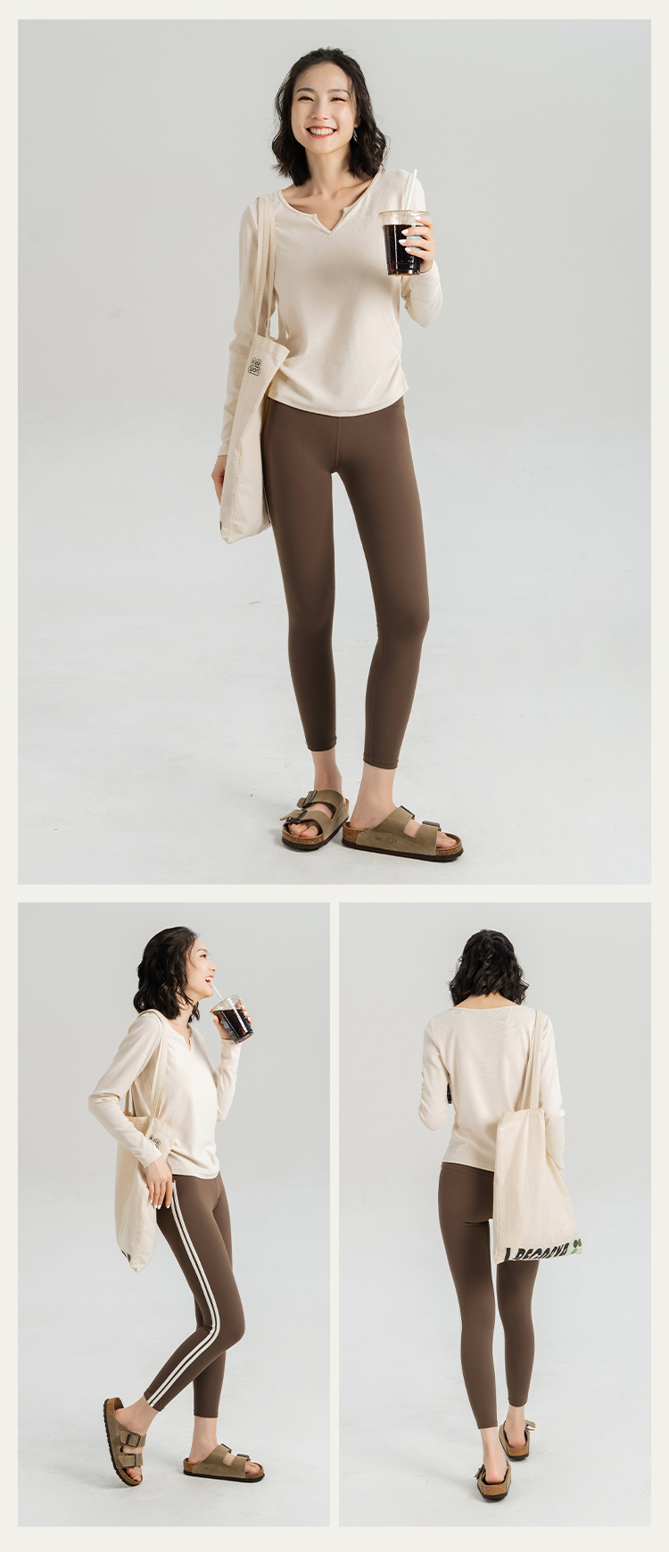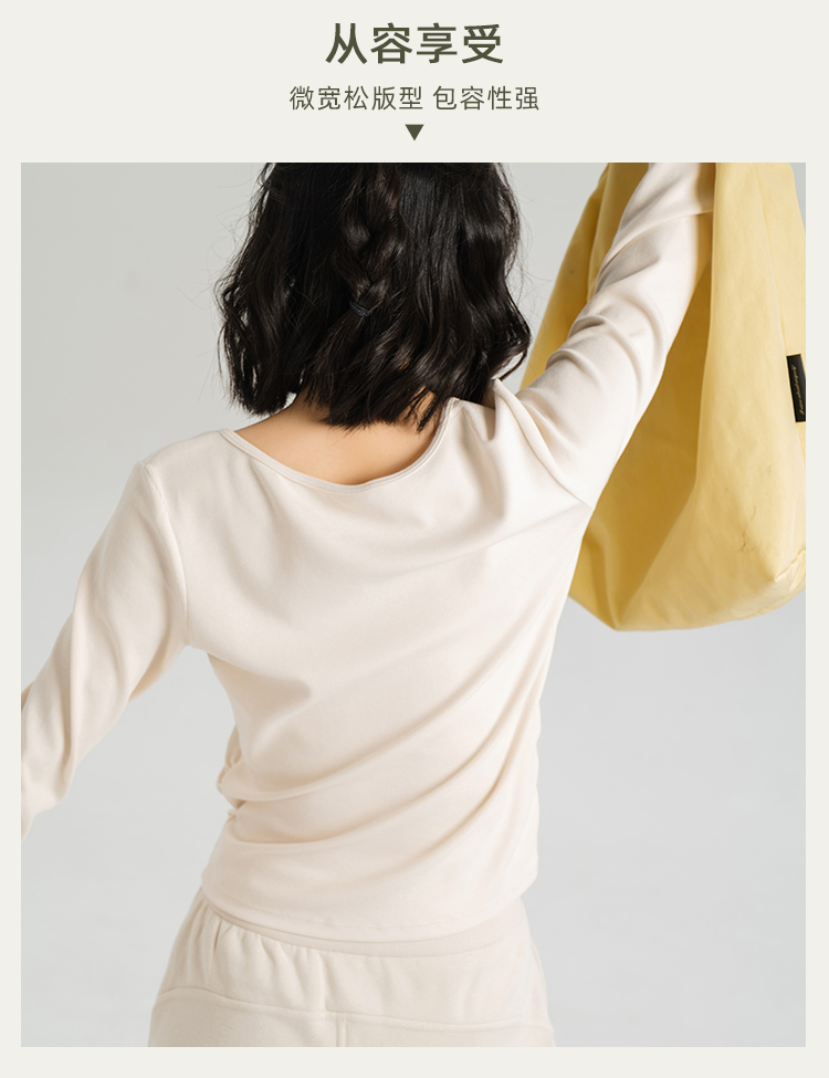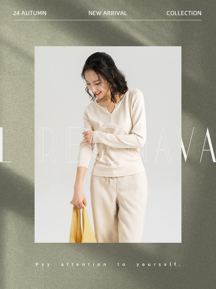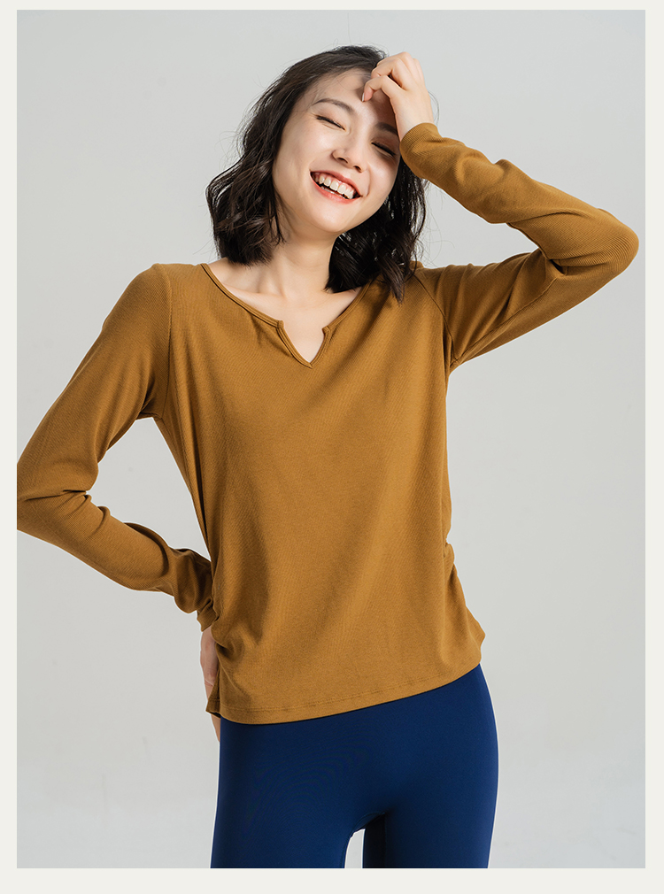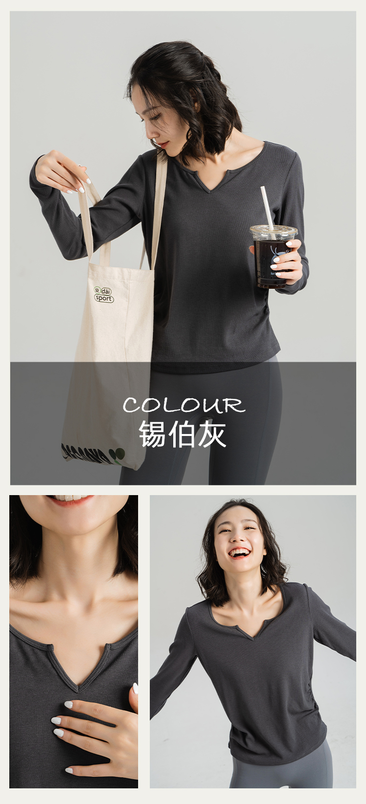 L RECNAVA [软糯螺纹棉] 小V领显瘦打底针织上衣 运动休闲长袖