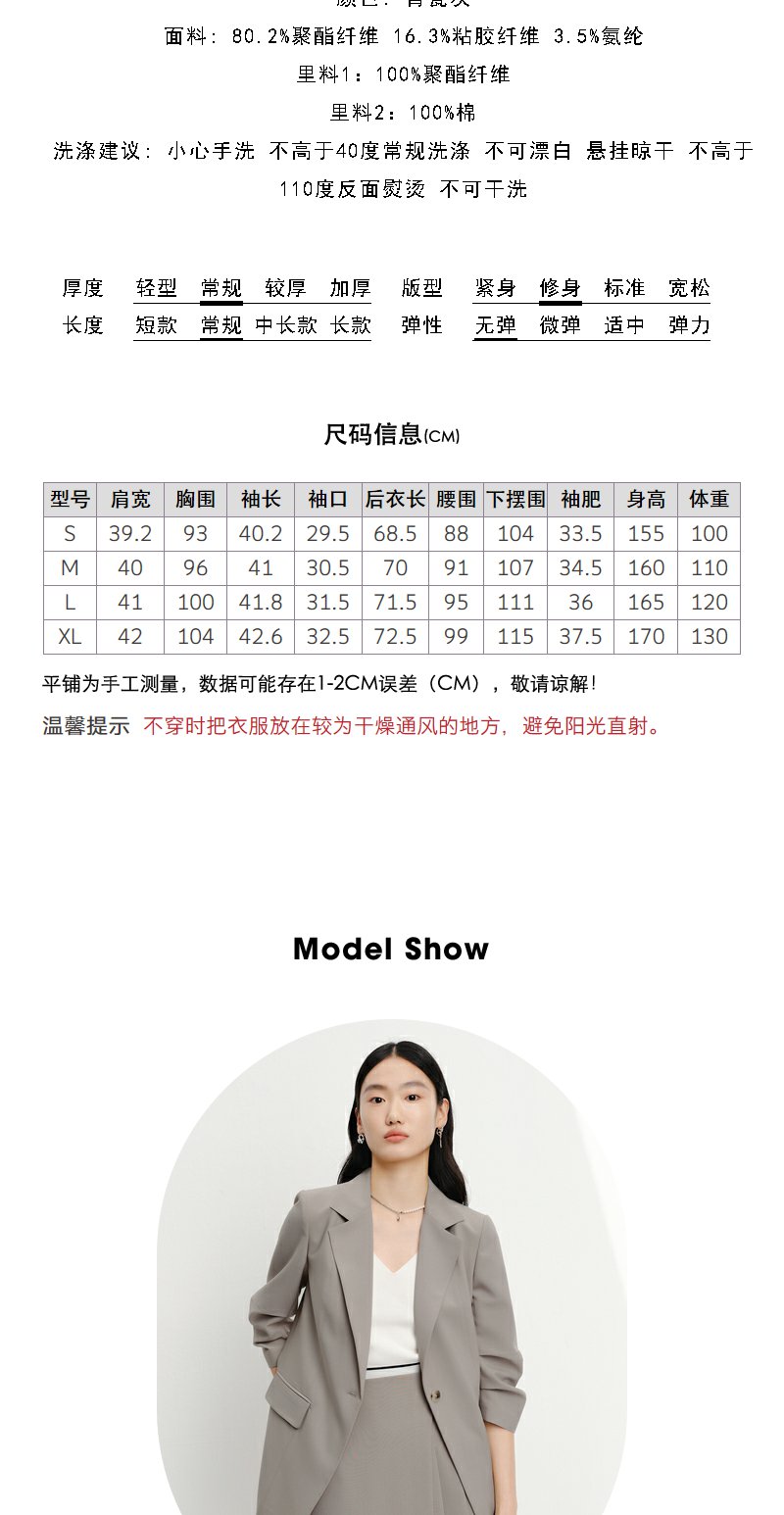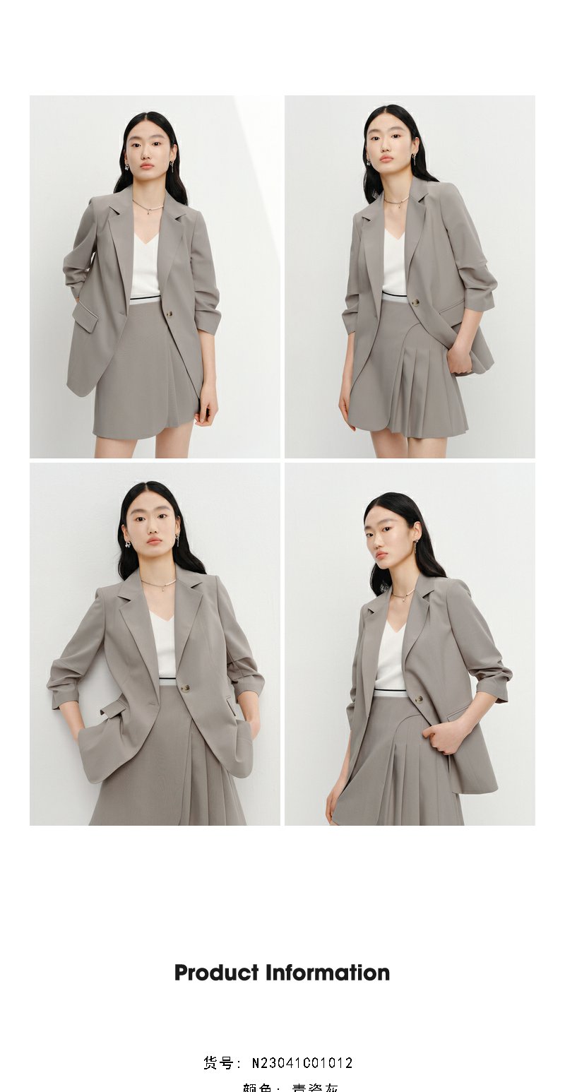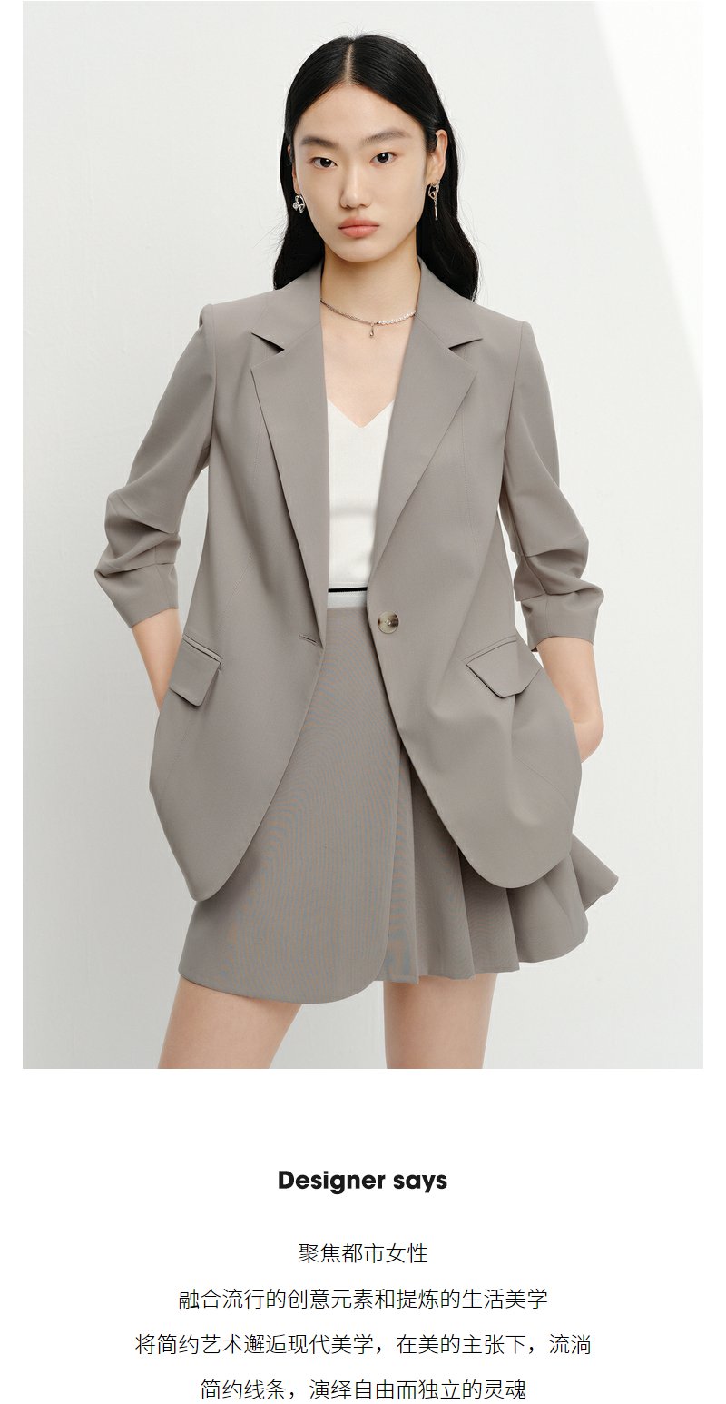 NEELLY纳俪商场同款一粒扣西装外套女简约百搭七分袖上衣气质时尚N23041C01012