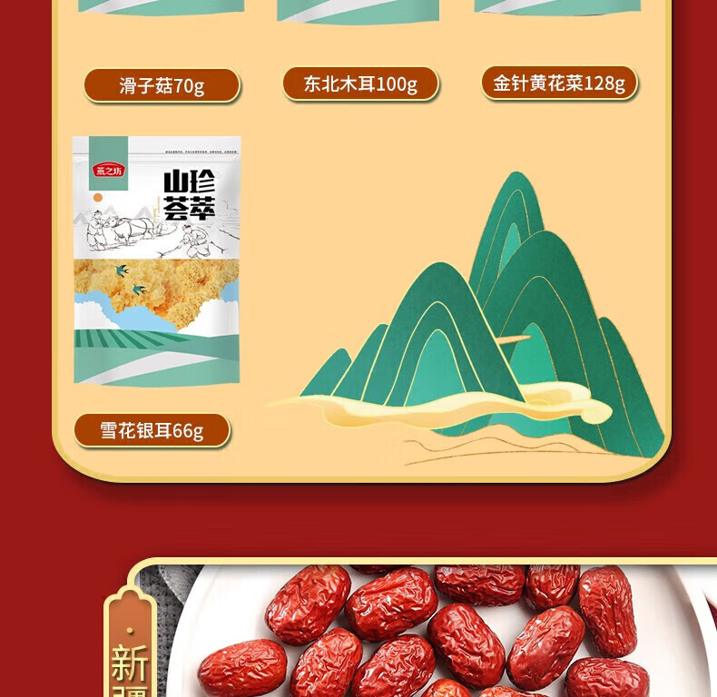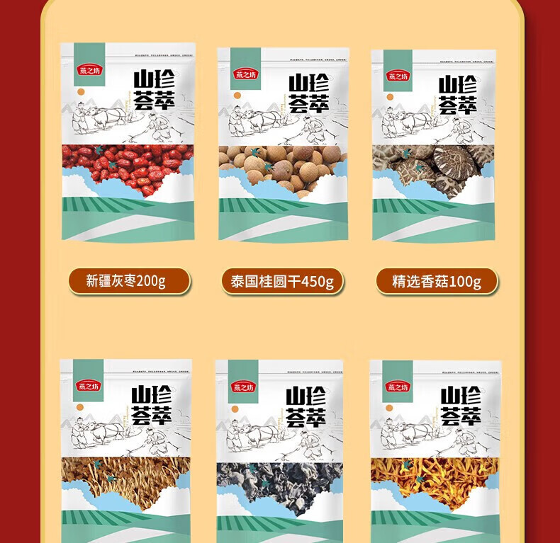 燕之坊颐品山野礼盒(六六大顺)1036g银耳枸杞真姬菇等6种干货