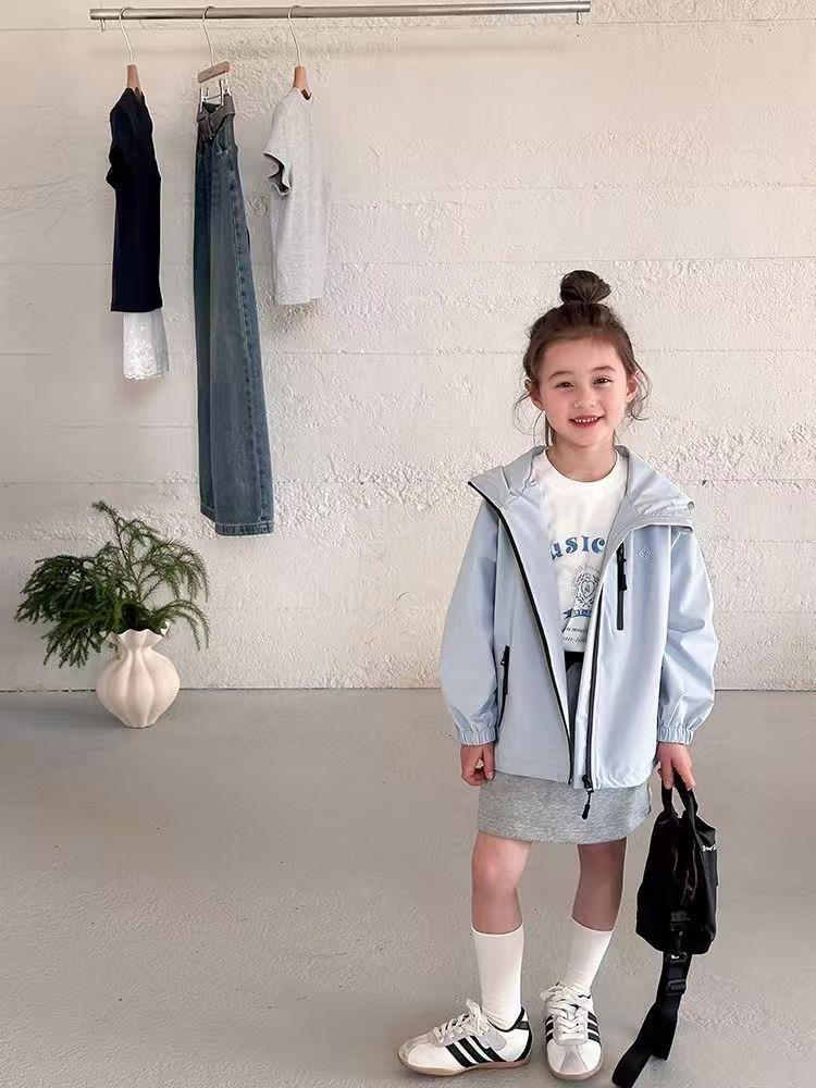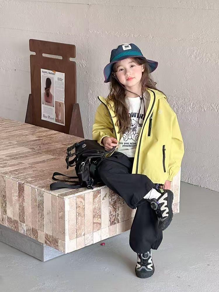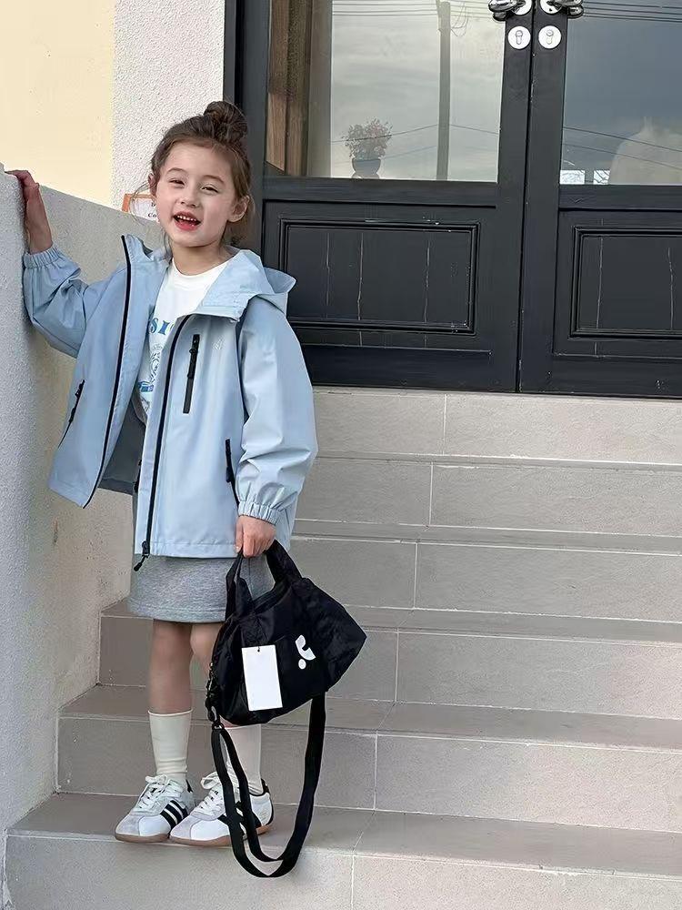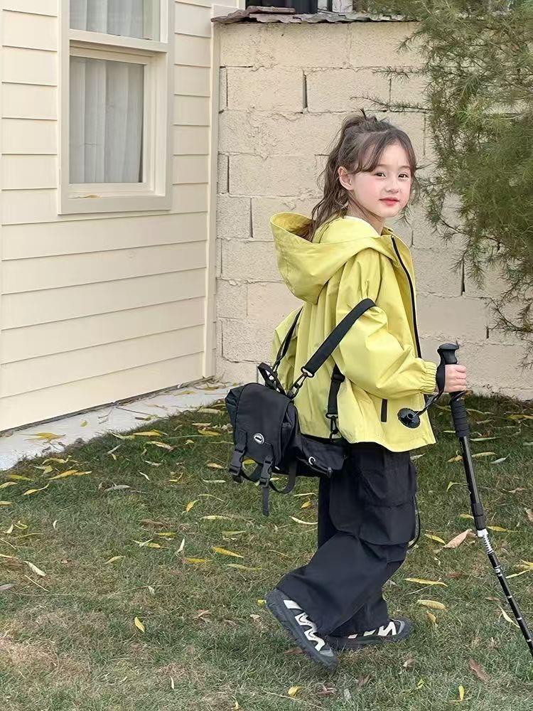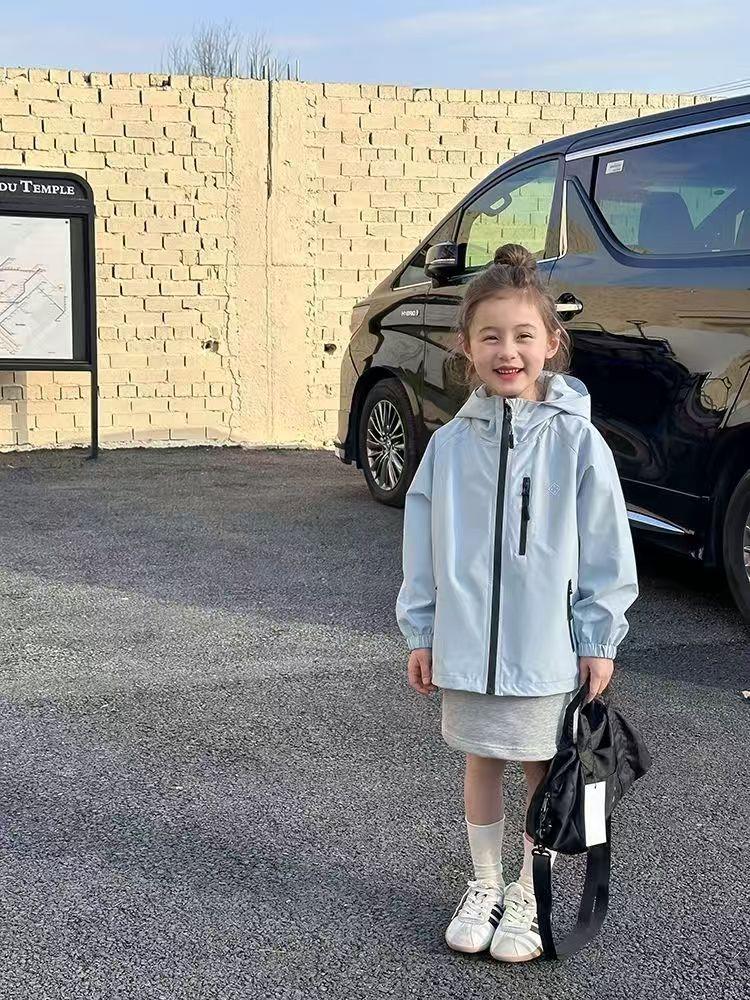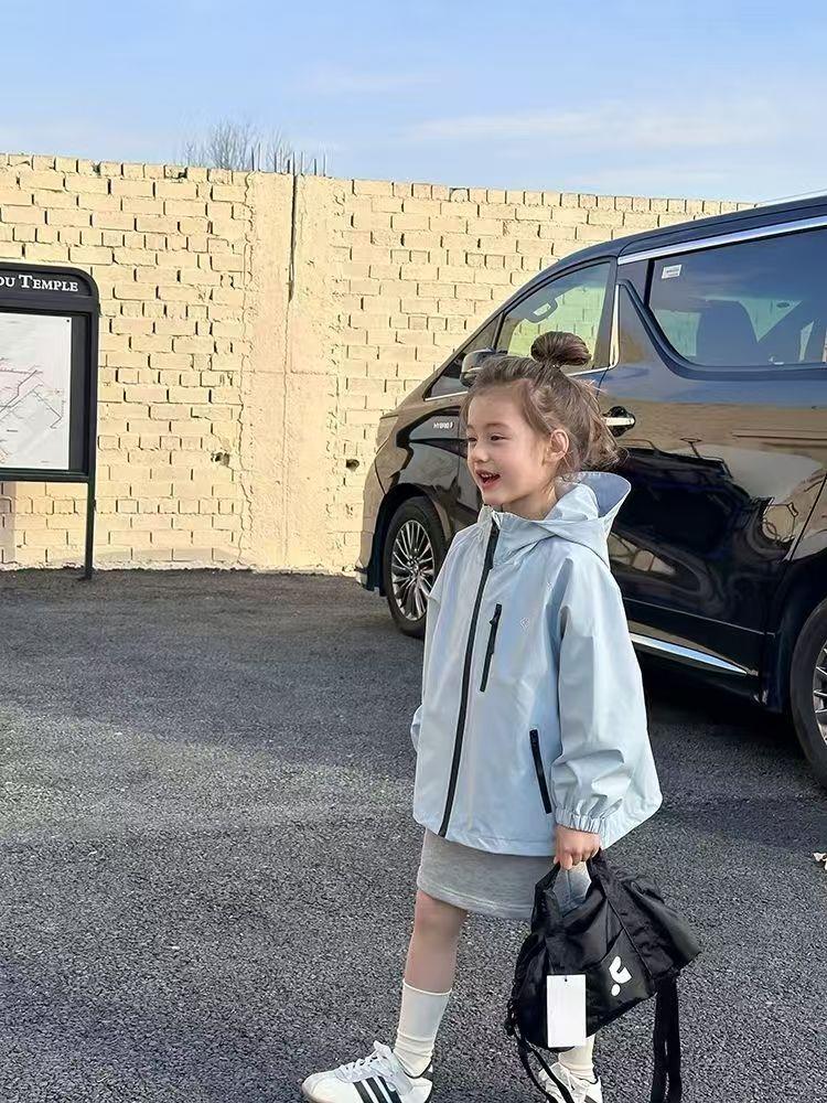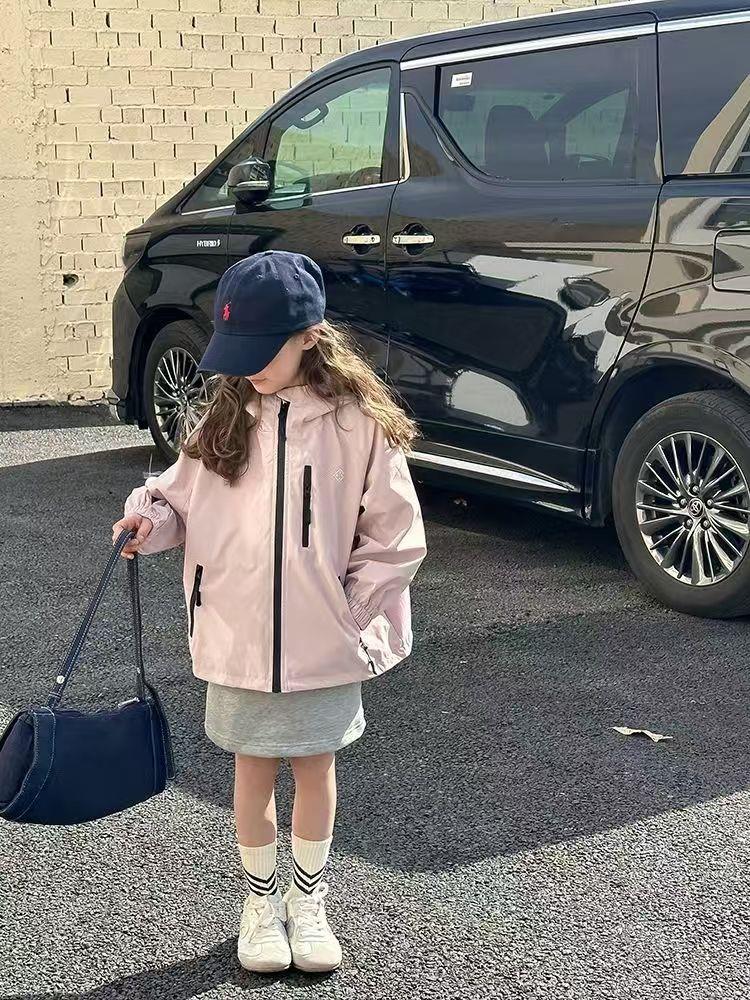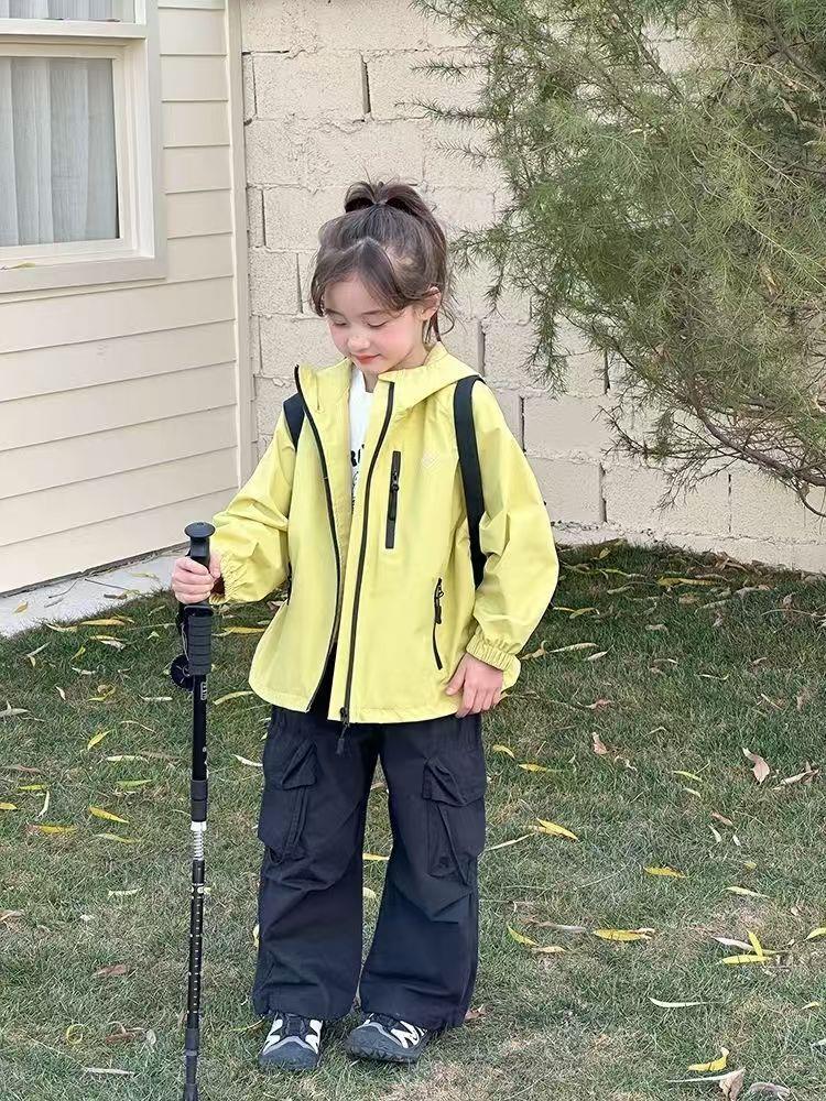 儿童春秋季新款中大童上衣儿童户外冲锋衣男女童休闲宽松防风连帽外套110-170