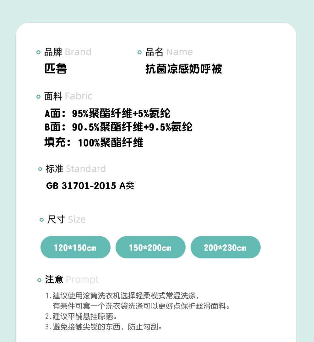 【夏末清仓】匹鲁抗菌凉感奶呼被,双重柔软技术,一面凉一面软