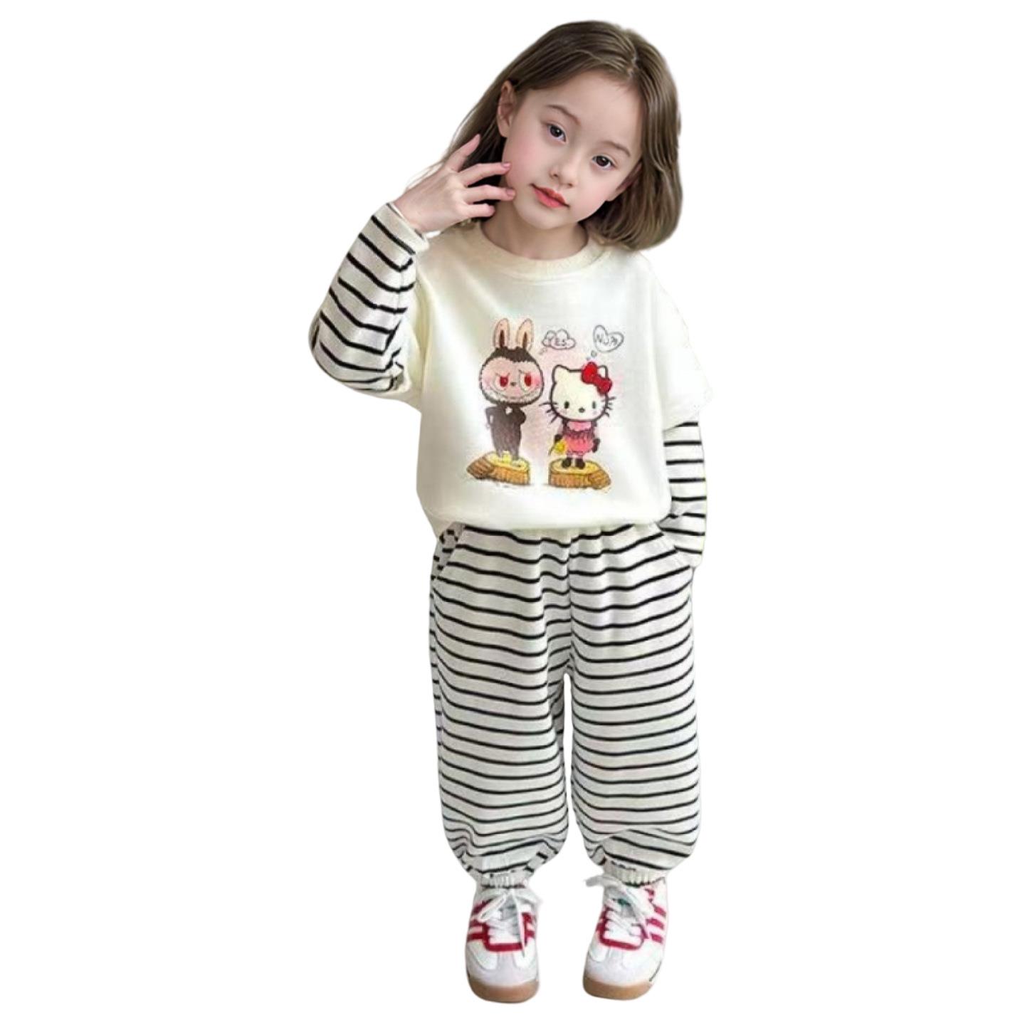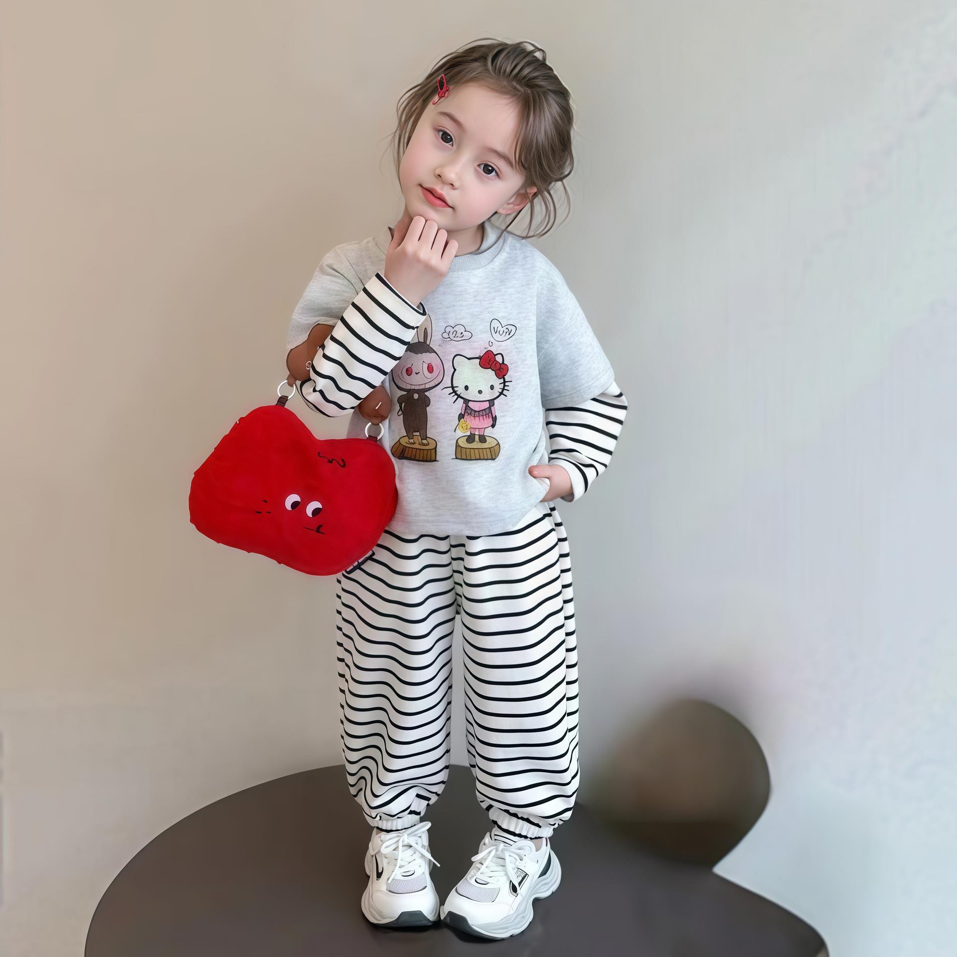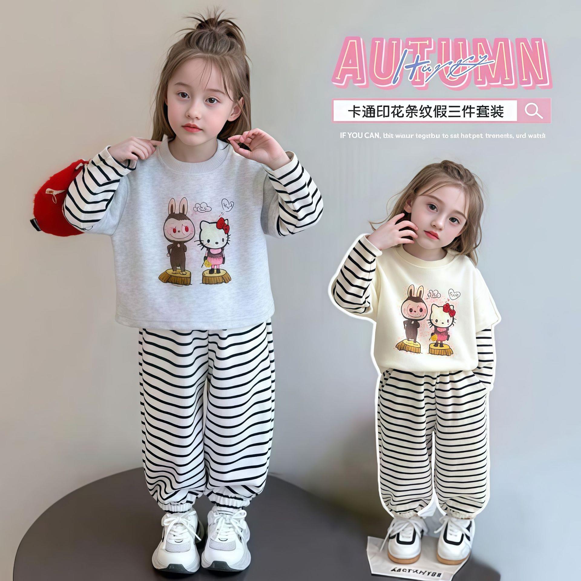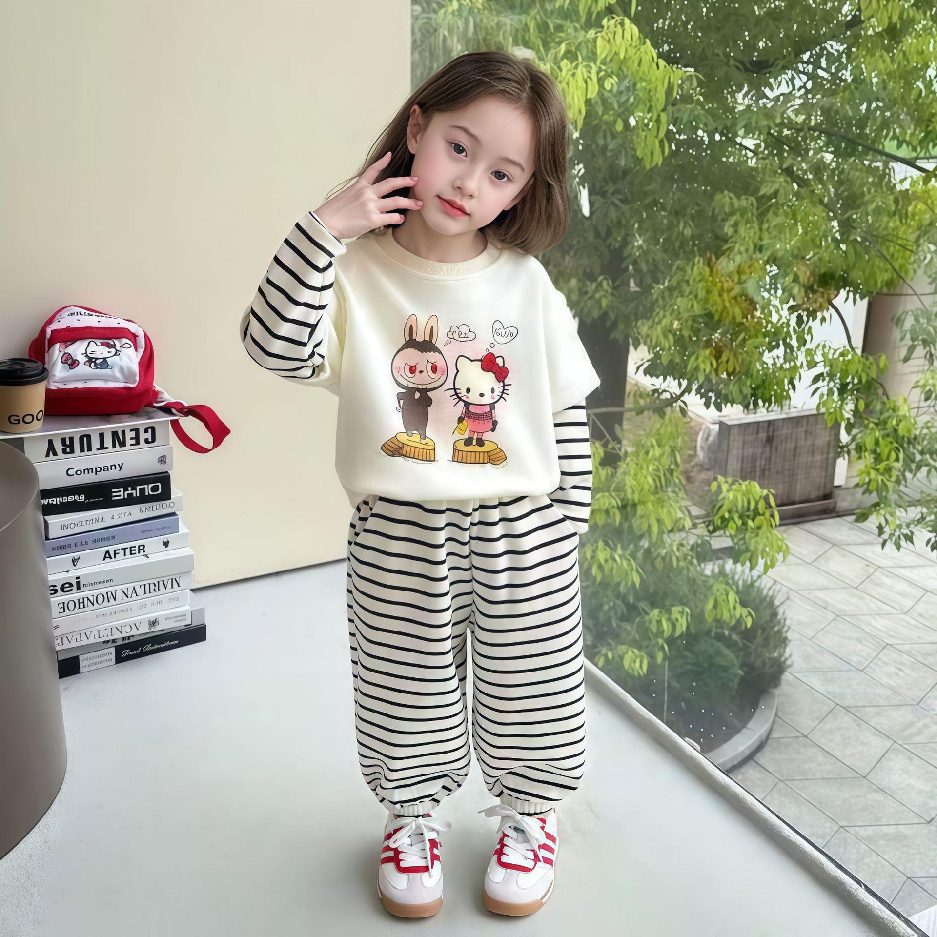 Laffey & Monkey儿童春秋款卫衣套装 女童条纹假两件套装 宝宝长袖运动休闲套装80-150