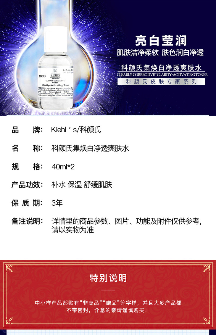 ·一般贸易· 【专柜版】科颜氏集焕白净透爽肤水 40ml*2 小样