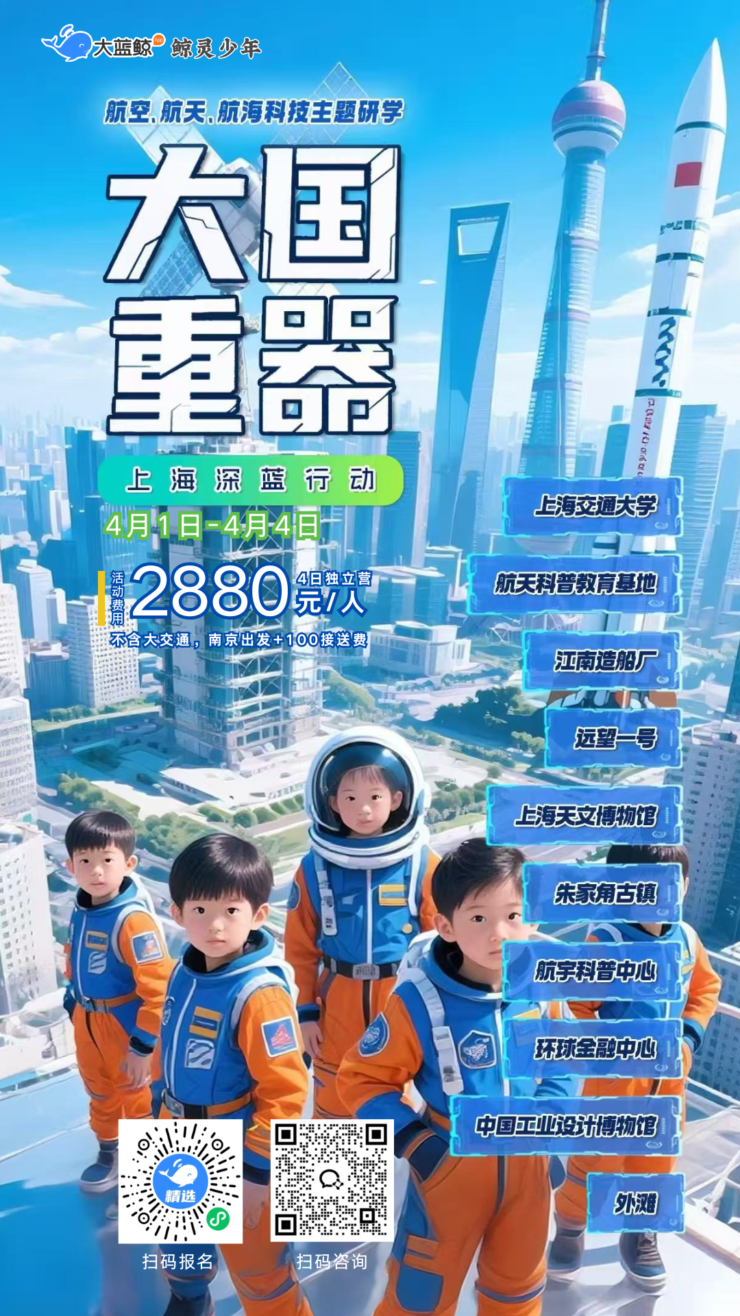 大蓝鲸爱研学|【2026独立营春假】大国重器科技营上海4日 | 航空航天航海科技主题研学