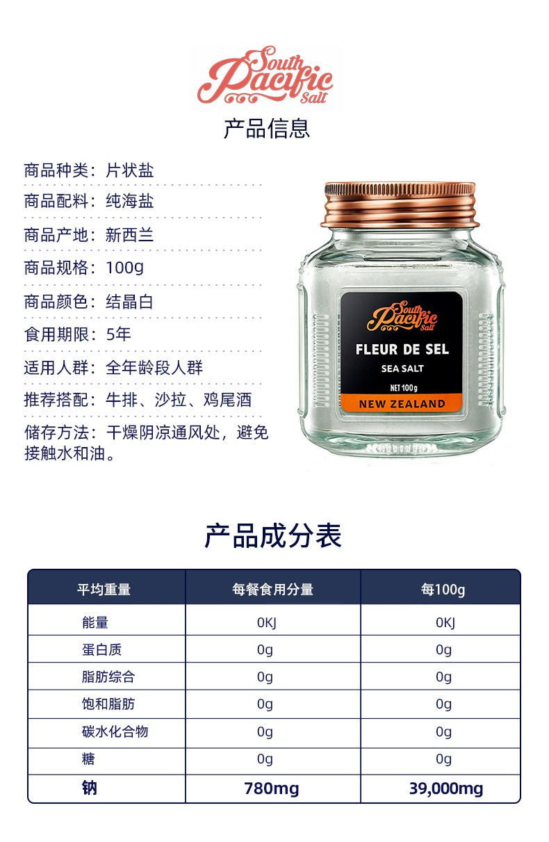 新西兰雪花片盐100g/罐