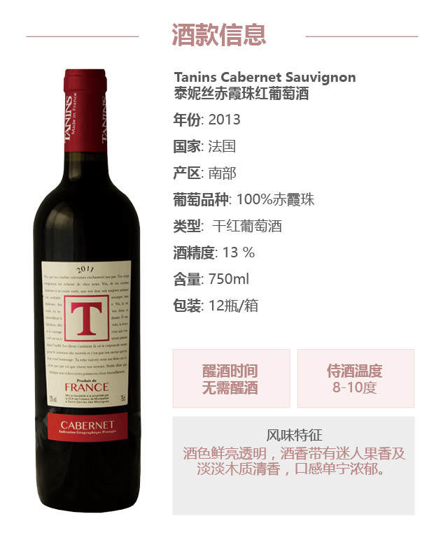 泰妮丝赤霞珠红葡萄酒 Tanins - Cabernet 750ml【2015】