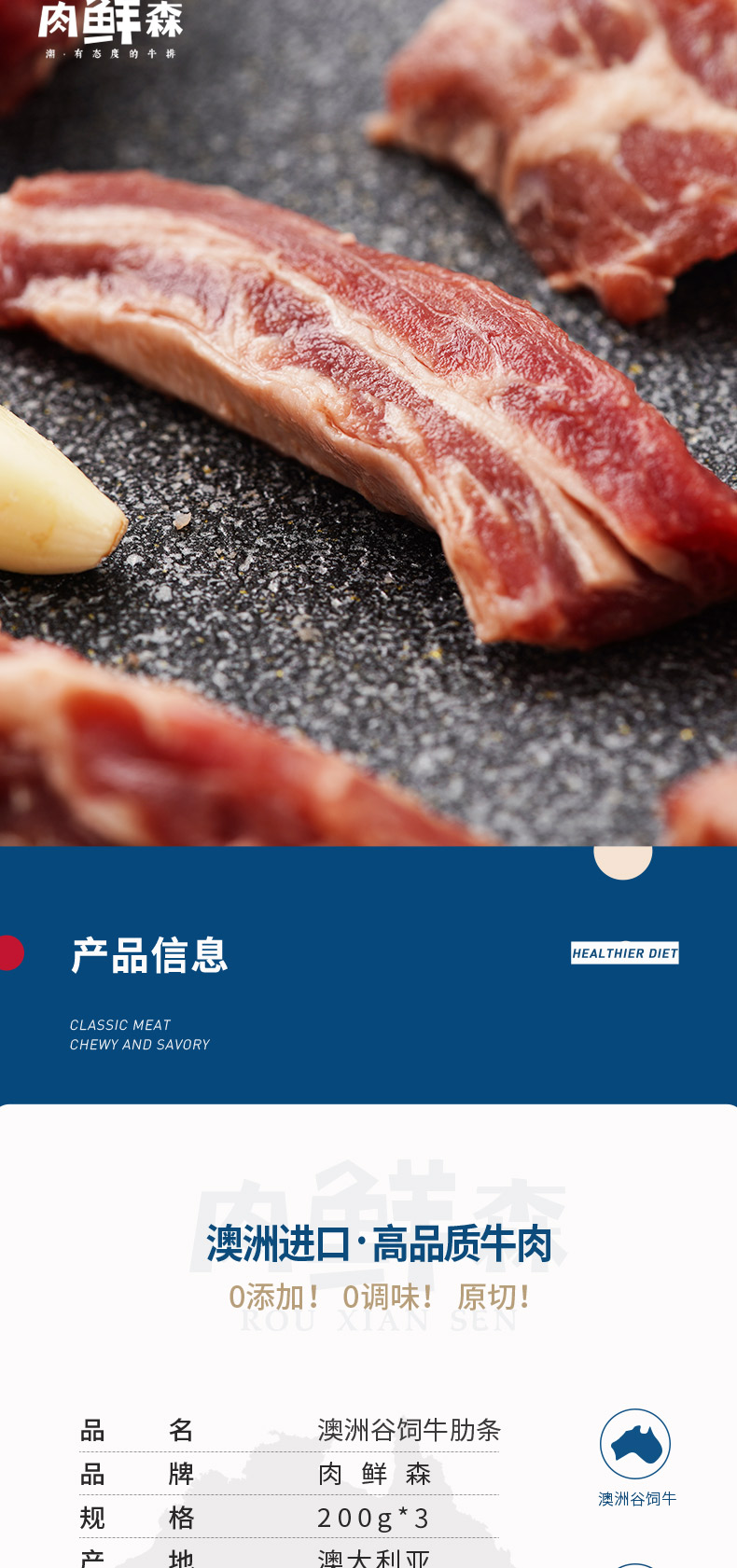 肉鲜森澳洲谷饲牛肋条200G*3
