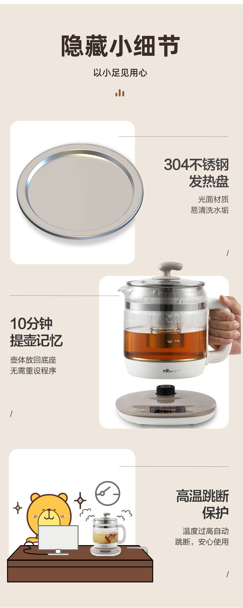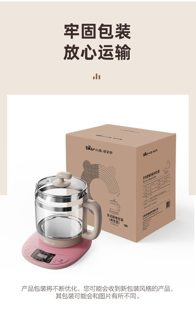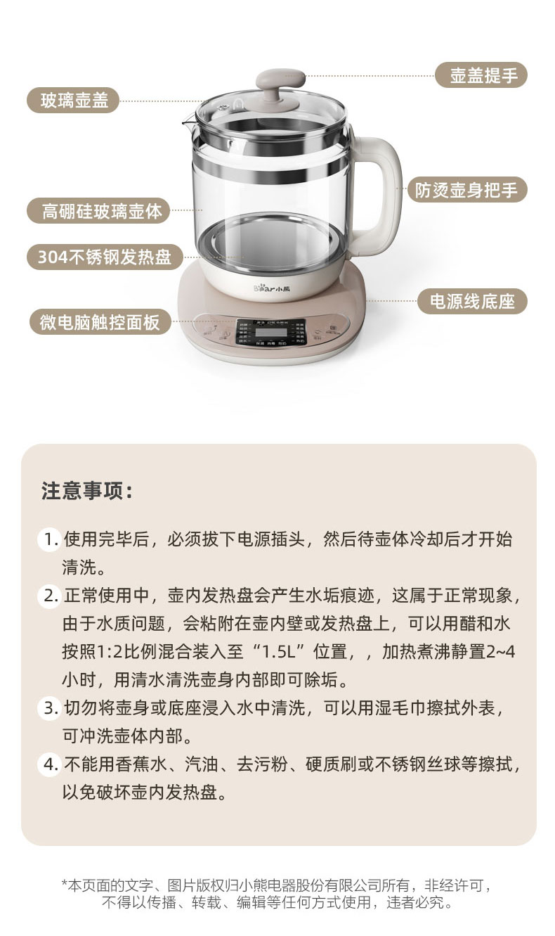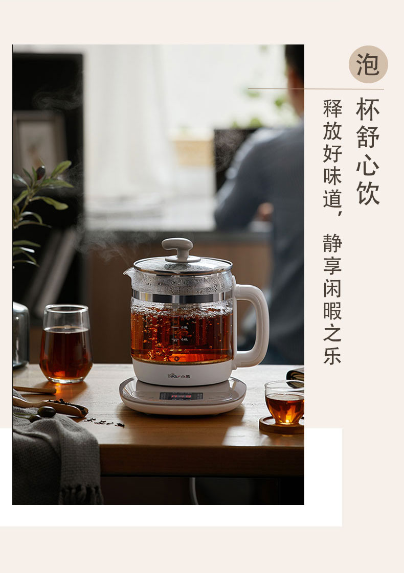 【小程序】小熊养生壶 YSH-B18H8棕色 玻璃壶身 4颗螺柱发热盘 商品图3